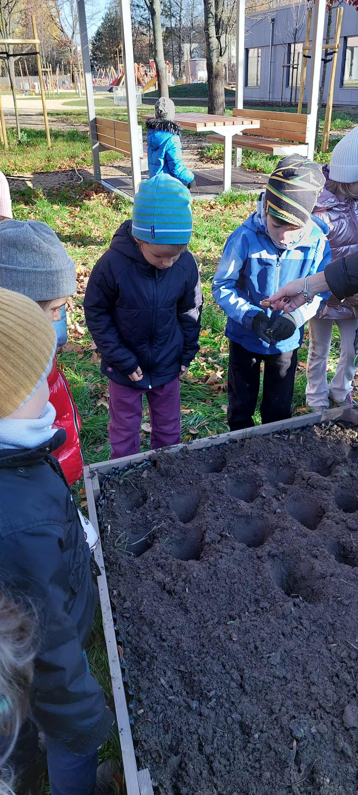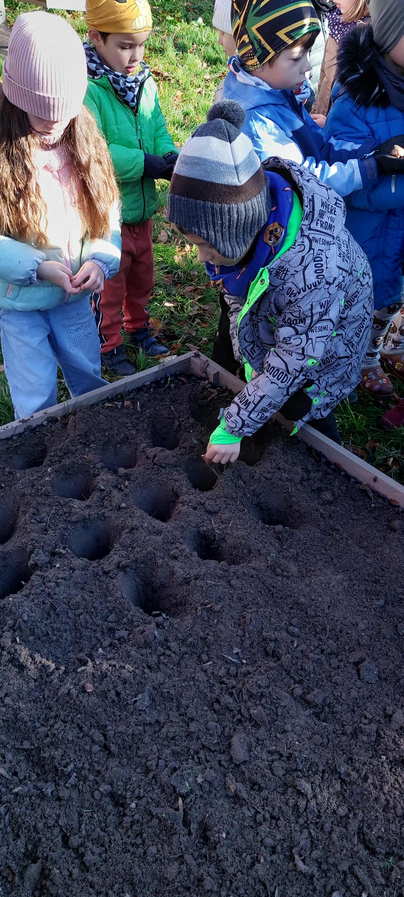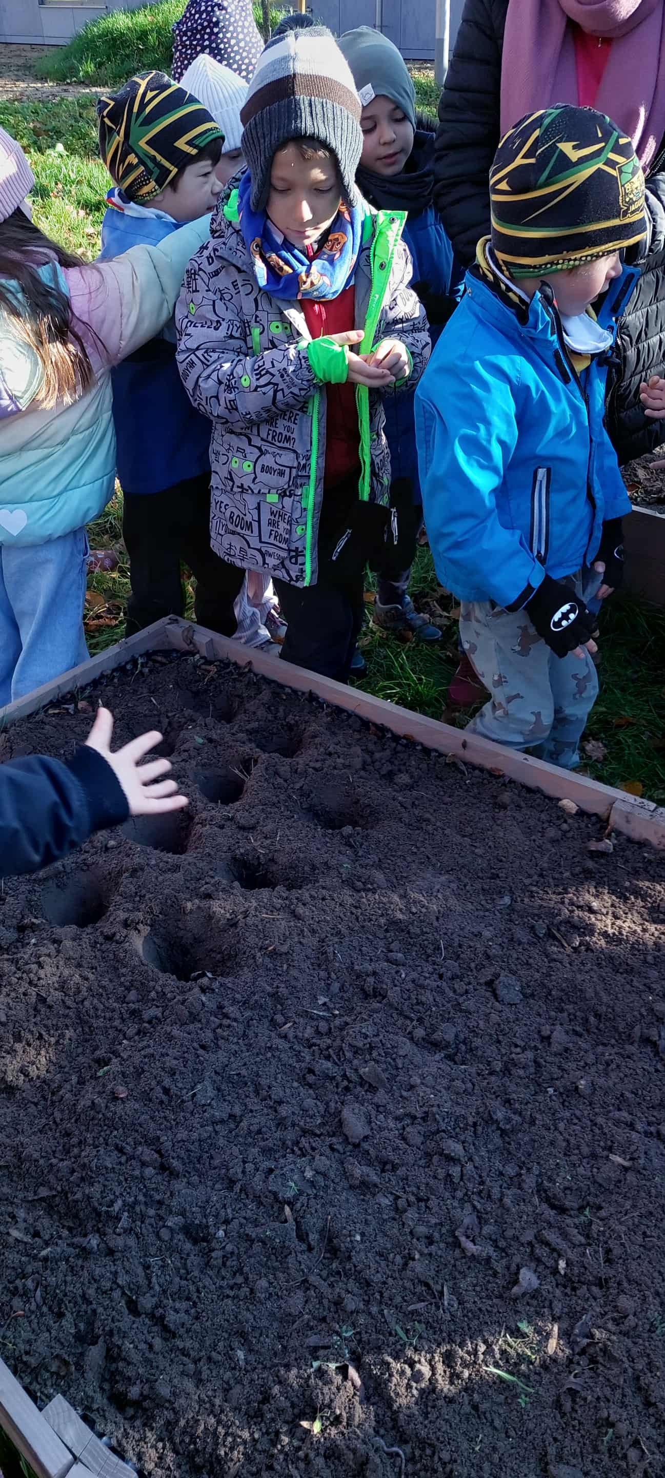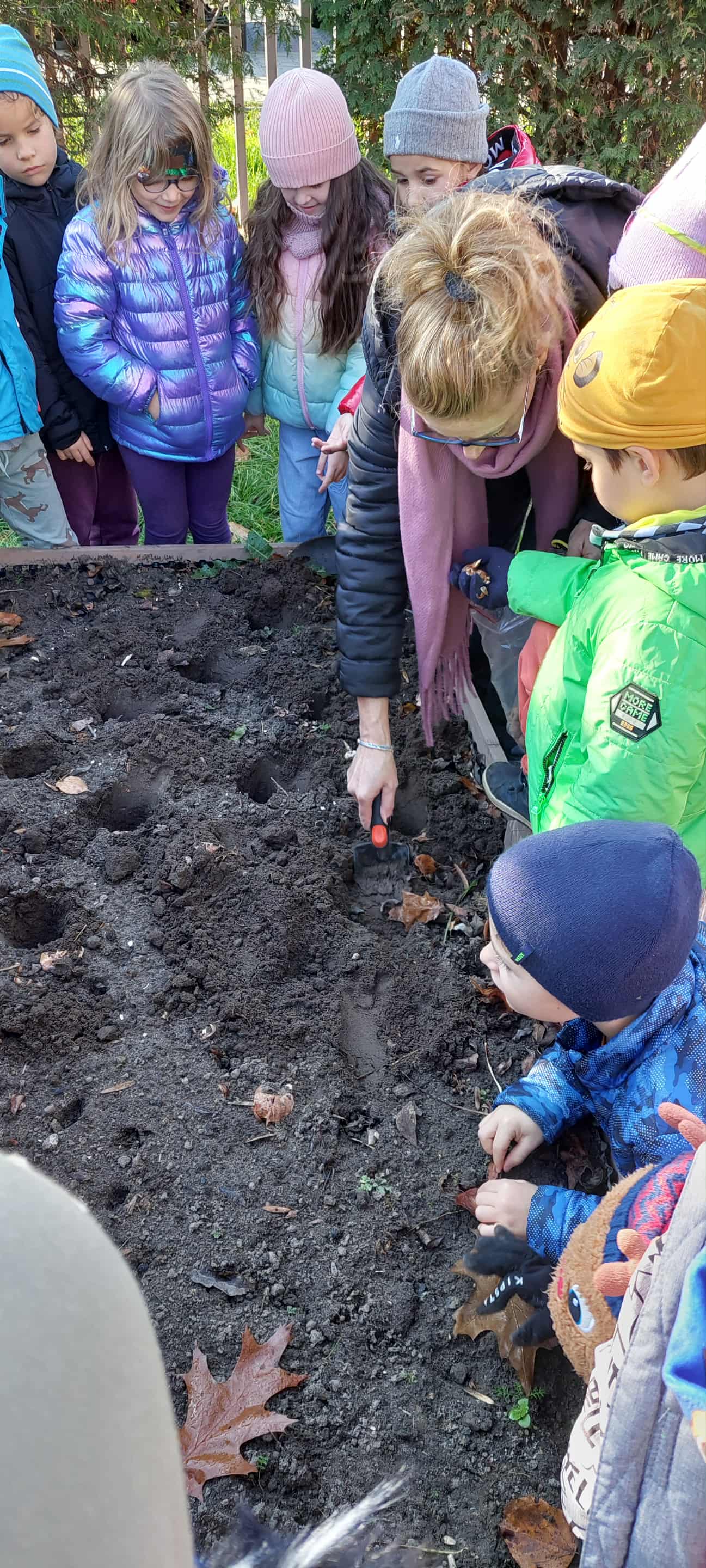 Dzieci ze wszystkich grup, pod opieką nauczycieli, zaangażowały się w tworzenie kolorowego wiosennego zakątka w ogrodzie przedszkolnym. Przedszkolaki z dużym entuzjazmem uczestniczyły w przygotowaniu gleby, poznawały etapy wzrostu roślin oraz uczyły się, jak dbać o cebulki, aby już wczesną wiosną mogły zakwitnąć piękne, kolorowe krokusy. Dla wielu dzieci była to pierwsza okazja, aby samodzielnie posadzić roślinę – tym większa była radość i satysfakcja z wykonanej pracy. Celem akcji było nie tylko upiększenie naszego otoczenia, ale również kształtowanie postawy troski o przyrodę, rozwijanie wrażliwości ekologicznej oraz nauka poprzez praktyczne działanie.