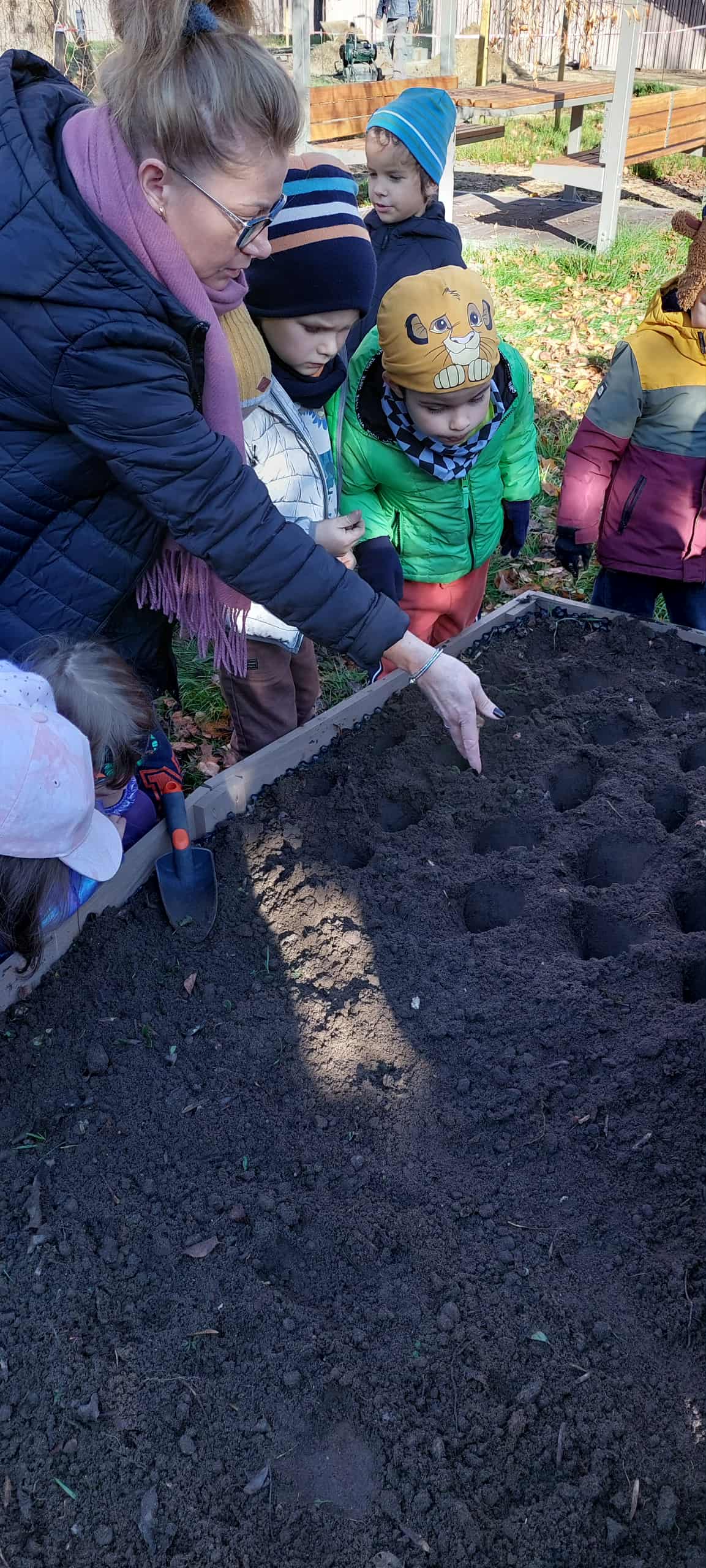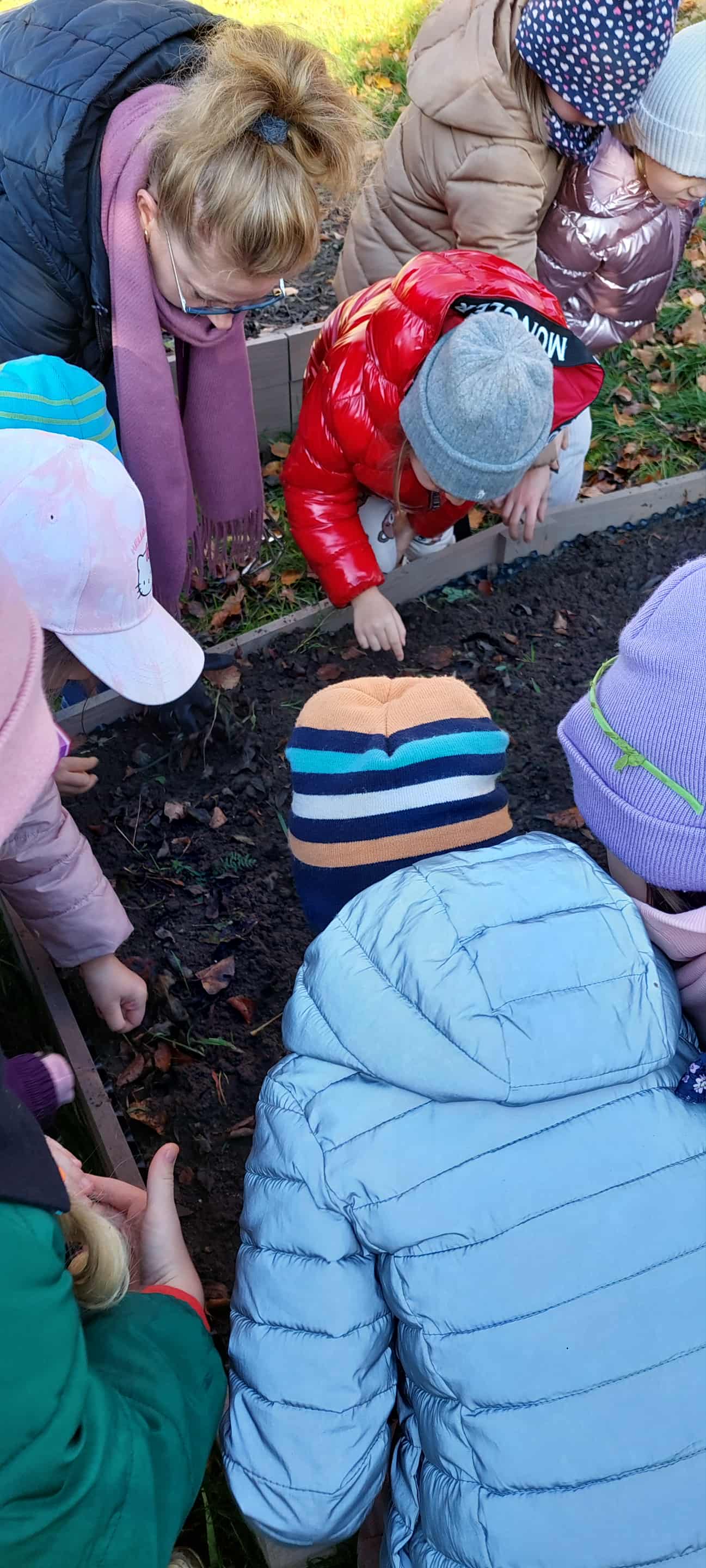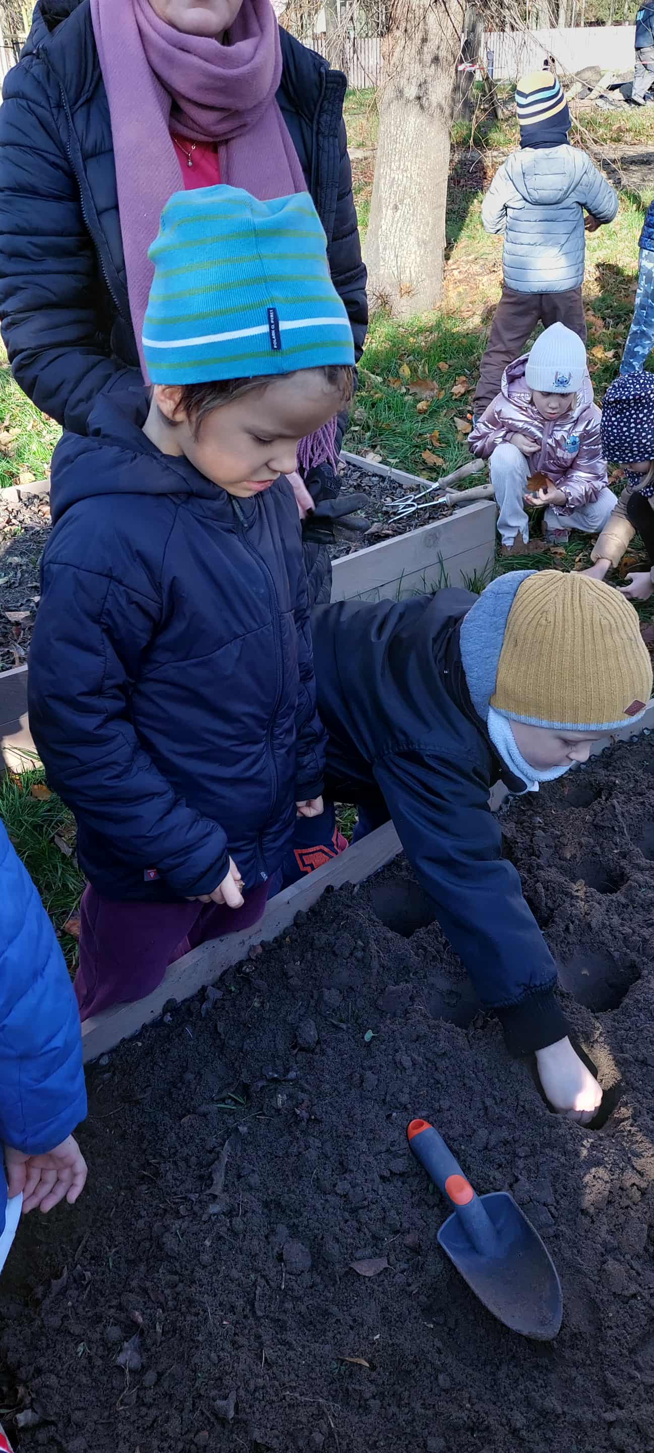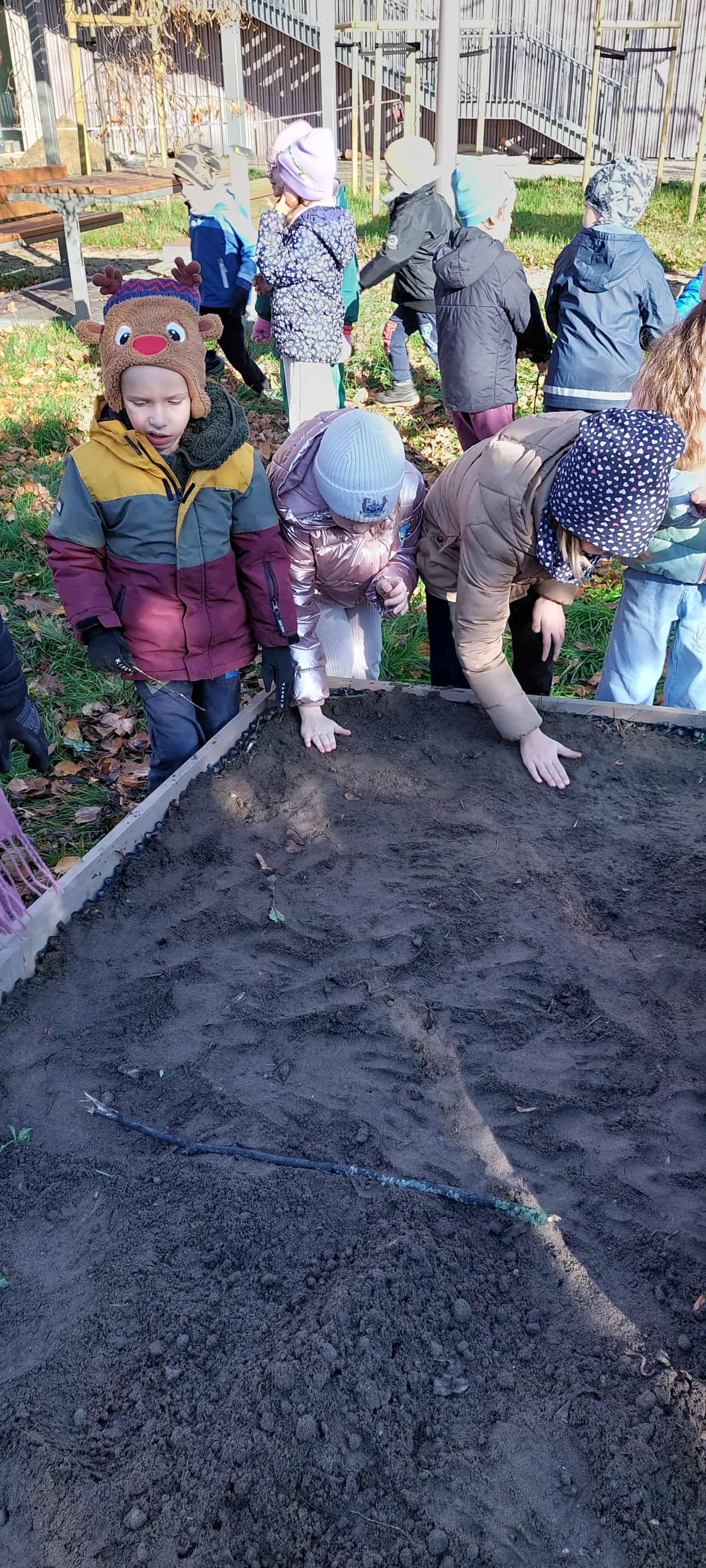 Dzieci ze wszystkich grup, pod opieką nauczycieli, zaangażowały się w tworzenie kolorowego wiosennego zakątka w ogrodzie przedszkolnym. Przedszkolaki z dużym entuzjazmem uczestniczyły w przygotowaniu gleby, poznawały etapy wzrostu roślin oraz uczyły się, jak dbać o cebulki, aby już wczesną wiosną mogły zakwitnąć piękne, kolorowe krokusy. Dla wielu dzieci była to pierwsza okazja, aby samodzielnie posadzić roślinę – tym większa była radość i satysfakcja z wykonanej pracy. Celem akcji było nie tylko upiększenie naszego otoczenia, ale również kształtowanie postawy troski o przyrodę, rozwijanie wrażliwości ekologicznej oraz nauka poprzez praktyczne działanie.