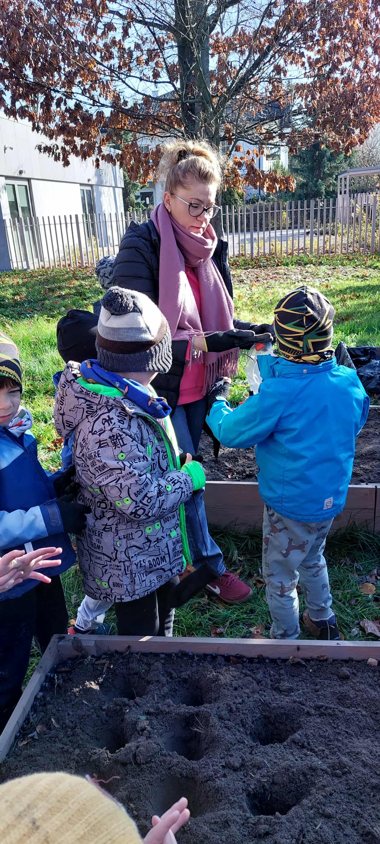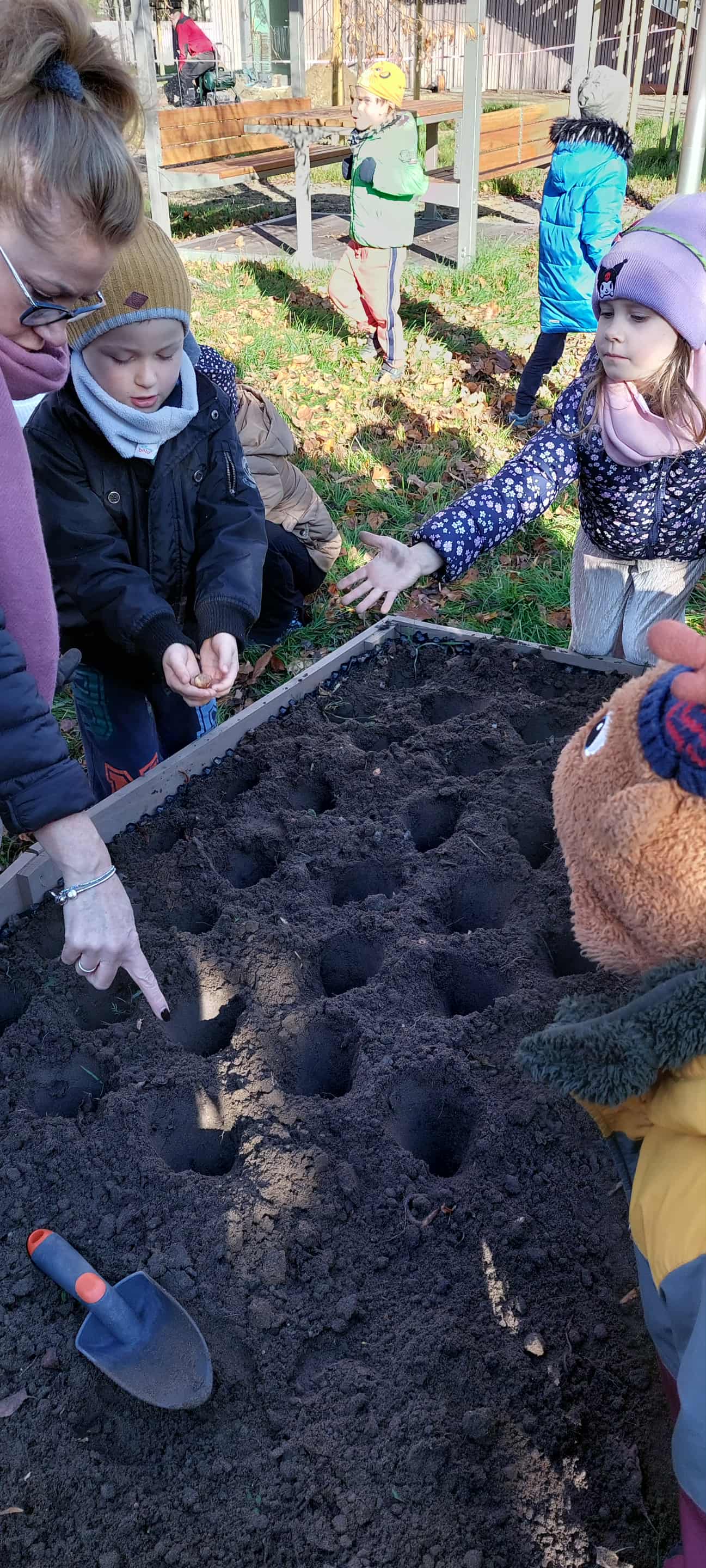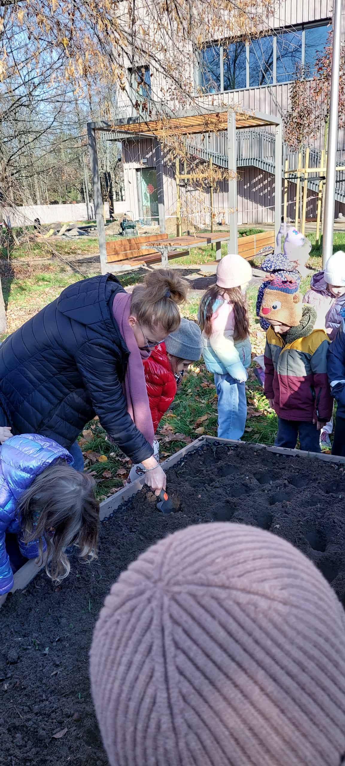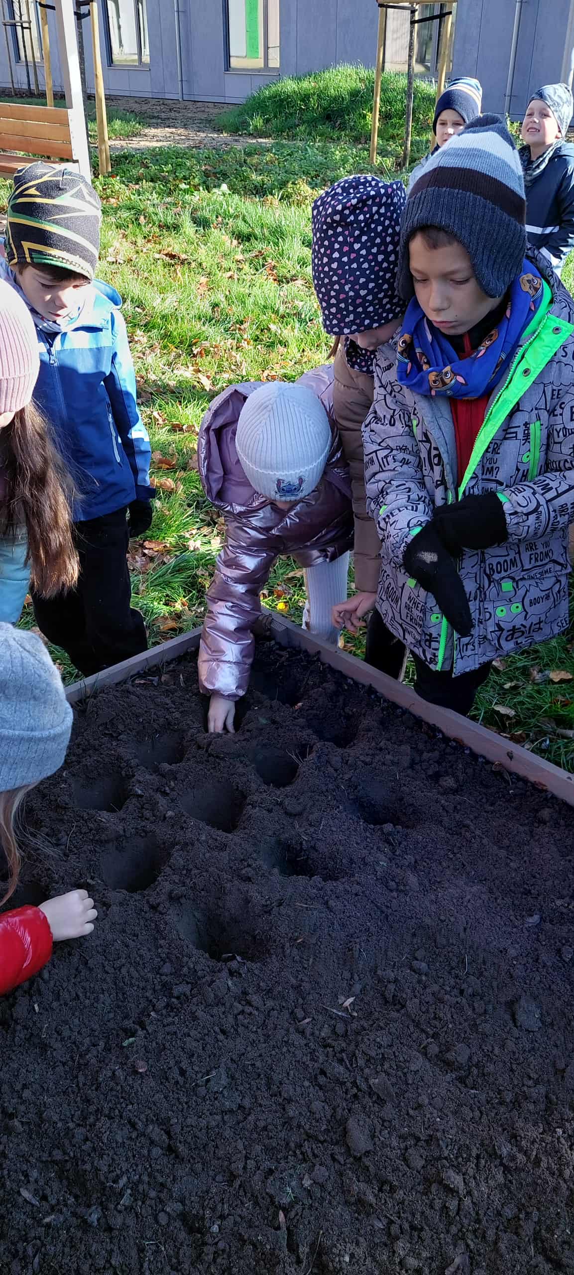 Dzieci ze wszystkich grup, pod opieką nauczycieli, zaangażowały się w tworzenie kolorowego wiosennego zakątka w ogrodzie przedszkolnym. Przedszkolaki z dużym entuzjazmem uczestniczyły w przygotowaniu gleby, poznawały etapy wzrostu roślin oraz uczyły się, jak dbać o cebulki, aby już wczesną wiosną mogły zakwitnąć piękne, kolorowe krokusy. Dla wielu dzieci była to pierwsza okazja, aby samodzielnie posadzić roślinę – tym większa była radość i satysfakcja z wykonanej pracy. Celem akcji było nie tylko upiększenie naszego otoczenia, ale również kształtowanie postawy troski o przyrodę, rozwijanie wrażliwości ekologicznej oraz nauka poprzez praktyczne działanie.