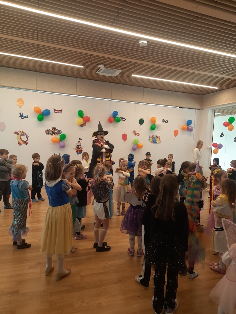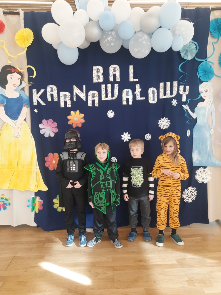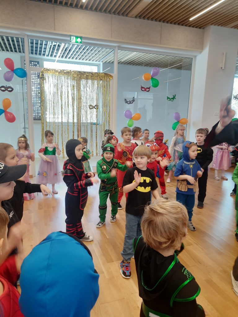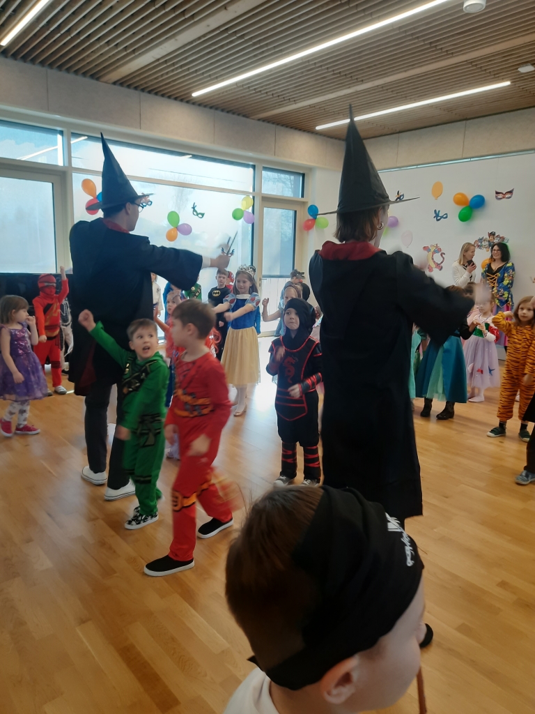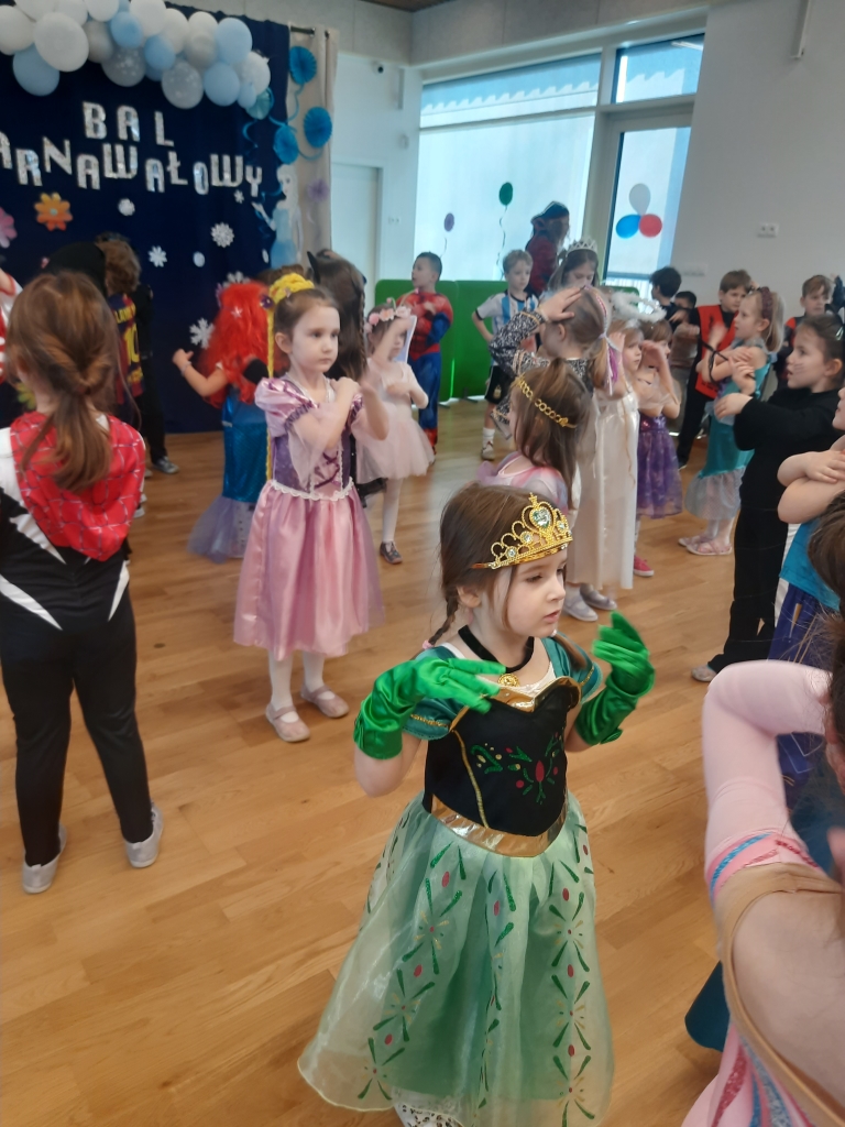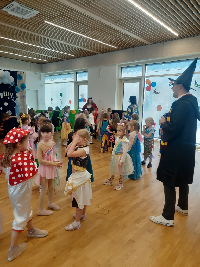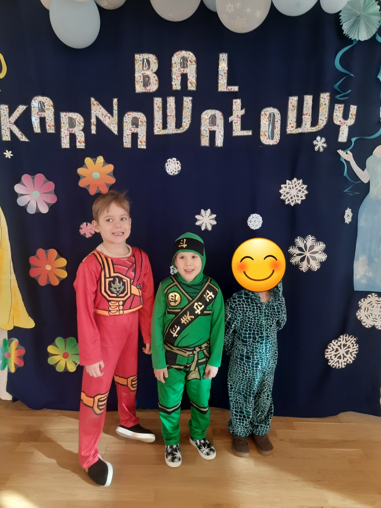W dniu 20 lutego, w naszym przedszkolu odbył się długo wyczekiwany bal karnawałowy! W sali panował niezwykły gwar i radość. Przedszkolaki, przebrane w wymyślne stroje z ulubionych bajek, z radością prezentowały swoje kreacje. Obok siebie pojawiły się eleganckie księżniczki, dzielni rycerze, a nawet smoki . Nie zabrakło bohaterów z popularnych bajek – w tym małych fanów Ninjago, którzy w swoich kostiumach wojowników z dumą prezentowali układy taneczne. Muzyka wypełniała salę radosnym rytmem, a dzieci tańczyły w kole, w parach i solo. Śmiech, okrzyki zachwytu i gromkie brawa rozbrzmiewały co chwilę. W tym wyjątkowym dniu każde dziecko czuło się bohaterem własnej bajki, a sala wypełniona kolorami i emocjami była świadkiem niezapomnianych chwil, które na długo pozostaną w pamięci maluchów.
