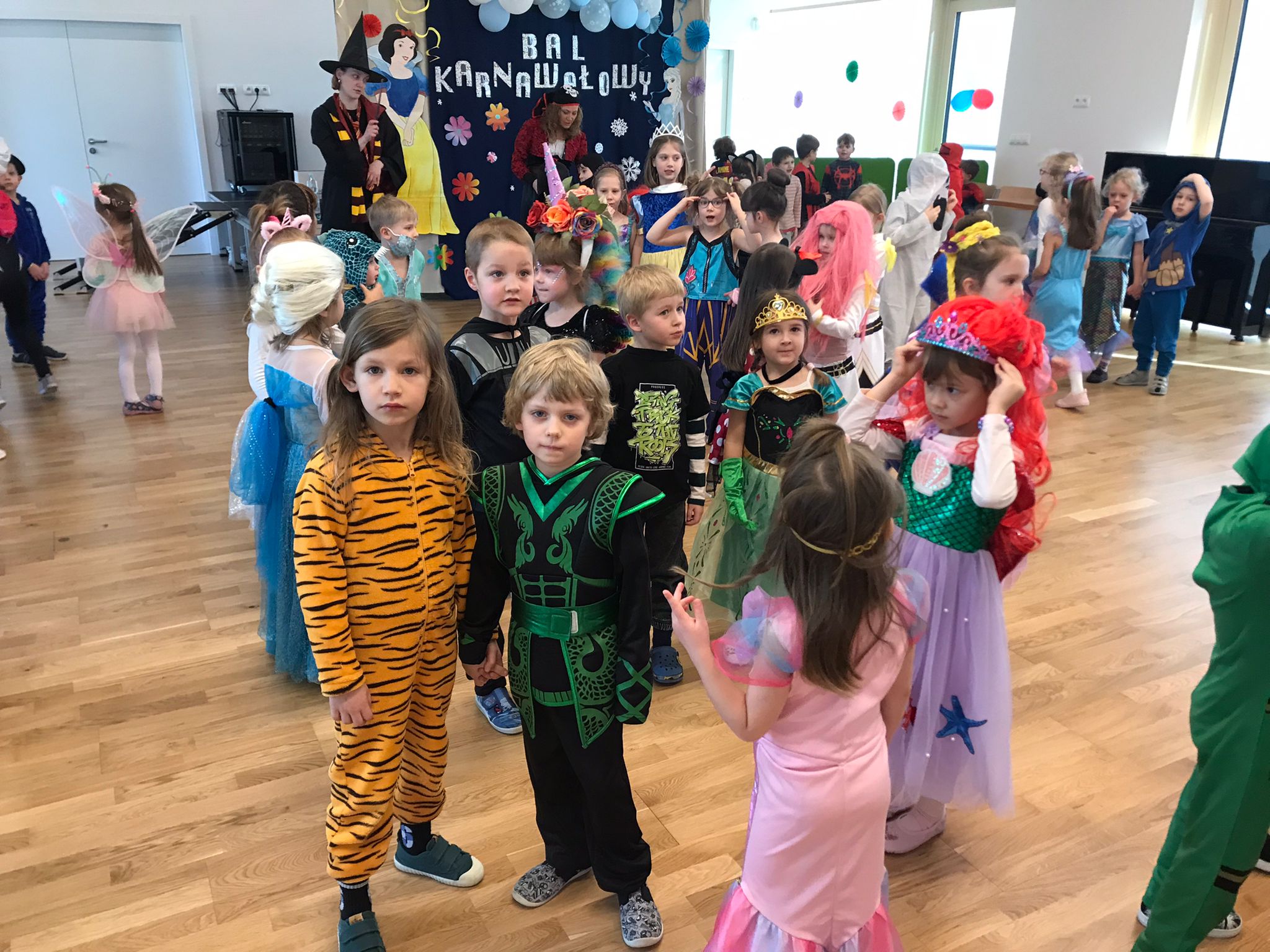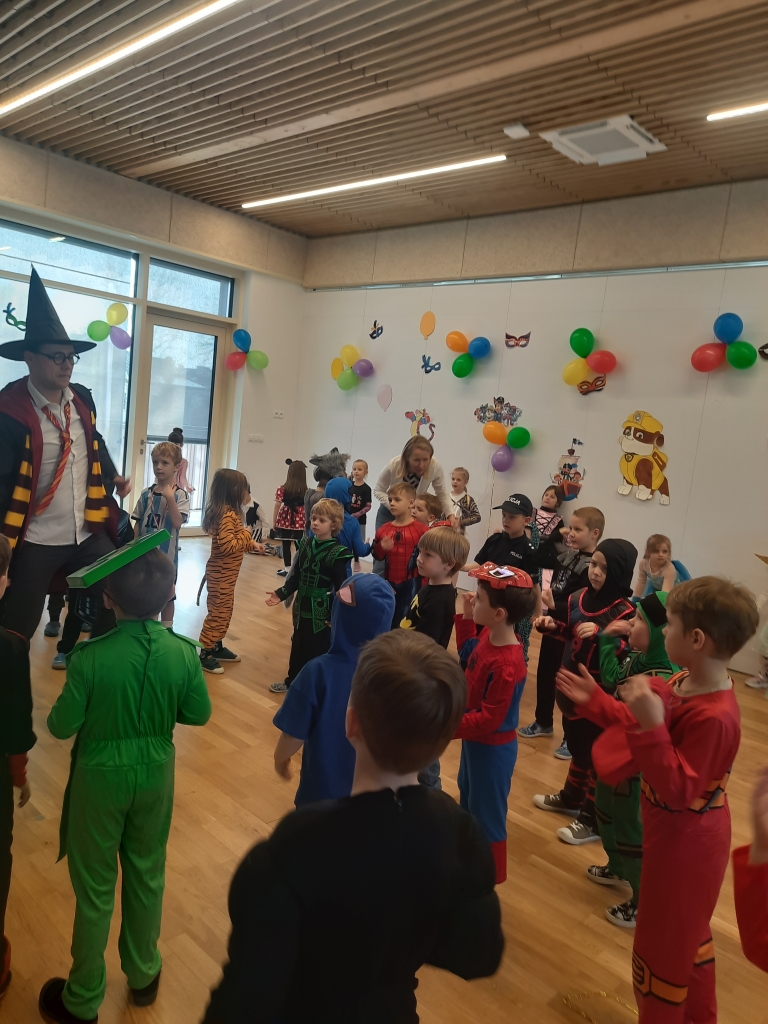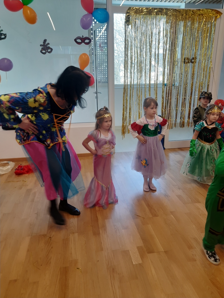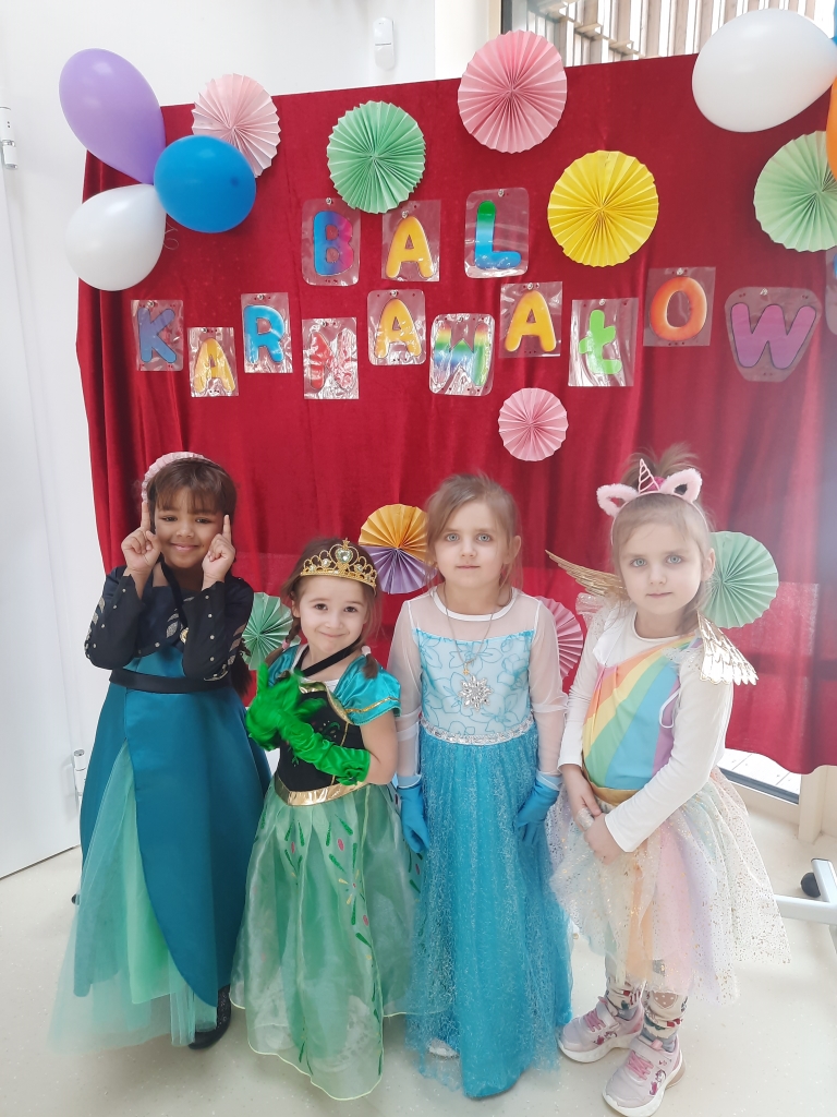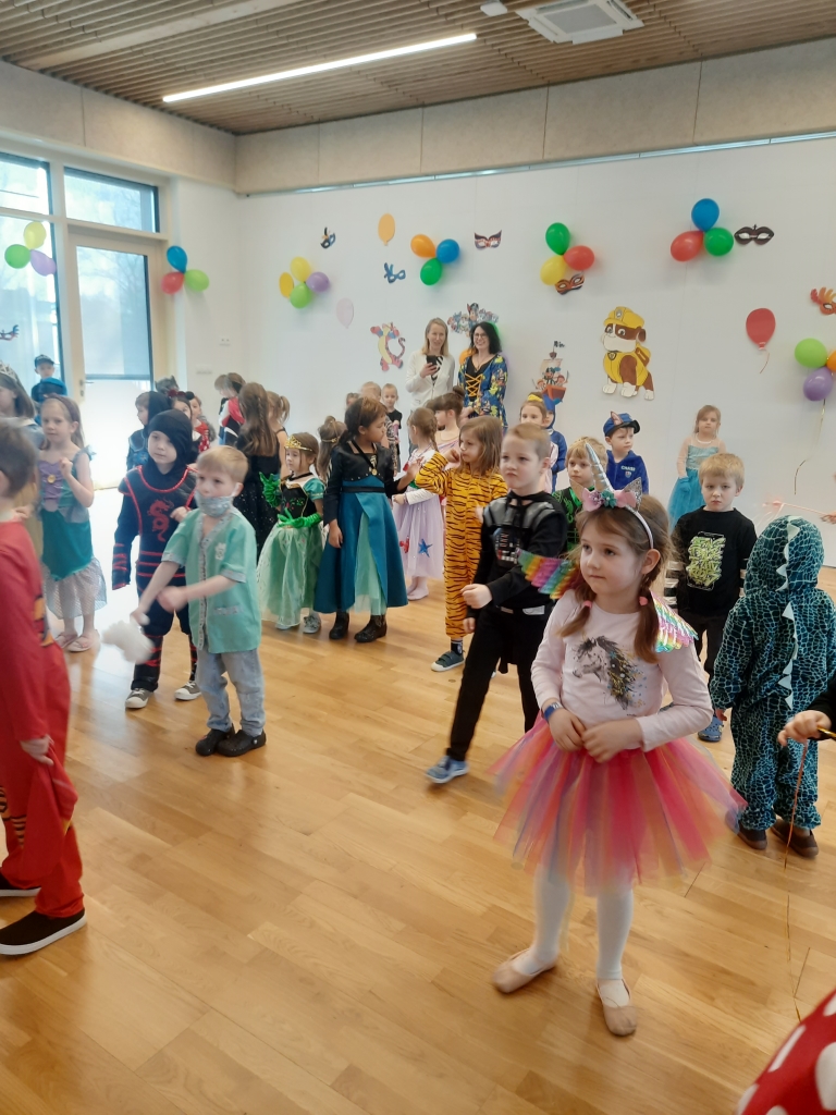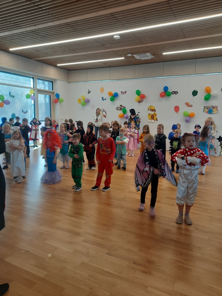 W dniu 20 lutego, w naszym przedszkolu odbył się długo wyczekiwany bal karnawałowy! W sali panował niezwykły gwar i radość. Przedszkolaki, przebrane w wymyślne stroje z ulubionych bajek, z radością prezentowały swoje kreacje. Obok siebie pojawiły się eleganckie księżniczki, dzielni rycerze, a nawet smoki . Nie zabrakło bohaterów z popularnych bajek – w tym małych fanów Ninjago, którzy w swoich kostiumach wojowników z dumą prezentowali układy taneczne. Muzyka wypełniała salę radosnym rytmem, a dzieci tańczyły w kole, w parach i solo. Śmiech, okrzyki zachwytu i gromkie brawa rozbrzmiewały co chwilę. W tym wyjątkowym dniu każde dziecko czuło się bohaterem własnej bajki, a sala wypełniona kolorami i emocjami była świadkiem niezapomnianych chwil, które na długo pozostaną w pamięci maluchów.