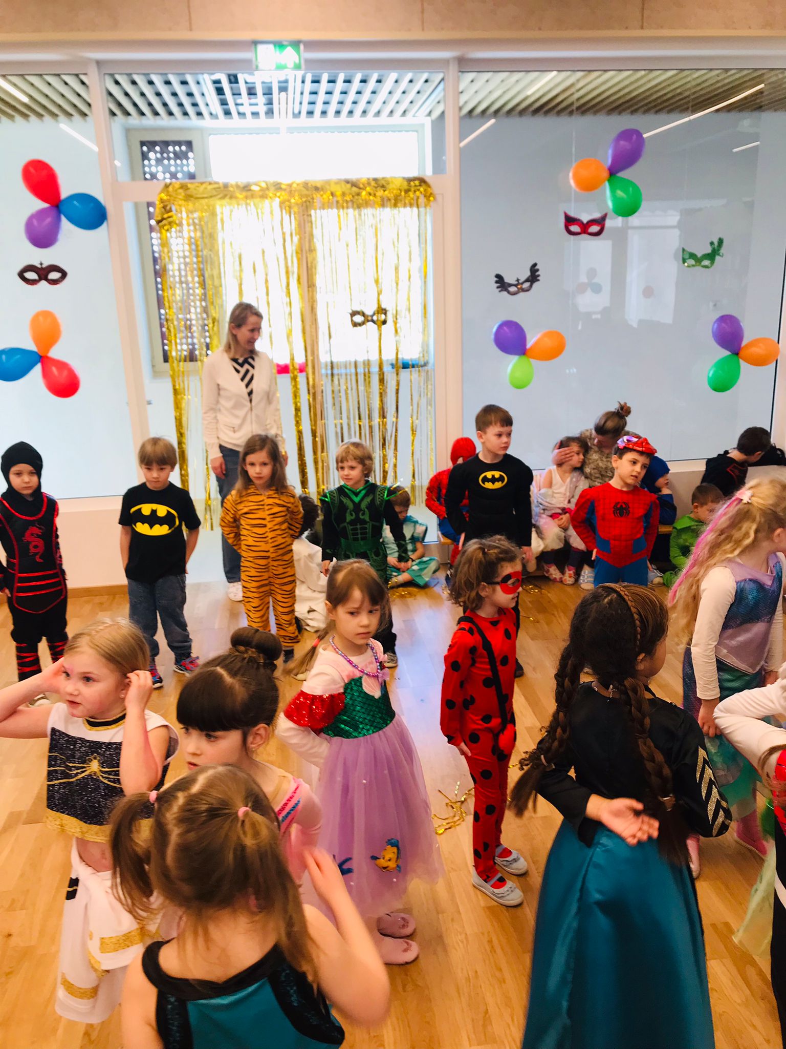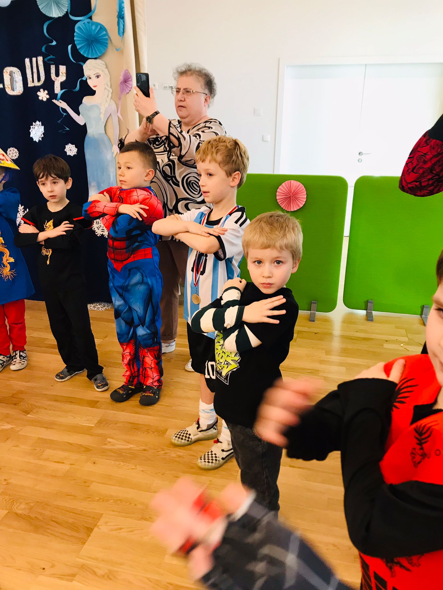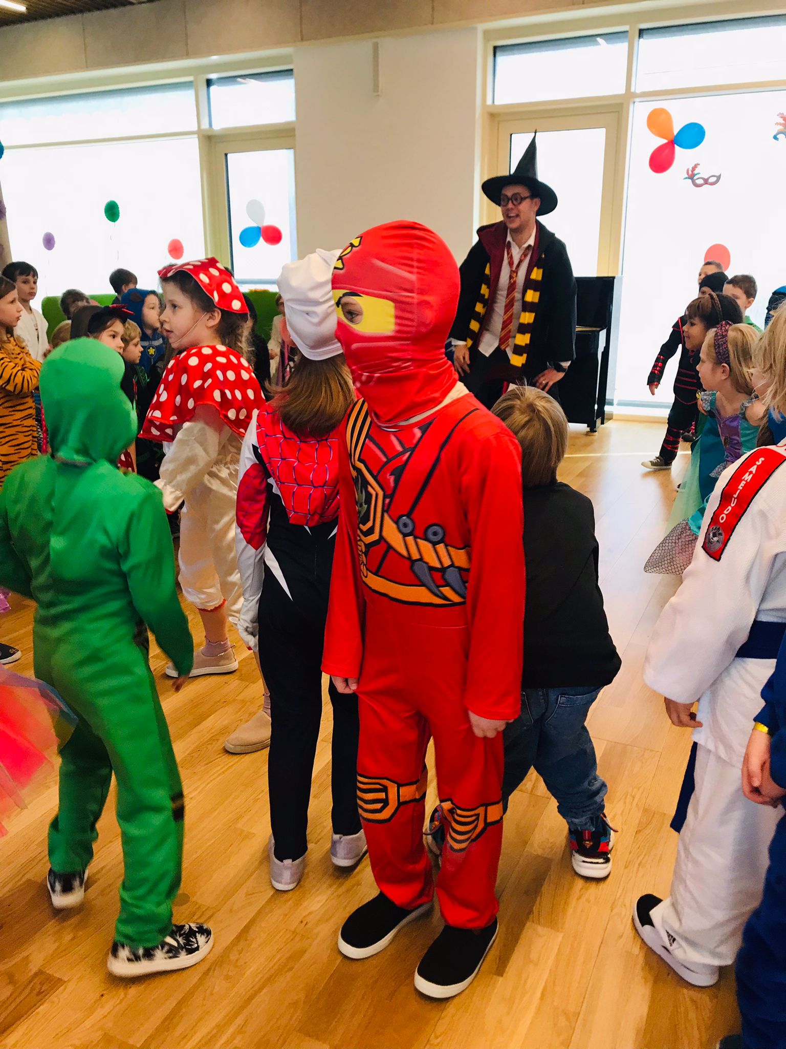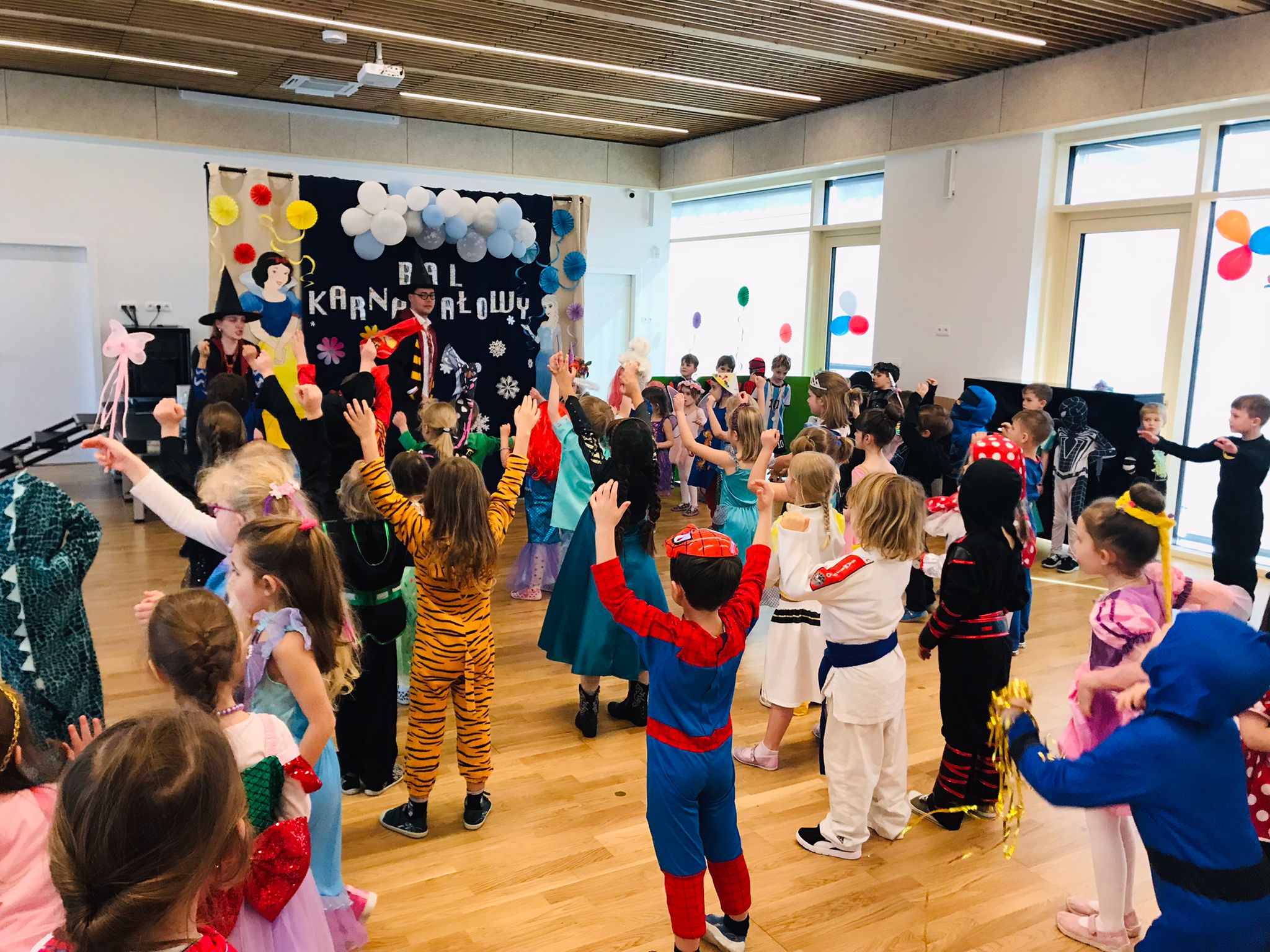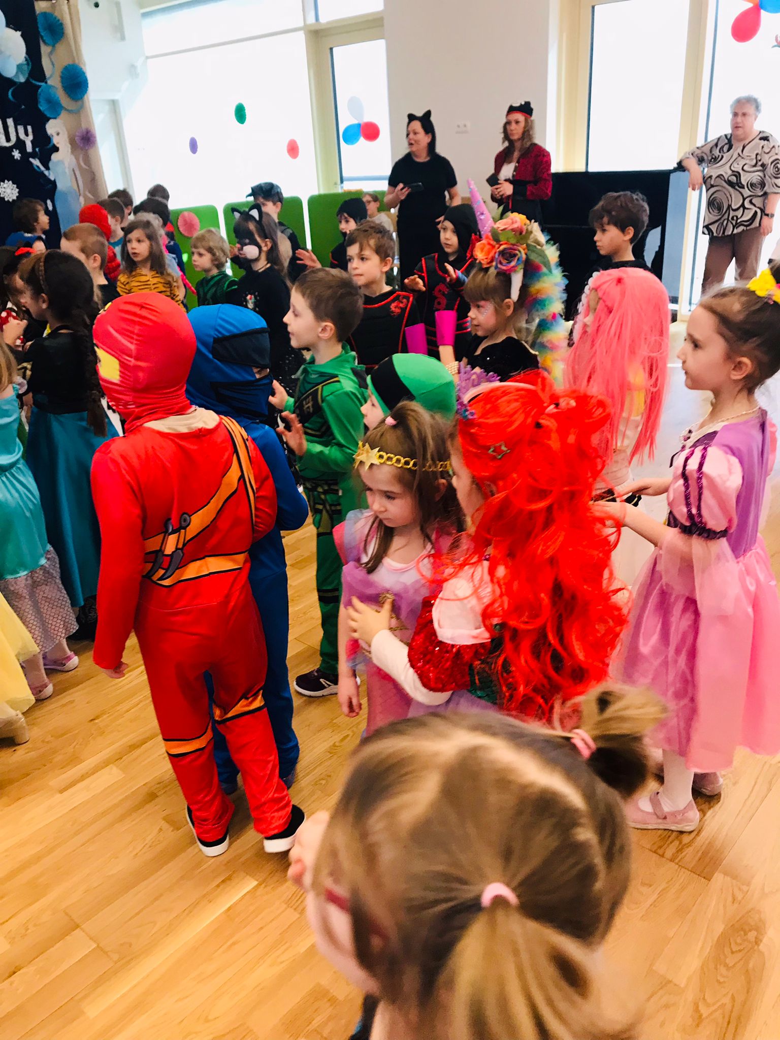 W dniu 20 lutego, w naszym przedszkolu odbył się długo wyczekiwany bal karnawałowy! W sali panował niezwykły gwar i radość. Przedszkolaki, przebrane w wymyślne stroje z ulubionych bajek, z radością prezentowały swoje kreacje. Obok siebie pojawiły się eleganckie księżniczki, dzielni rycerze, a nawet smoki . Nie zabrakło bohaterów z popularnych bajek – w tym małych fanów Ninjago, którzy w swoich kostiumach wojowników z dumą prezentowali układy taneczne. Muzyka wypełniała salę radosnym rytmem, a dzieci tańczyły w kole, w parach i solo. Śmiech, okrzyki zachwytu i gromkie brawa rozbrzmiewały co chwilę. W tym wyjątkowym dniu każde dziecko czuło się bohaterem własnej bajki, a sala wypełniona kolorami i emocjami była świadkiem niezapomnianych chwil, które na długo pozostaną w pamięci maluchów.
