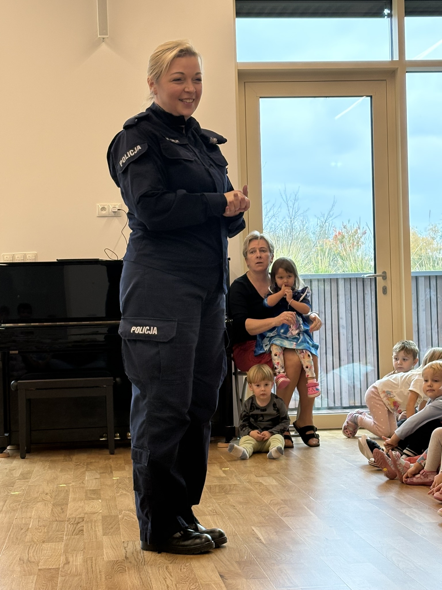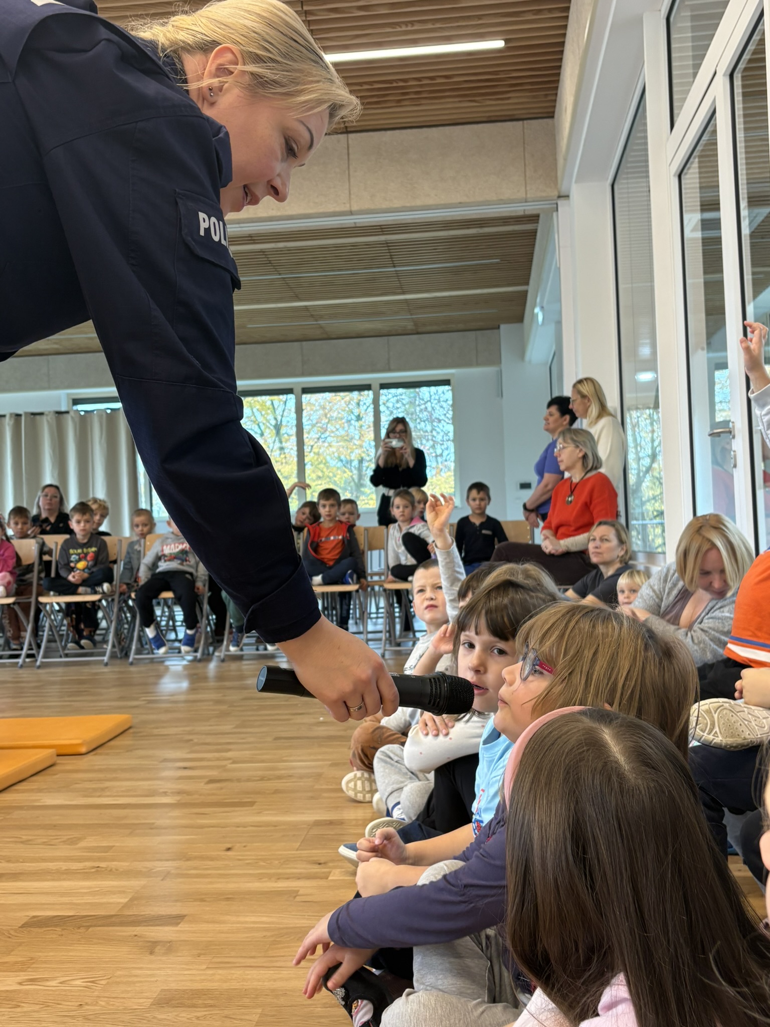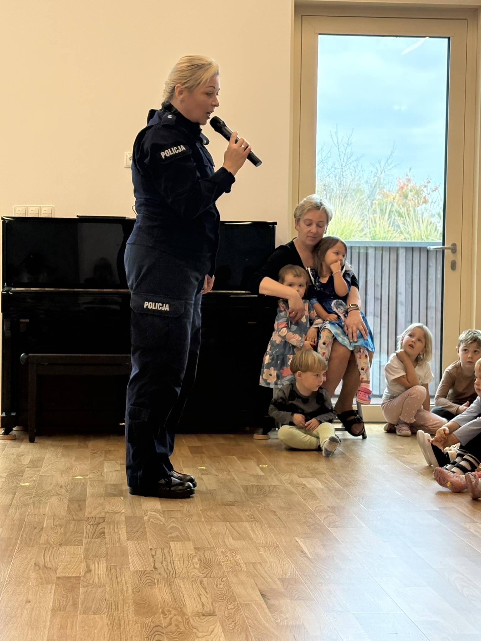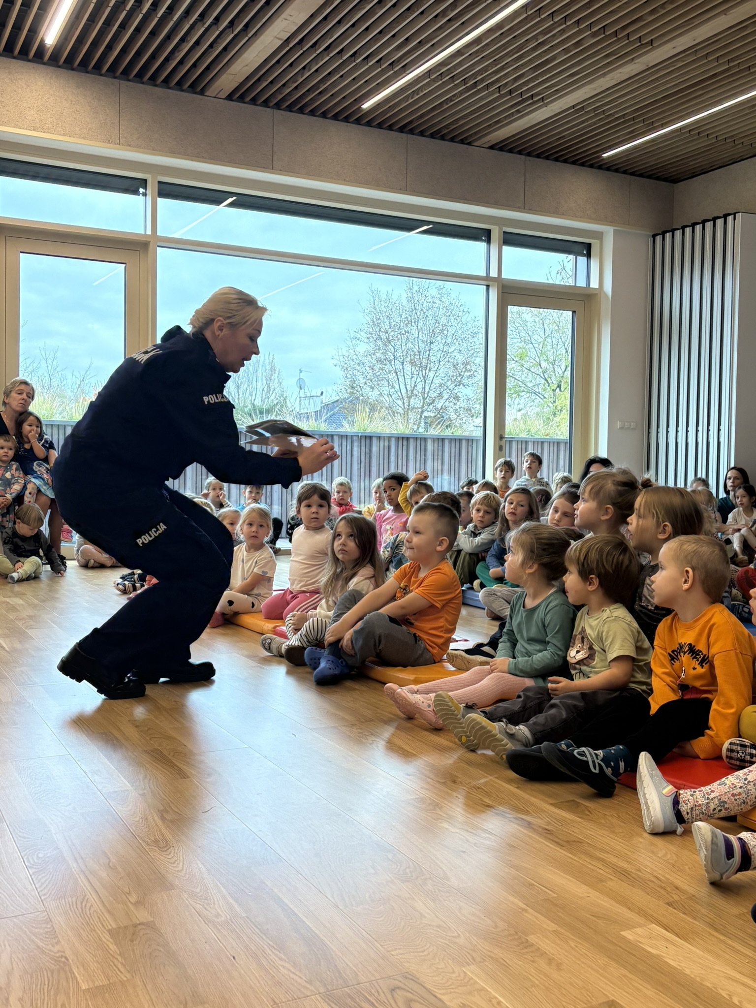 W ubiegłym tygodniu nasze przedszkole odwiedzili wyjątkowi goście – policjanci z Komendy Policji, a wraz z nim pojawili się przedstawiciele Urzędu Gminy Michałowice. Wizyta odbyła się w ramach zajęć poświęconych bezpieczeństwu na drodze. Podczas spotkania dzieci dowiedziały się, jak należy zachowywać się podczas przechodzenia przez jezdnię, dlaczego warto nosić odblaski oraz jak bezpiecznie poruszać się po chodniku i w pobliżu ulicy. Policjanci w ciekawy i przystępny sposób opowiedział o swojej pracy, a także odpowiedzieli na liczne pytania naszych przedszkolaków. Obecni na spotkaniu goście z Urzędu Gminy podkreślili, jak ważne jest dbanie o bezpieczeństwo najmłodszych mieszkańców oraz zachęcali dzieci do utrwalania poznanych zasad w codziennych sytuacjach. Na zakończenie spotkania każde dziecko otrzymało odblask, dzięki któremu będzie lepiej widoczne i bezpieczne podczas jesiennych spacerów. Serdecznie dziękujemy wszystkim gościom za interesujące spotkanie i cenną lekcję bezpieczeństwa!