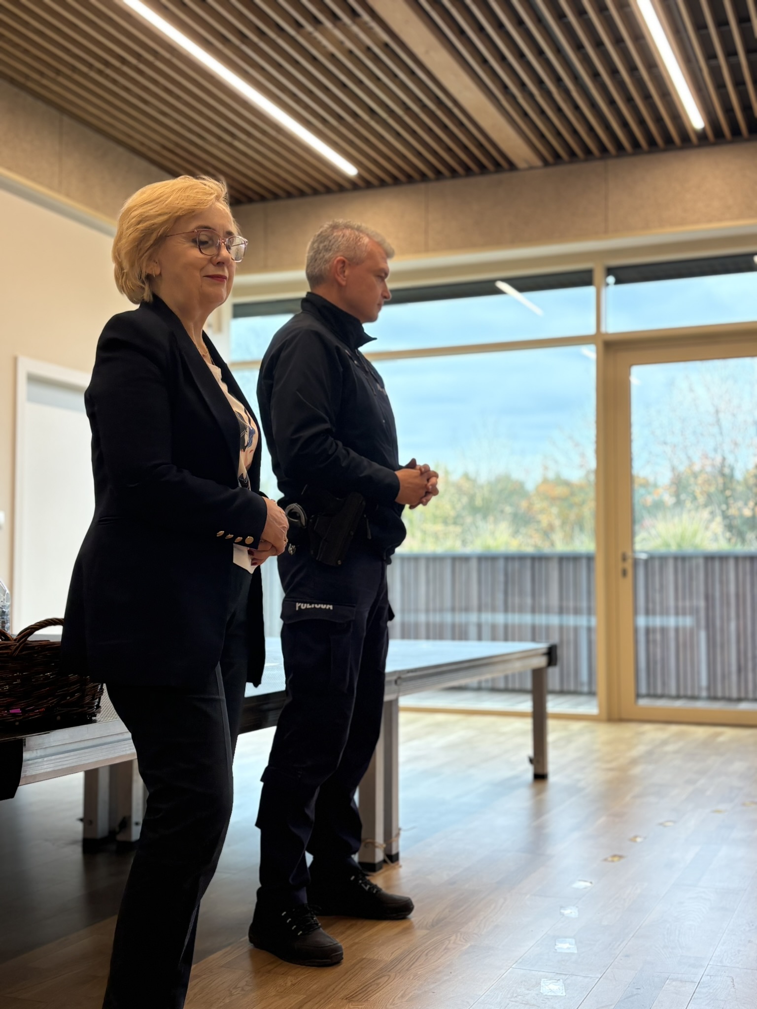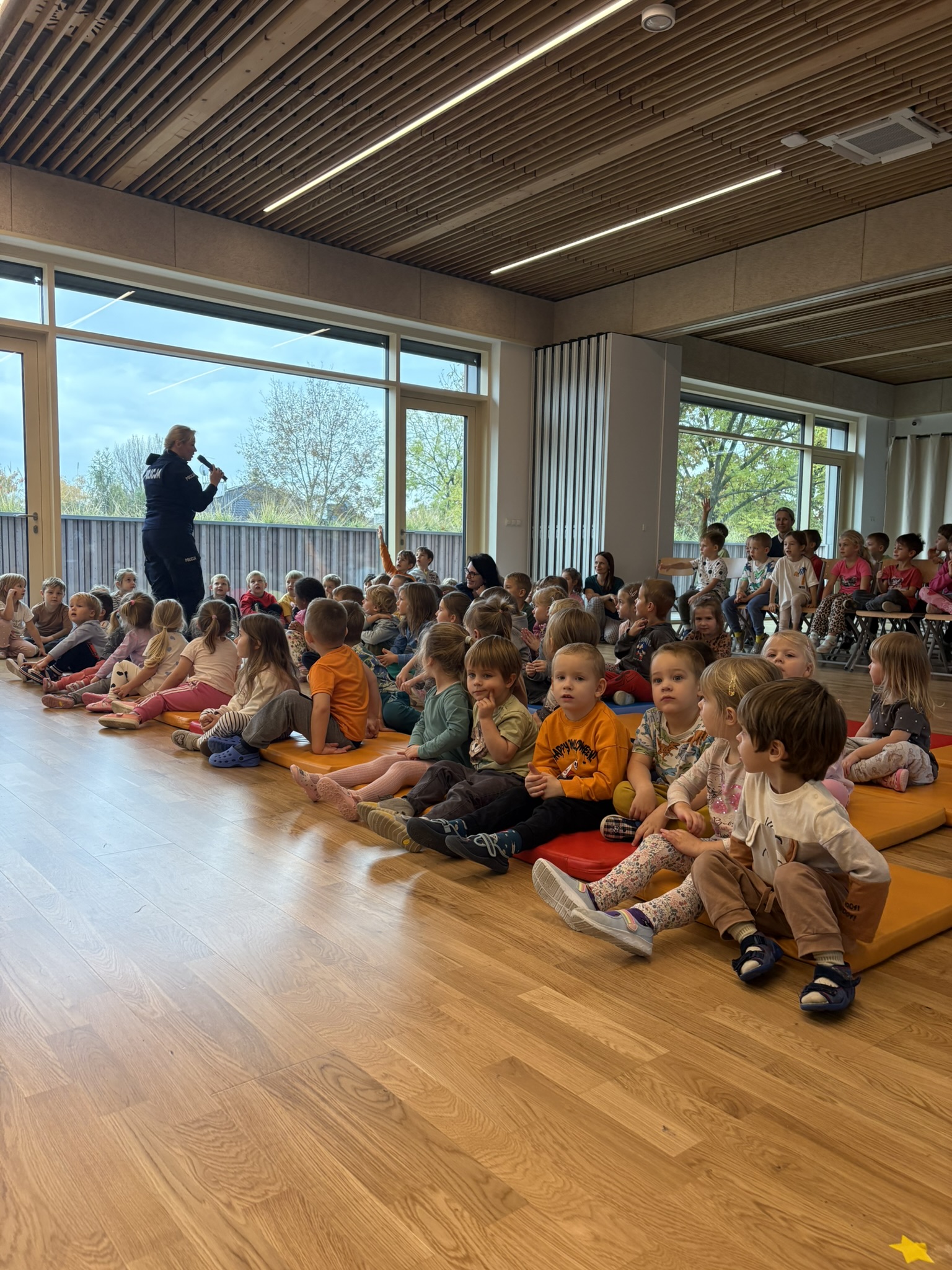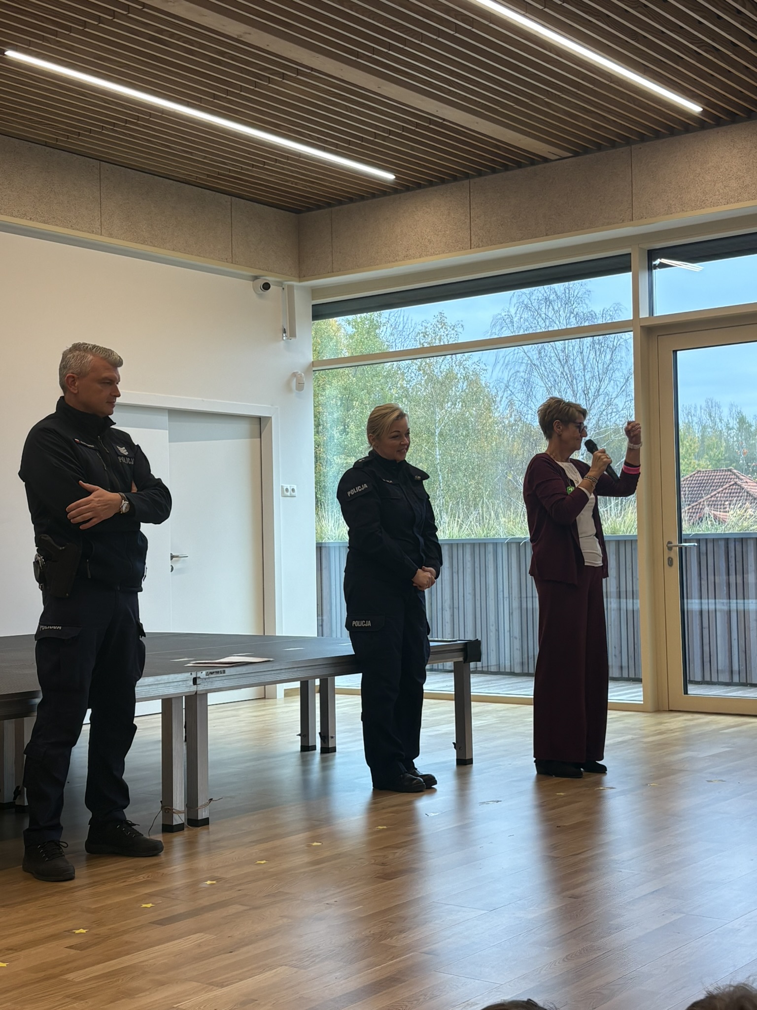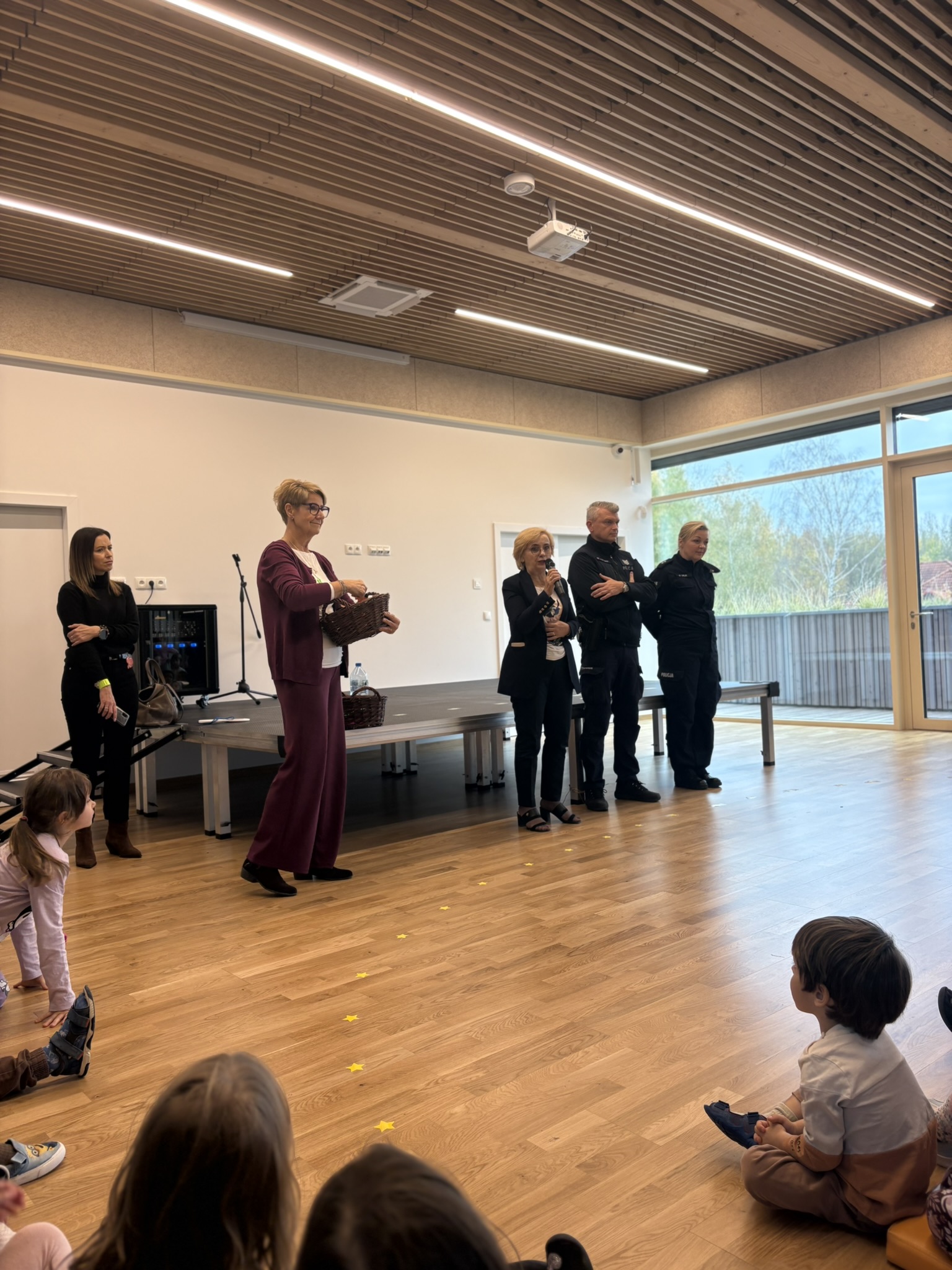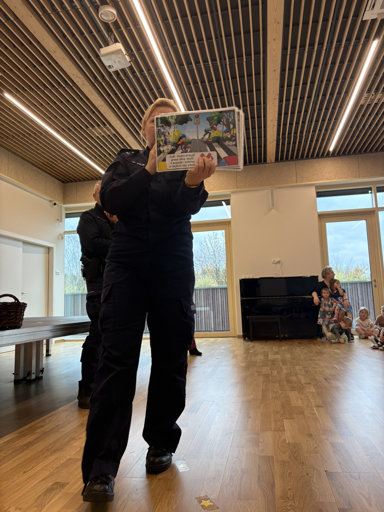 W ubiegłym tygodniu nasze przedszkole odwiedzili wyjątkowi goście – policjanci z Komendy Policji, a wraz z nim pojawili się przedstawiciele Urzędu Gminy Michałowice. Wizyta odbyła się w ramach zajęć poświęconych bezpieczeństwu na drodze. Podczas spotkania dzieci dowiedziały się, jak należy zachowywać się podczas przechodzenia przez jezdnię, dlaczego warto nosić odblaski oraz jak bezpiecznie poruszać się po chodniku i w pobliżu ulicy. Policjanci w ciekawy i przystępny sposób opowiedział o swojej pracy, a także odpowiedzieli na liczne pytania naszych przedszkolaków. Obecni na spotkaniu goście z Urzędu Gminy podkreślili, jak ważne jest dbanie o bezpieczeństwo najmłodszych mieszkańców oraz zachęcali dzieci do utrwalania poznanych zasad w codziennych sytuacjach. Na zakończenie spotkania każde dziecko otrzymało odblask, dzięki któremu będzie lepiej widoczne i bezpieczne podczas jesiennych spacerów. Serdecznie dziękujemy wszystkim gościom za interesujące spotkanie i cenną lekcję bezpieczeństwa!