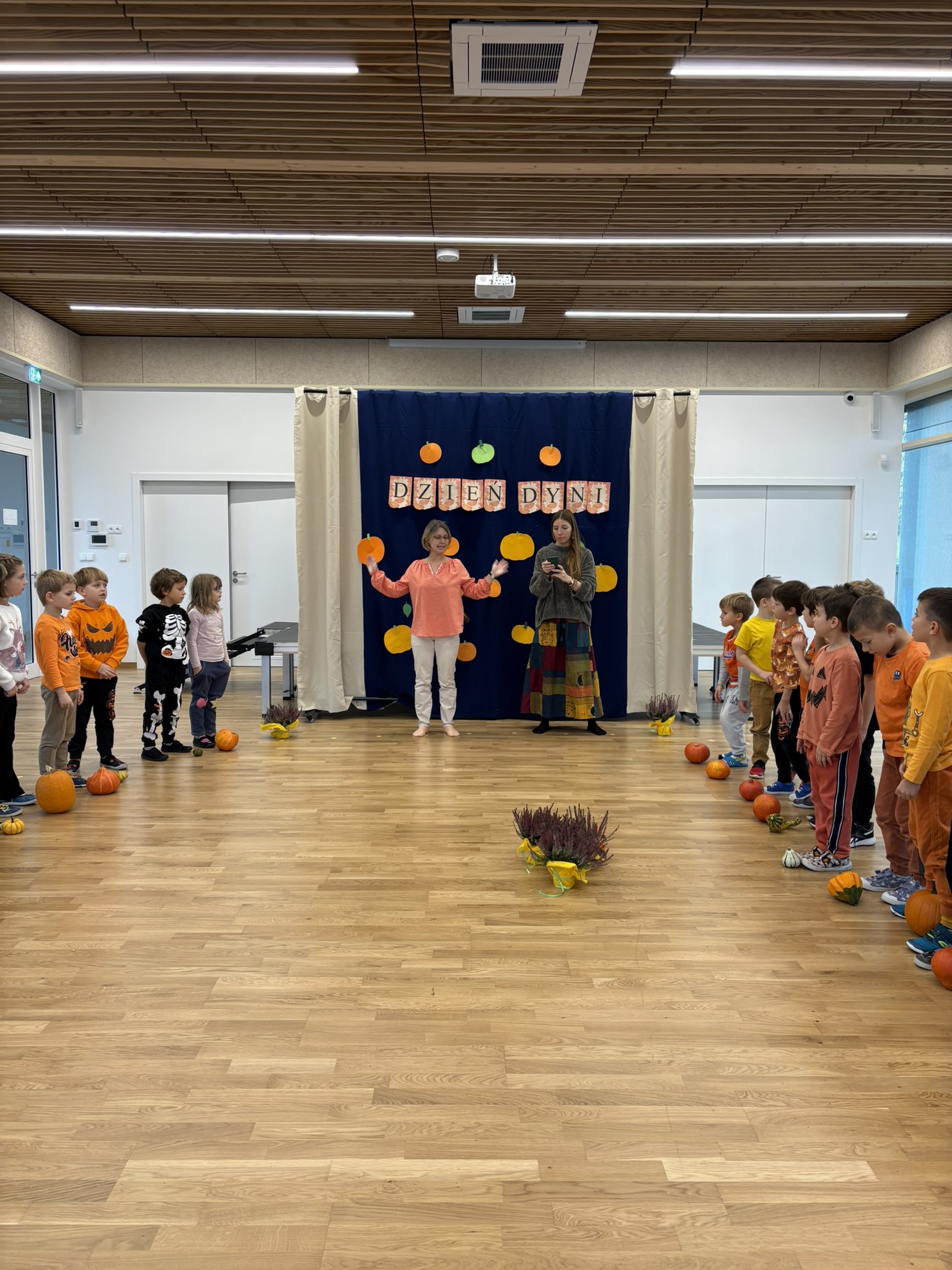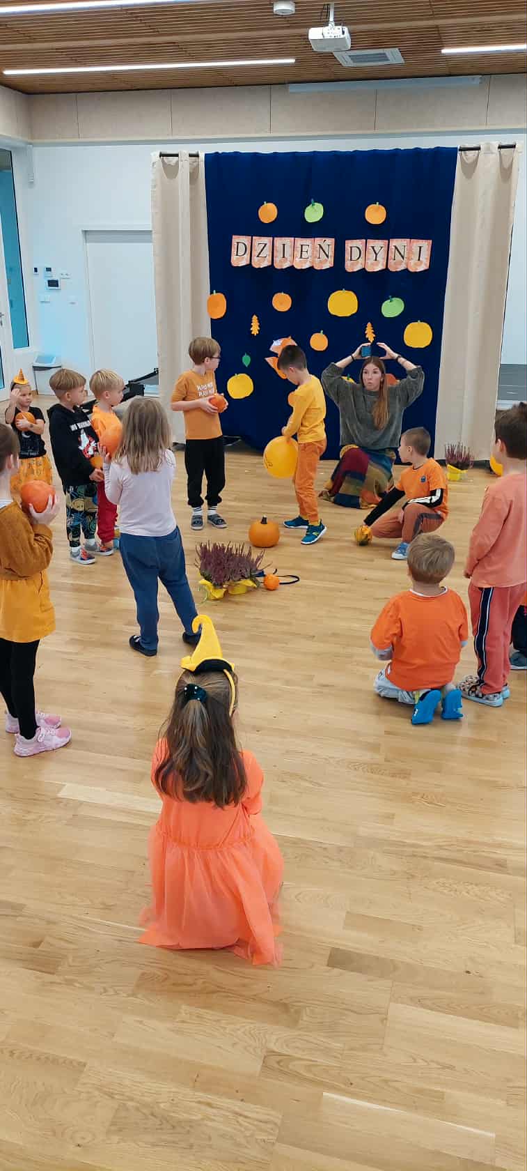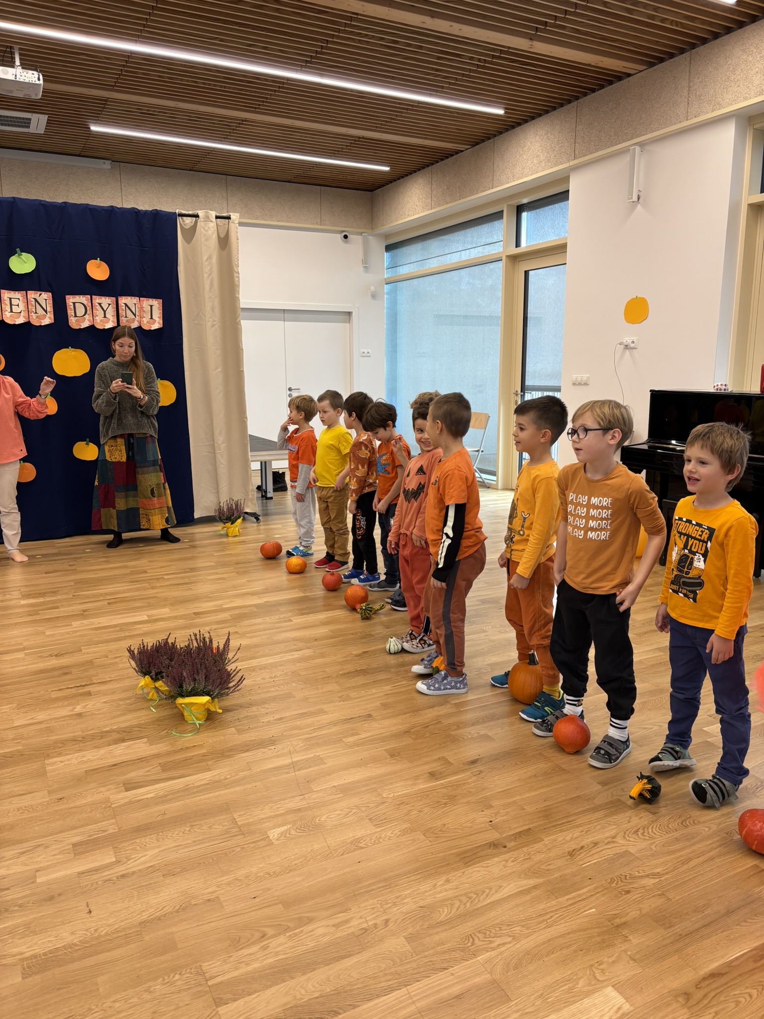 W minionym tygodniu odbyło się jesienne święto – Dzień Dyni! Tego dnia sala wypełniła się pomarańczowymi barwami, uśmiechami dzieci i zapachem jesieni. Wspólnie uczestniczyliśmy w dyniowych zabawach ruchowych, konkursach i pracach plastycznych, w których główną bohaterką oczywiście była dynia! Nie zabrakło też dyniowych zagadek, wspólnych tańców i zdjęć w jesiennej scenerii. To był dzień pełen radości, zabawy i wspólnego odkrywania uroków jesieni