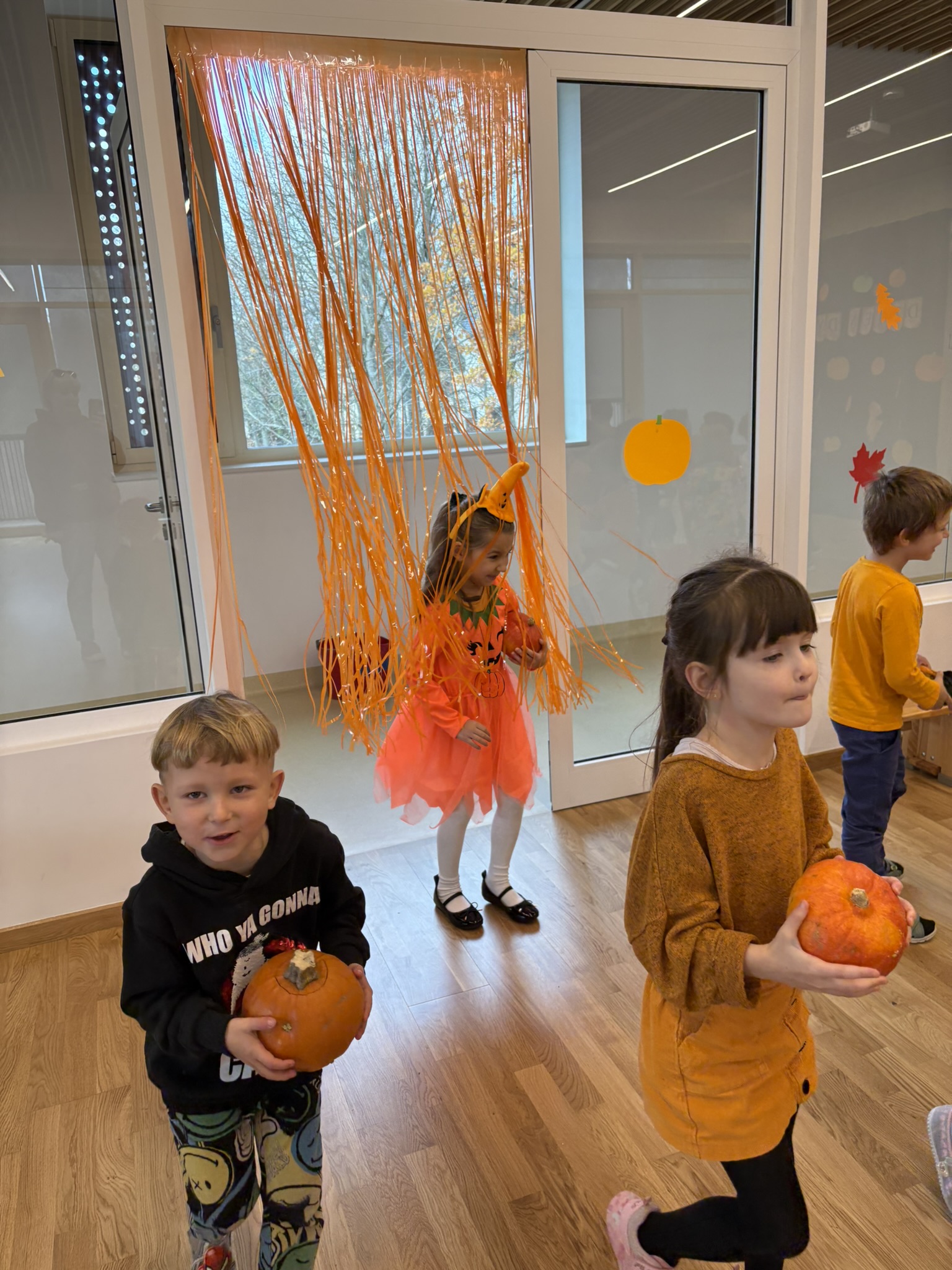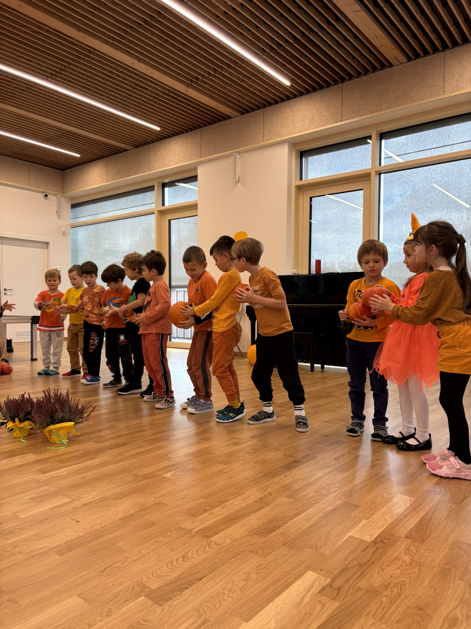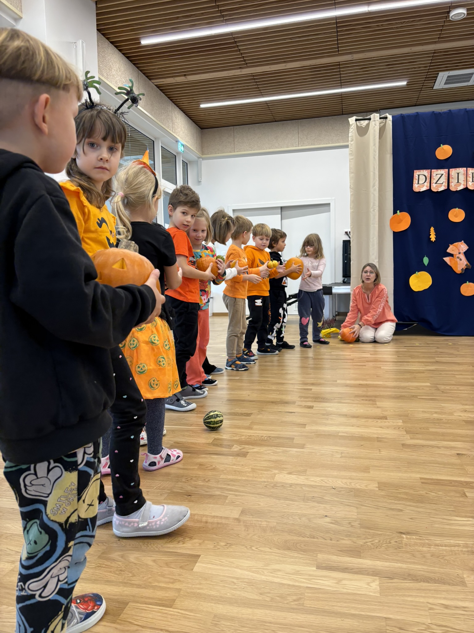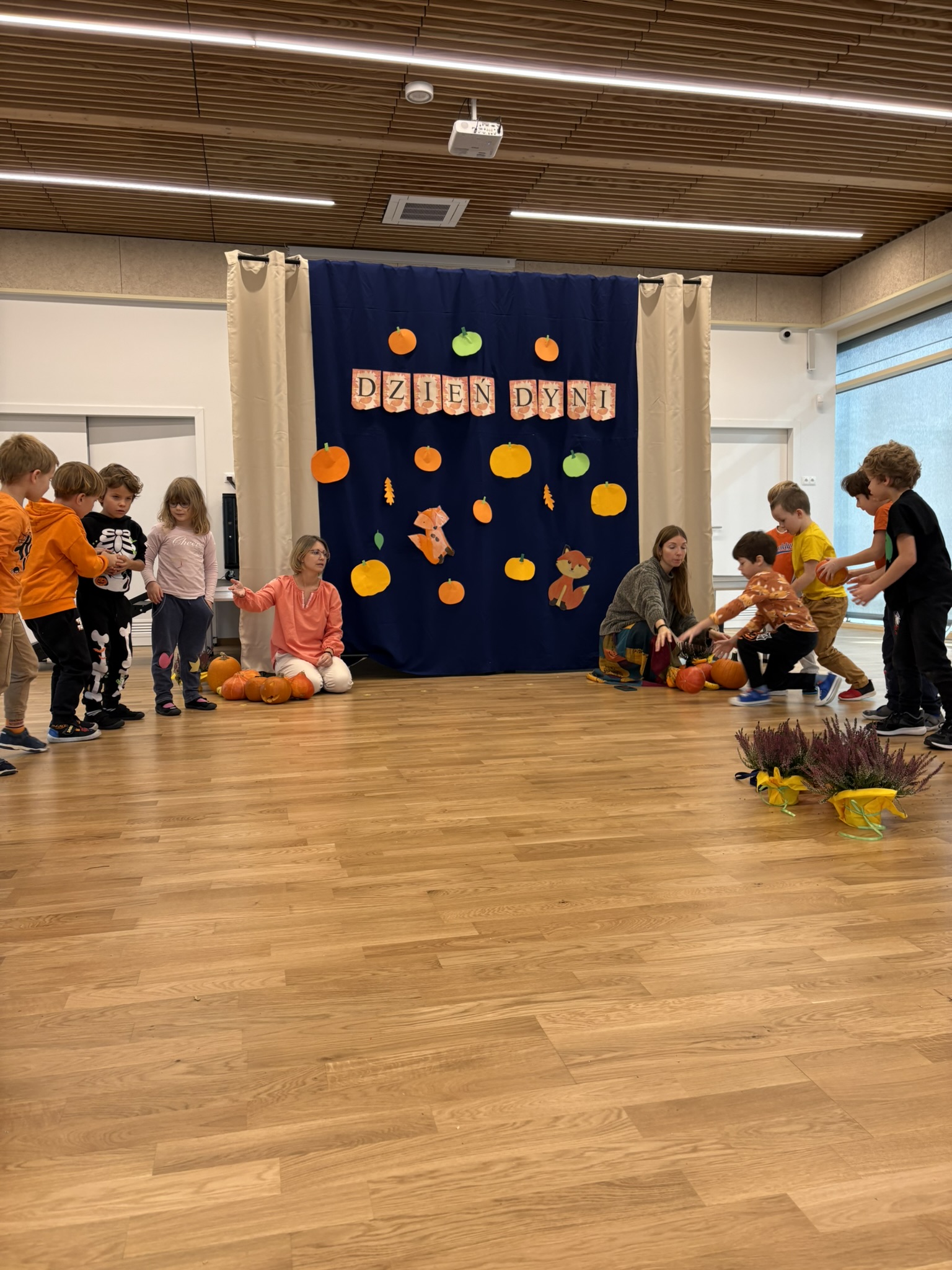 W minionym tygodniu odbyło się jesienne święto – Dzień Dyni! Tego dnia sala wypełniła się pomarańczowymi barwami, uśmiechami dzieci i zapachem jesieni. Wspólnie uczestniczyliśmy w dyniowych zabawach ruchowych, konkursach i pracach plastycznych, w których główną bohaterką oczywiście była dynia! Nie zabrakło też dyniowych zagadek, wspólnych tańców i zdjęć w jesiennej scenerii. To był dzień pełen radości, zabawy i wspólnego odkrywania uroków jesieni