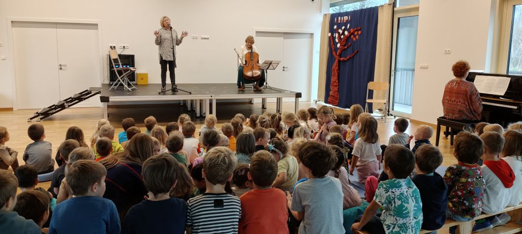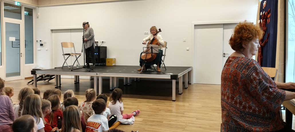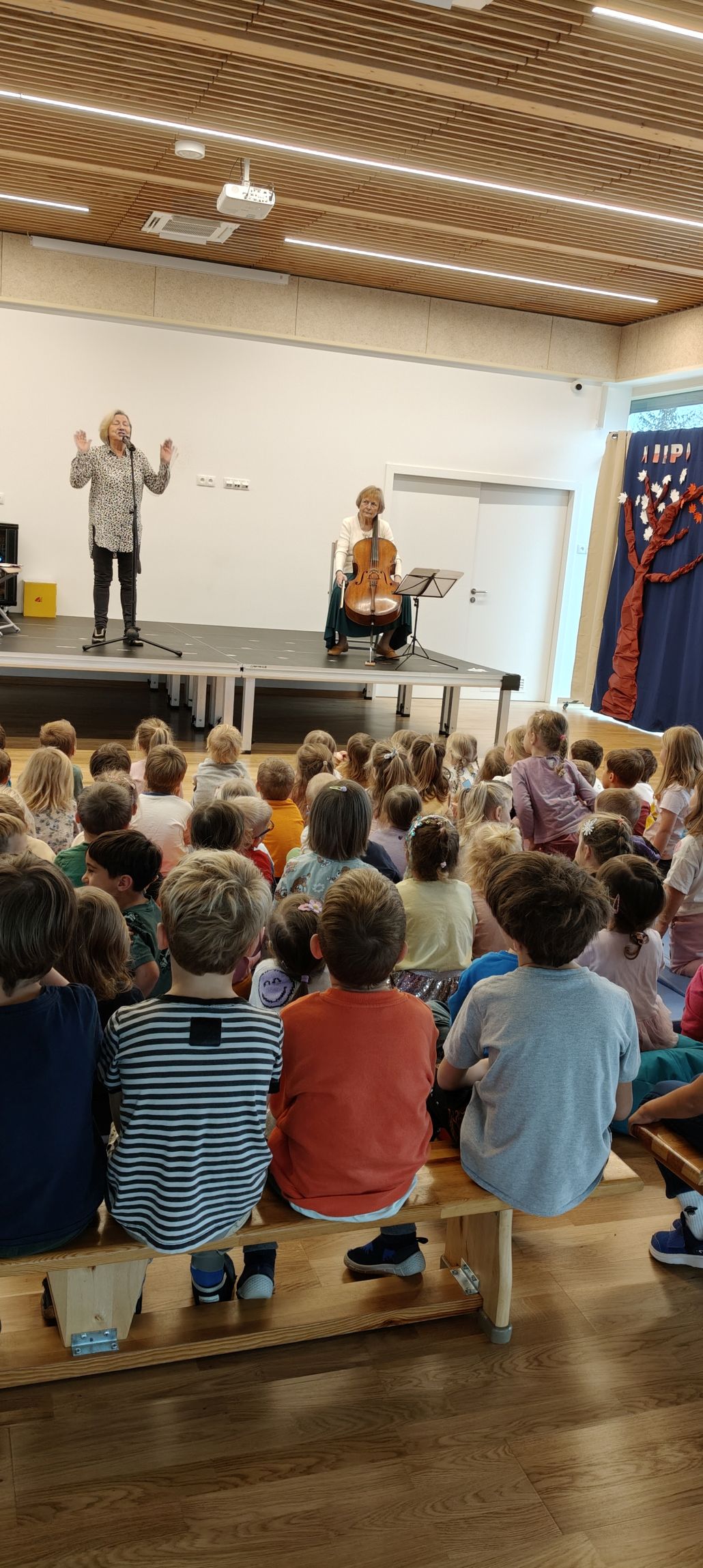 Koncert był zorganizowany pod hasłem "Pan Listopad gra na basie". Wiemy jak brzmi wiolonczela. Wspólnie z akompaniamentem wiolonczeli i pianina śpiewaliśmy piosenkę związaną z kiszeniem kapusty. Słuchaliśmy oberka i innych utworów wiolonczelowych. Koncert bardzo nam się podobał, więc czekamy na kolejne instrumenty.