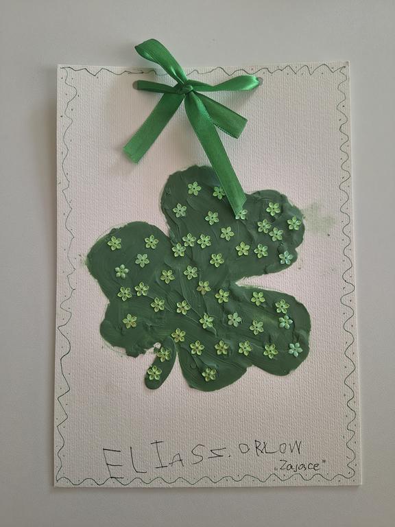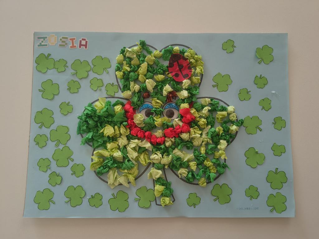 z wielką radością zapraszamy Was do holu głównego w przedszkolu, znajdują się tam prace Waszych pociech, które zdecydowały się wziąć udział konkursie "Moja szczęśliwa koniczyna". Zadaniem waszych maluchów było stworzenie unikalnej trójlistnej koniczyny- symbolu, który kojarzy się nie tylko z Irlandią ale też z harmonią i szczęściem.