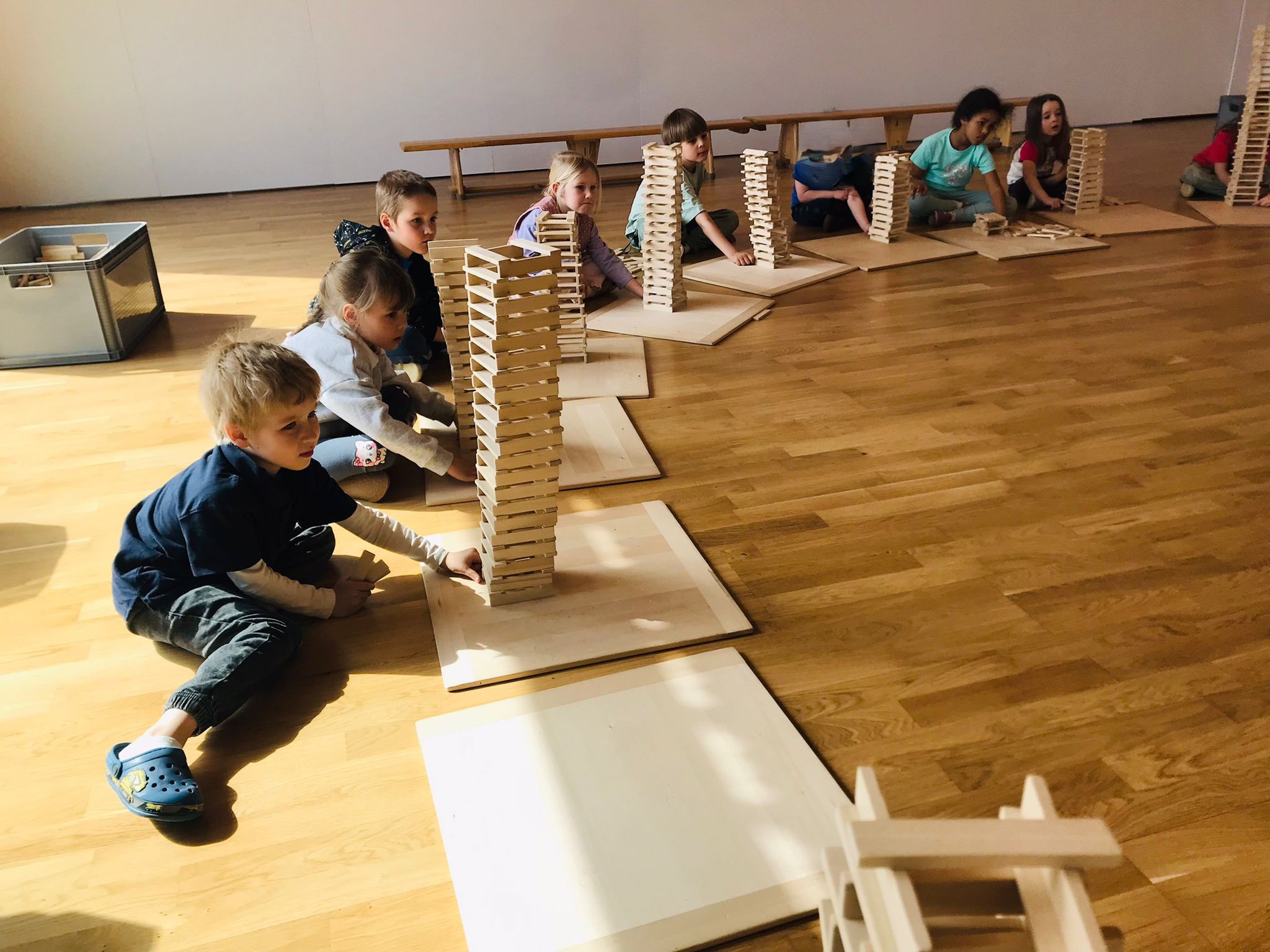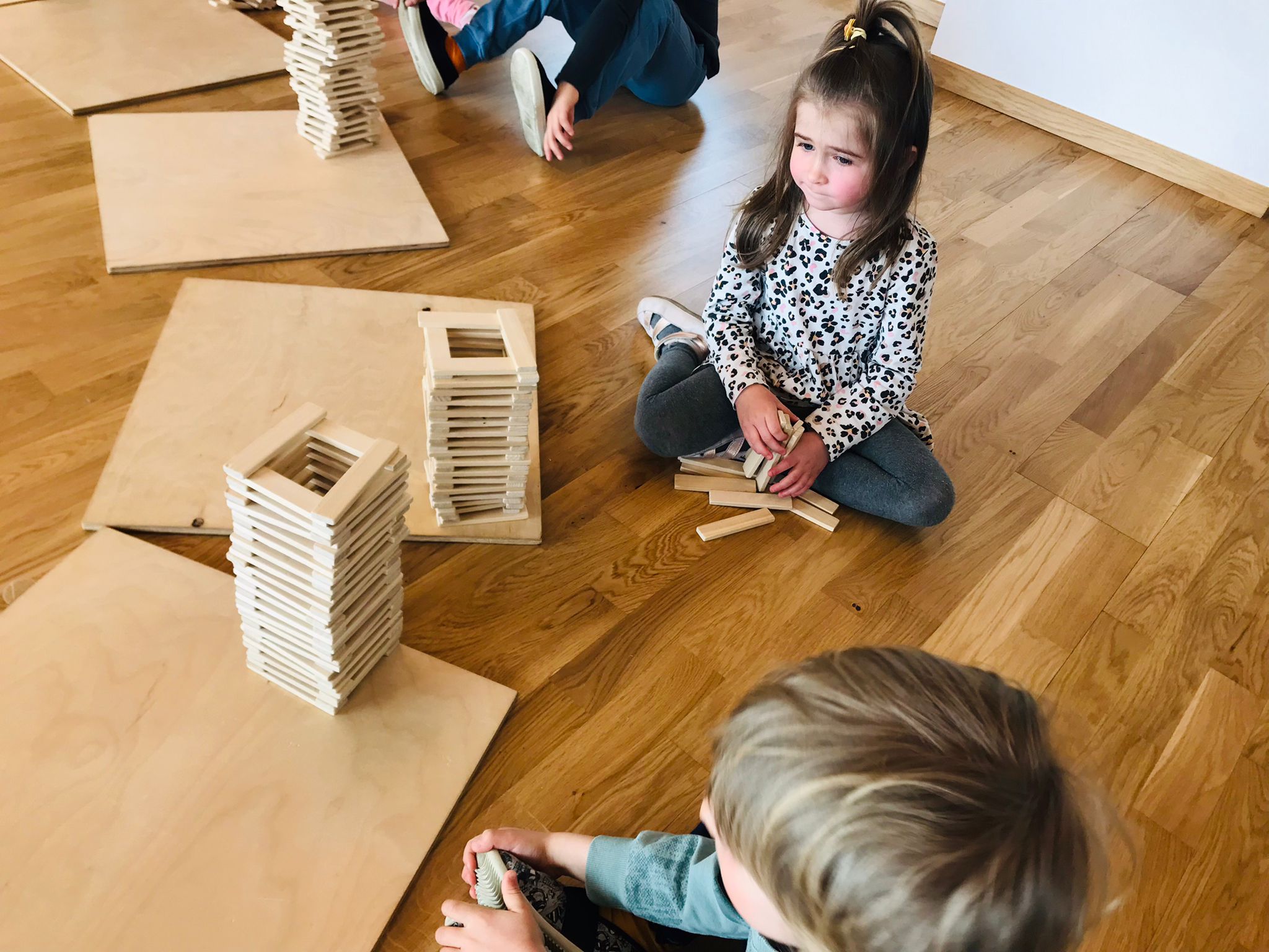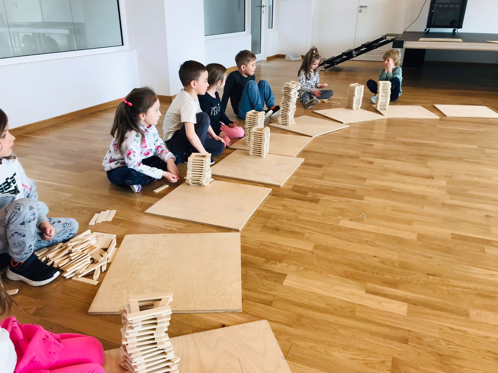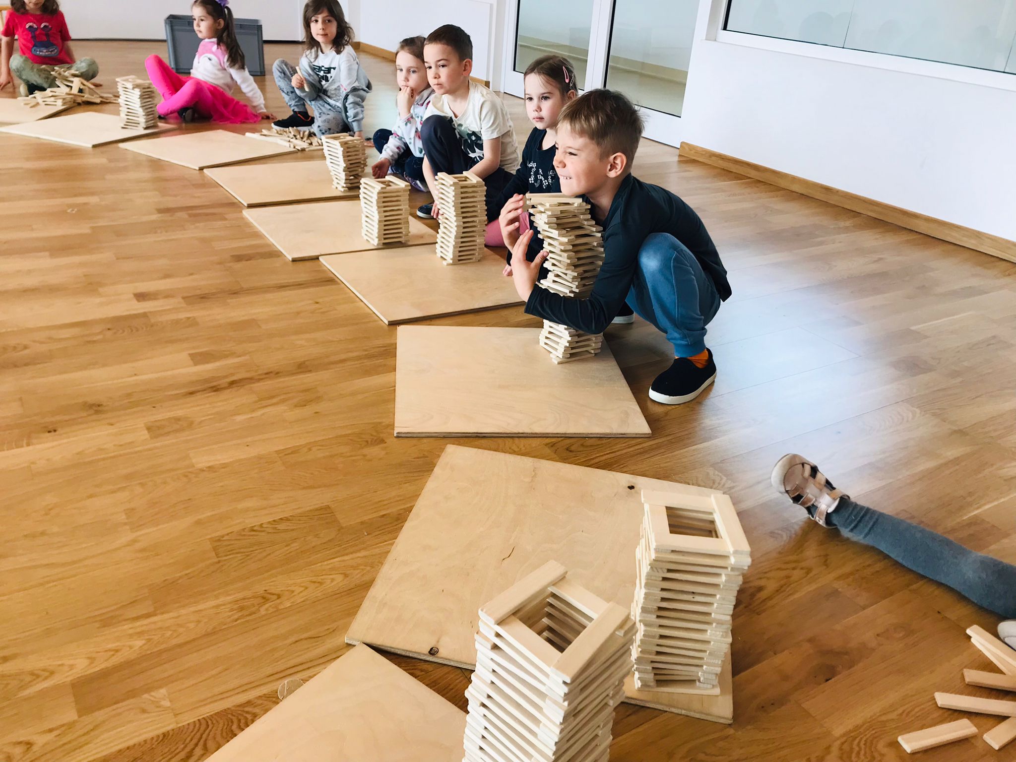 W tym tygodniu dzieci brały także udział w zajęciach „Kreatki”, podczas których kontynuujemy naukę układania drewnianych klocków, co rozwija ich wyobraźnię przestrzenną, koncentrację, cierpliwość oraz umiejętność współpracy i logicznego myślenia.