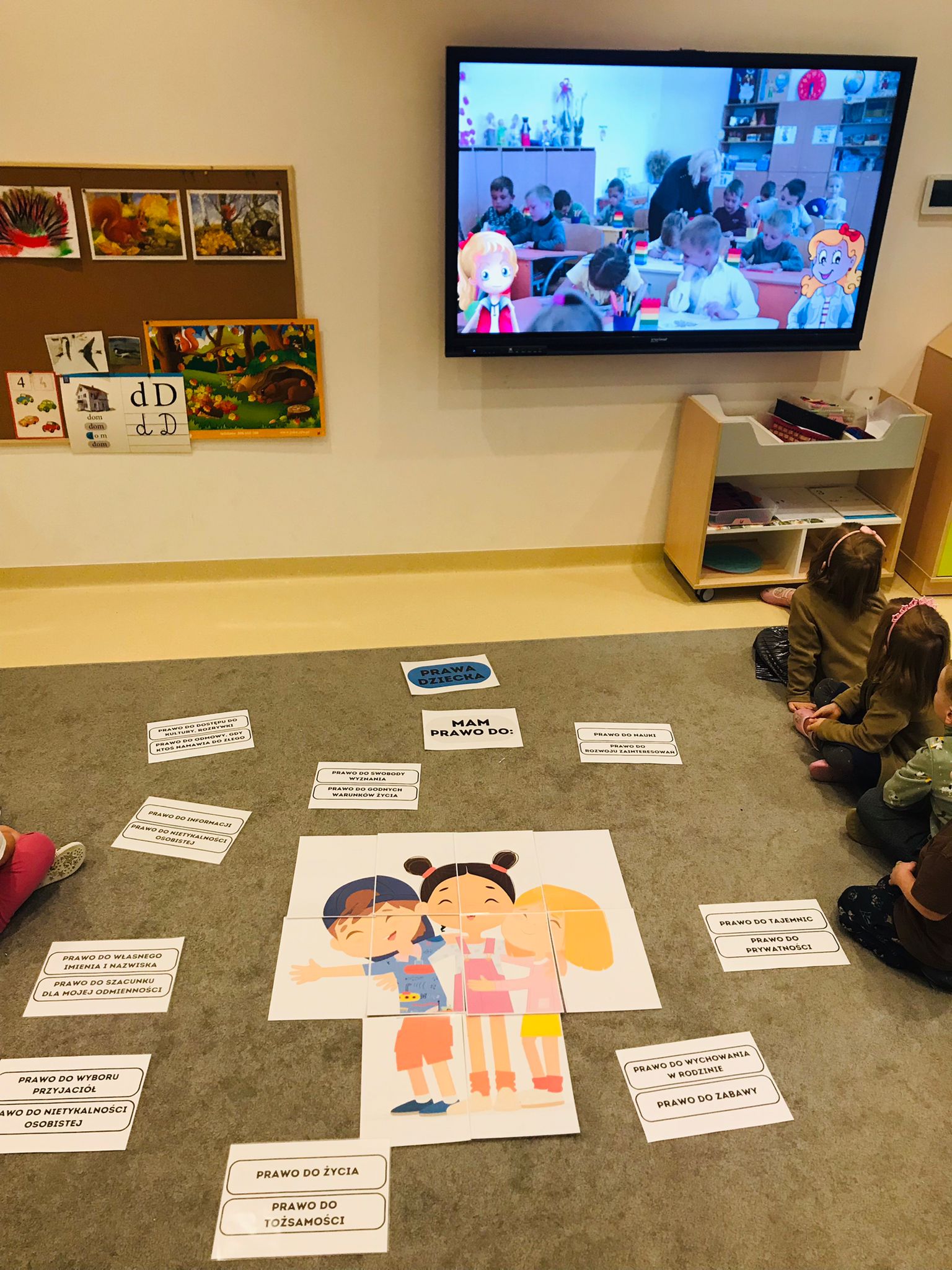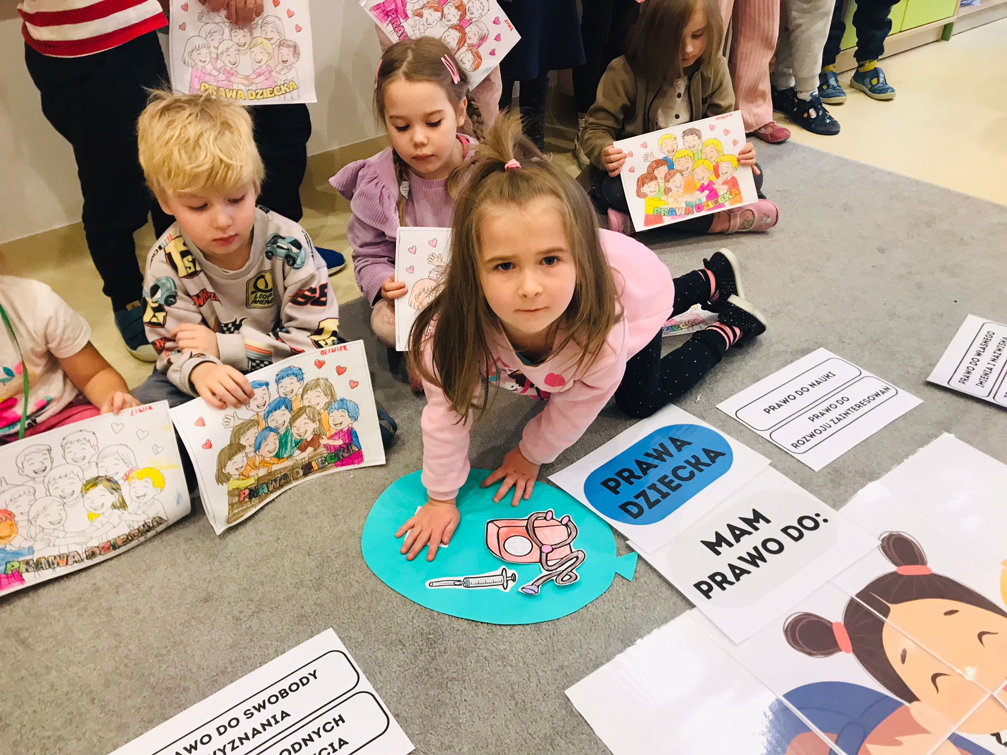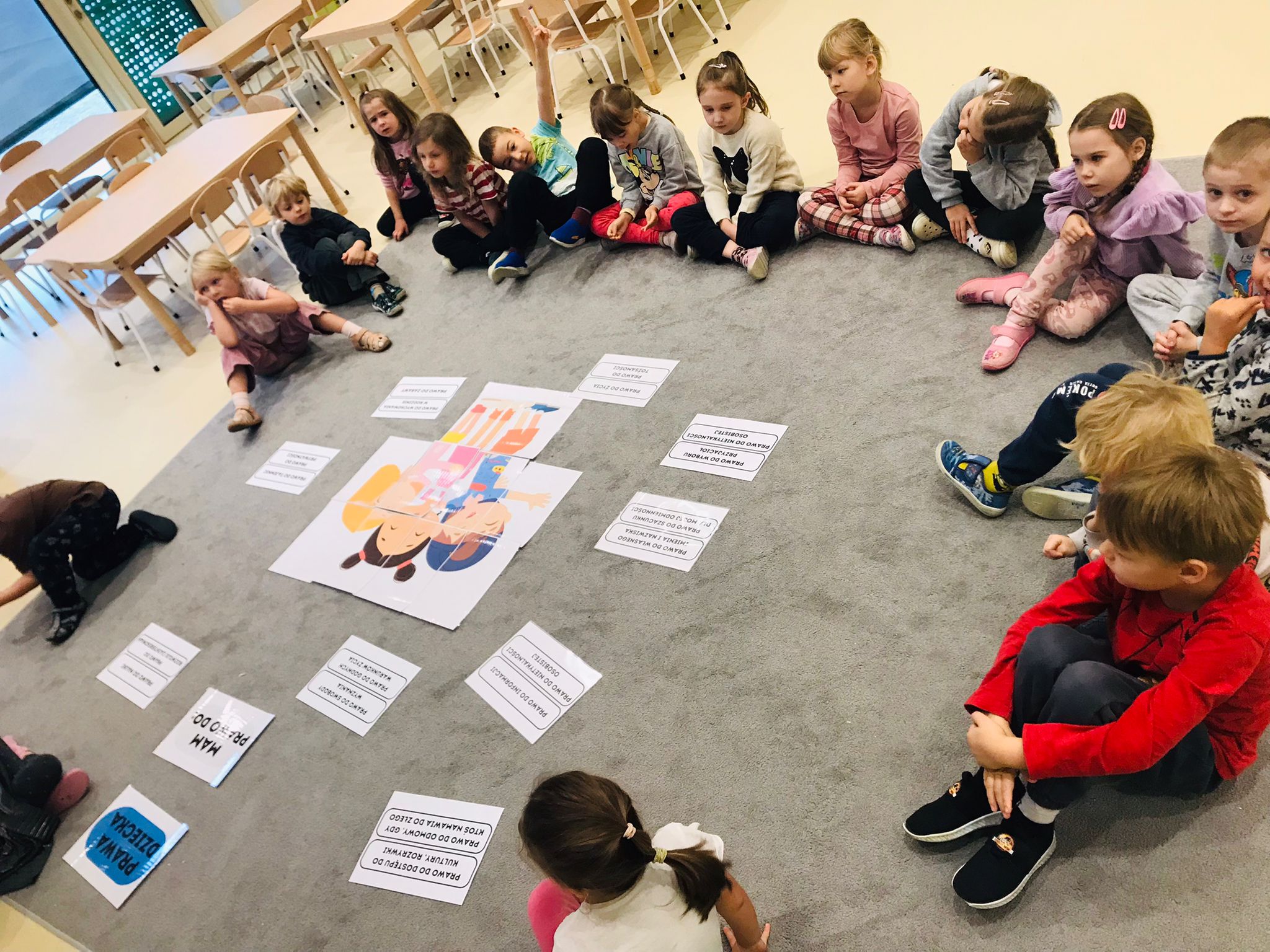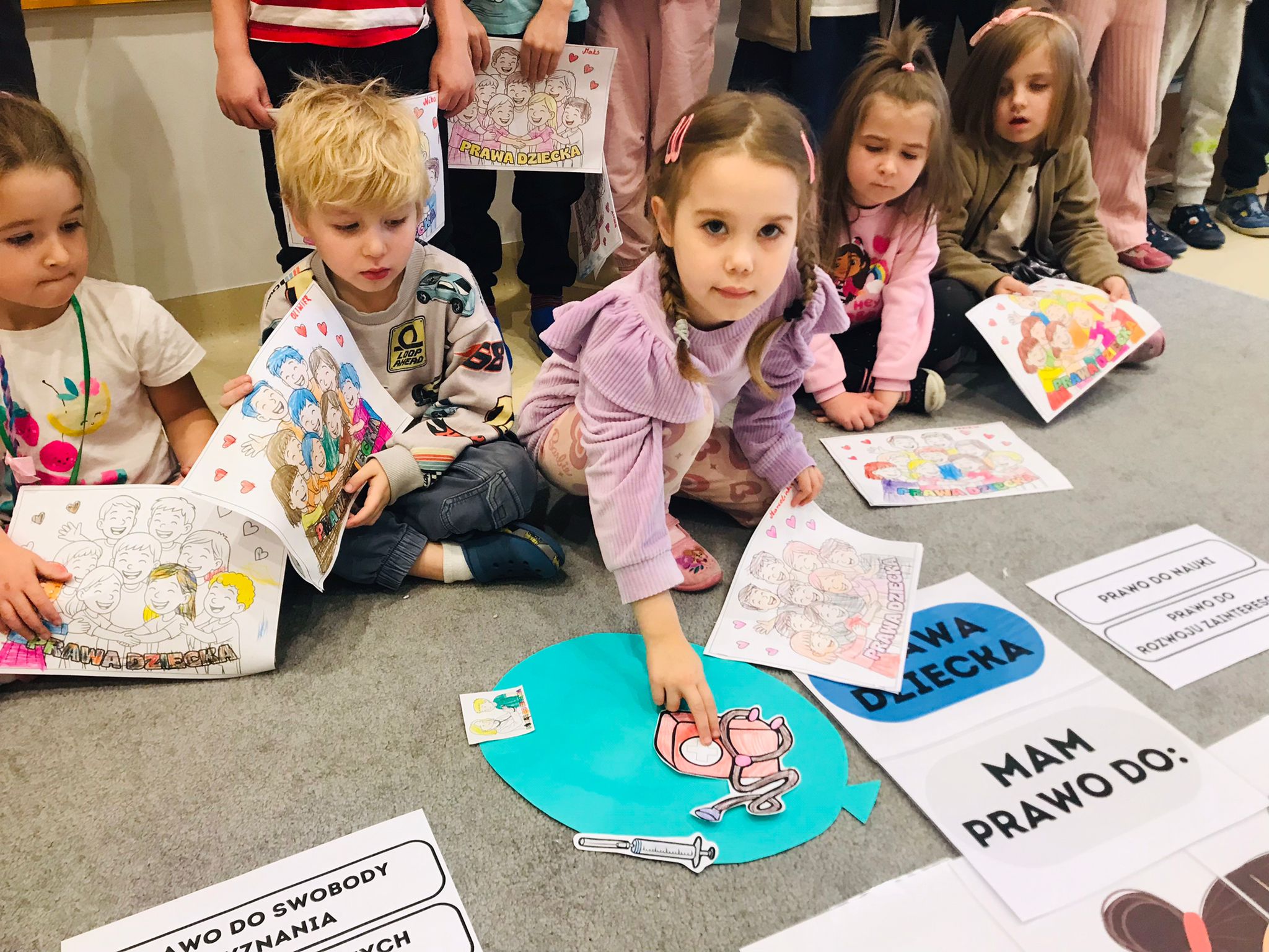 Zajęcia rozpoczęły się rozmową z dziećmi na temat najważniejszych praw, takich jak prawo do zabawy, nauki, opieki, miłości, równego traktowania oraz wyrażania własnego zdania. Dzieci dzieliły się swoimi doświadczeniami, opowiadały o sytuacjach, w których czuły się bezpieczne, kochane i wysłuchane. Rozmowa była prowadzona w sposób dostosowany do wieku przedszkolaków – poprzez przykłady, ilustracje i krótkie historyjki.