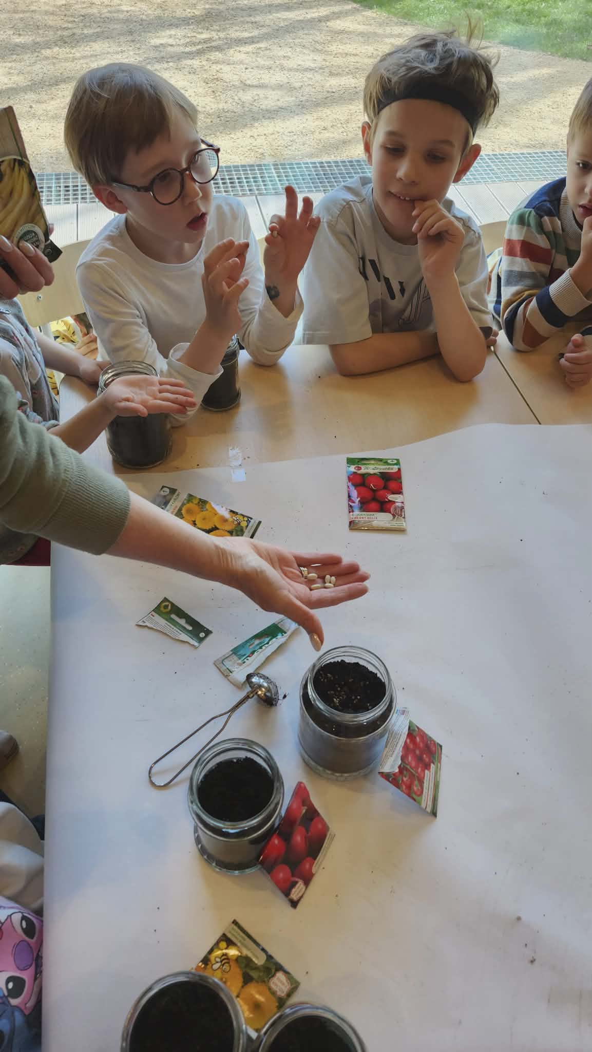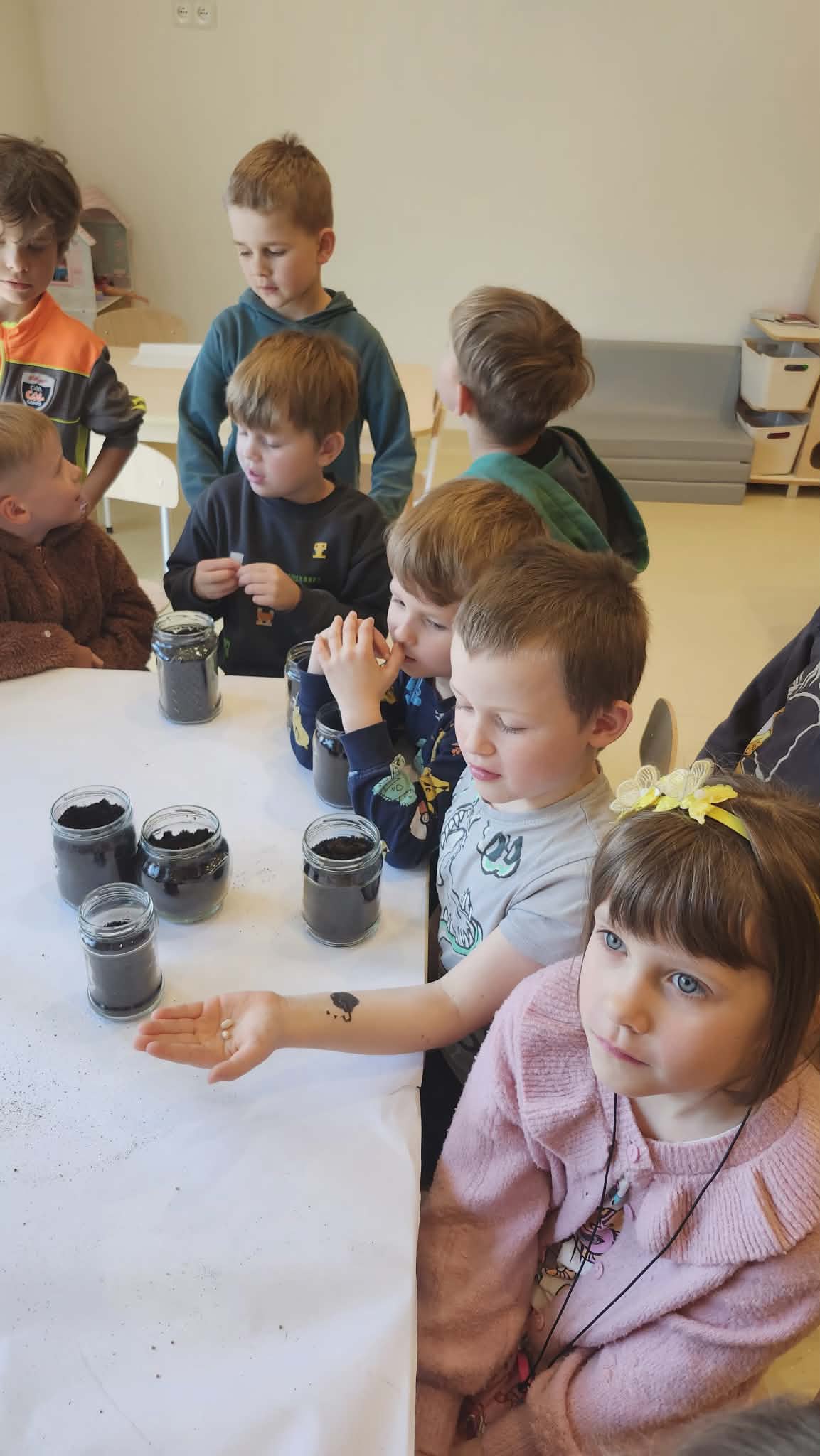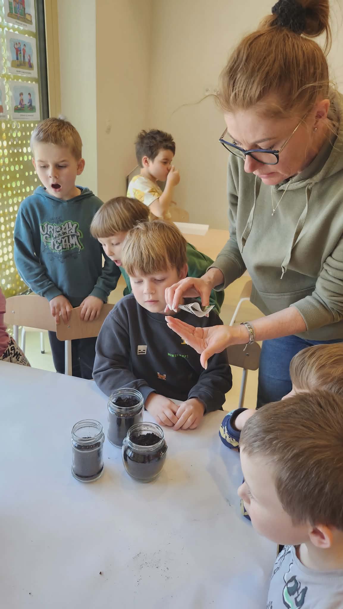 Podczas zajęć przyrodniczych w przedszkolu dzieci założyły w sali mały ogródek. Dzieci przygotowały ziemię, wysiały nasiona różnych roślin. W trakcie zajęć dowiedziały się, czego rośliny potrzebują do wzrostu oraz jak należy o nie dbać. Wszyscy z dużym zainteresowaniem i radością uczestniczyli w pracach ogrodniczych, ucząc się przez zabawę i bezpośrednie działanie.