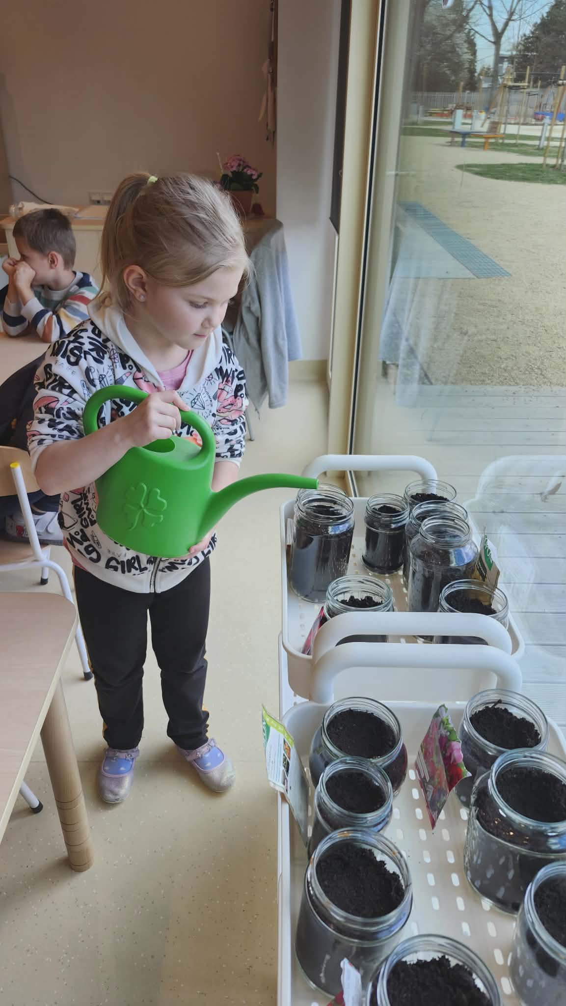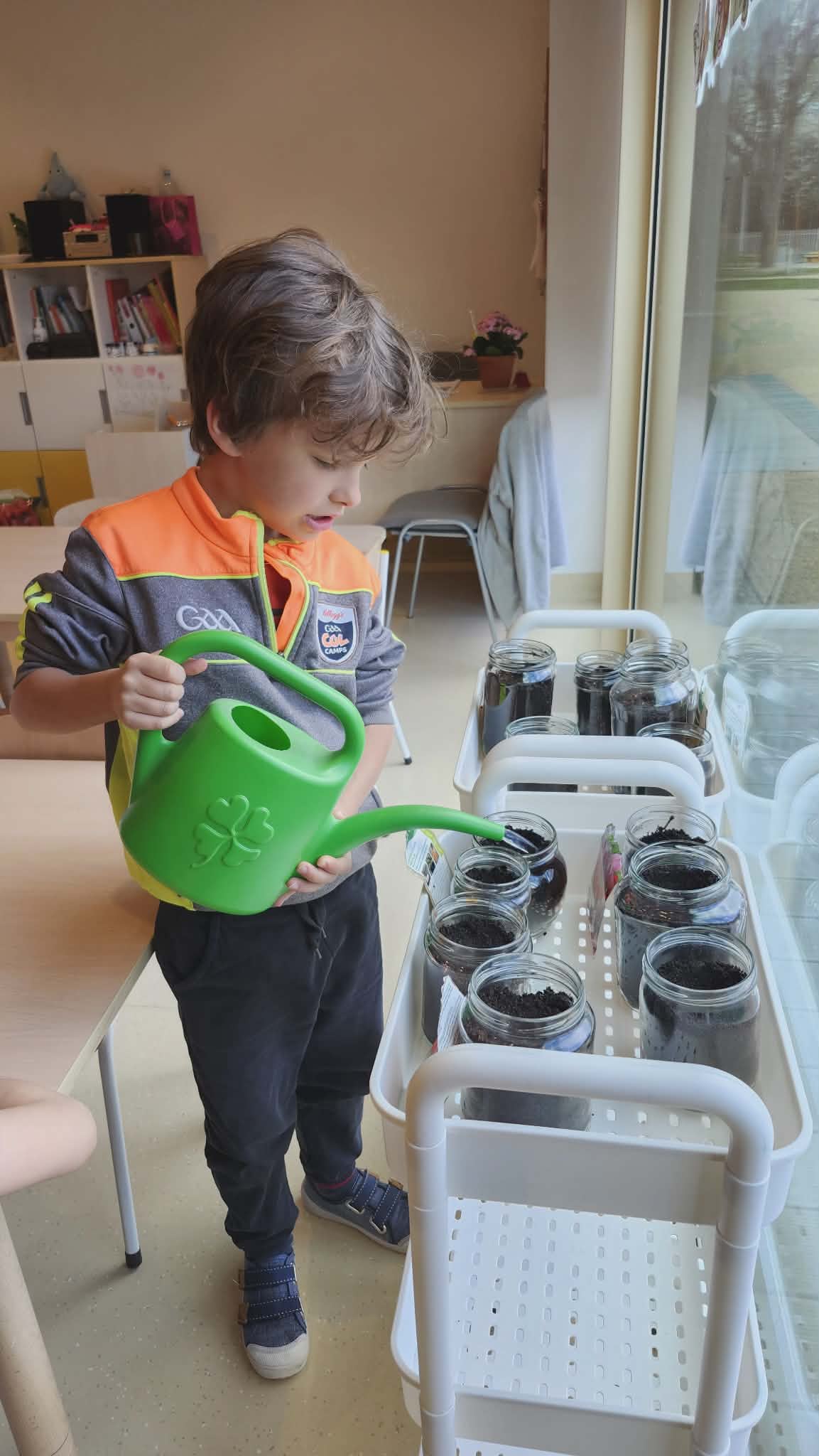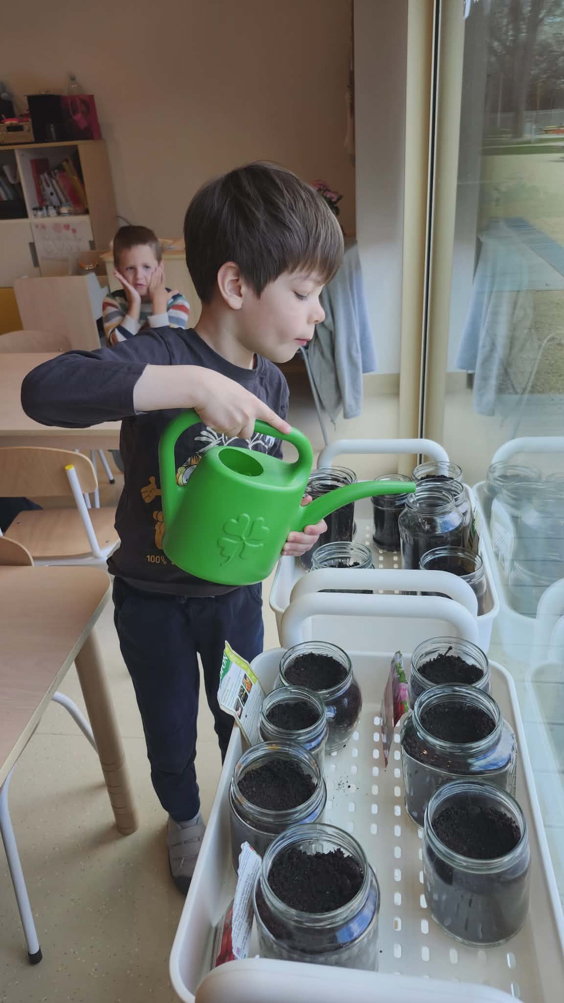 Podczas zajęć przyrodniczych w przedszkolu dzieci założyły w sali mały ogródek. Dzieci przygotowały ziemię, wysiały nasiona różnych roślin. W trakcie zajęć dowiedziały się, czego rośliny potrzebują do wzrostu oraz jak należy o nie dbać. Wszyscy z dużym zainteresowaniem i radością uczestniczyli w pracach ogrodniczych, ucząc się przez zabawę i bezpośrednie działanie.