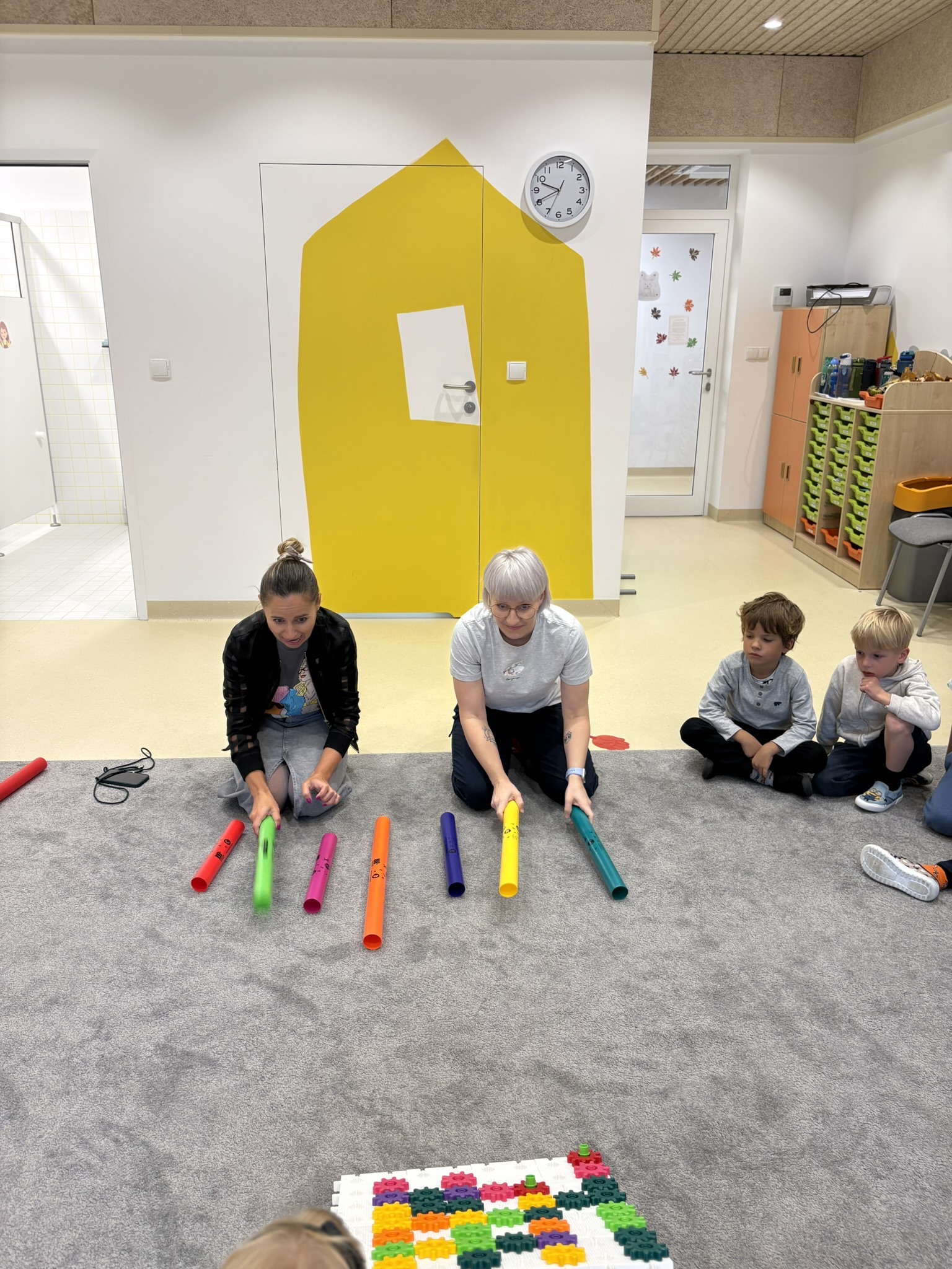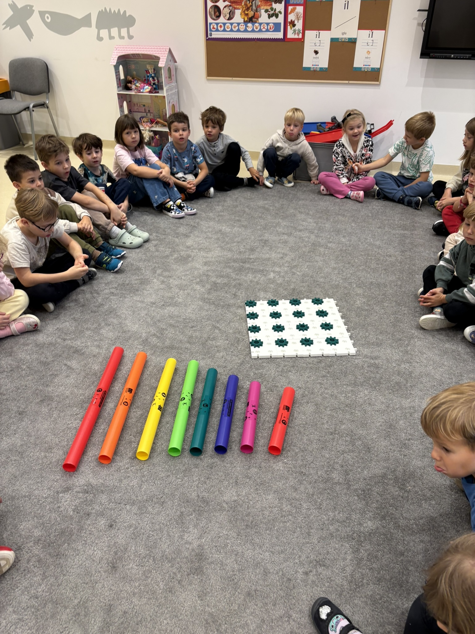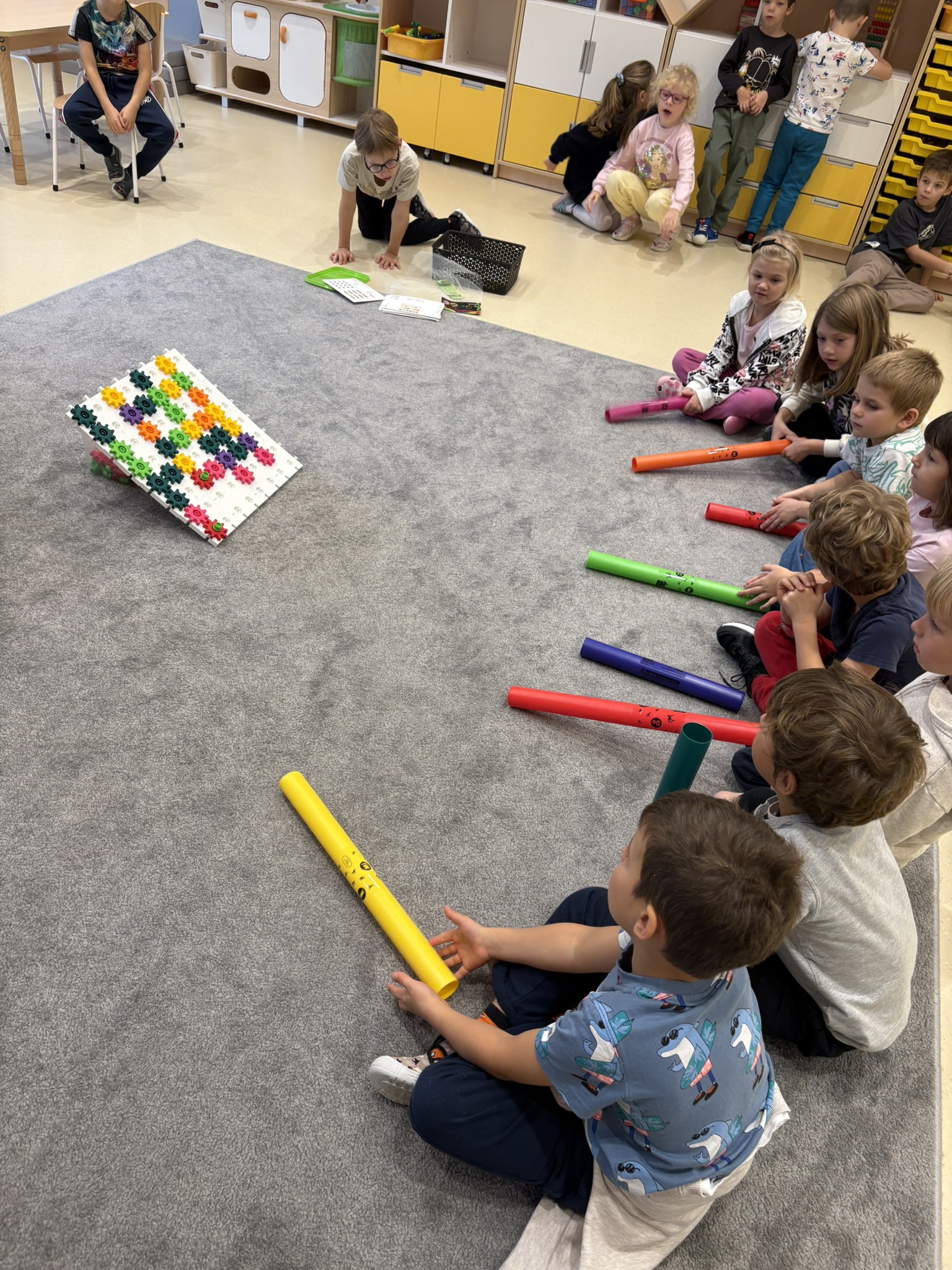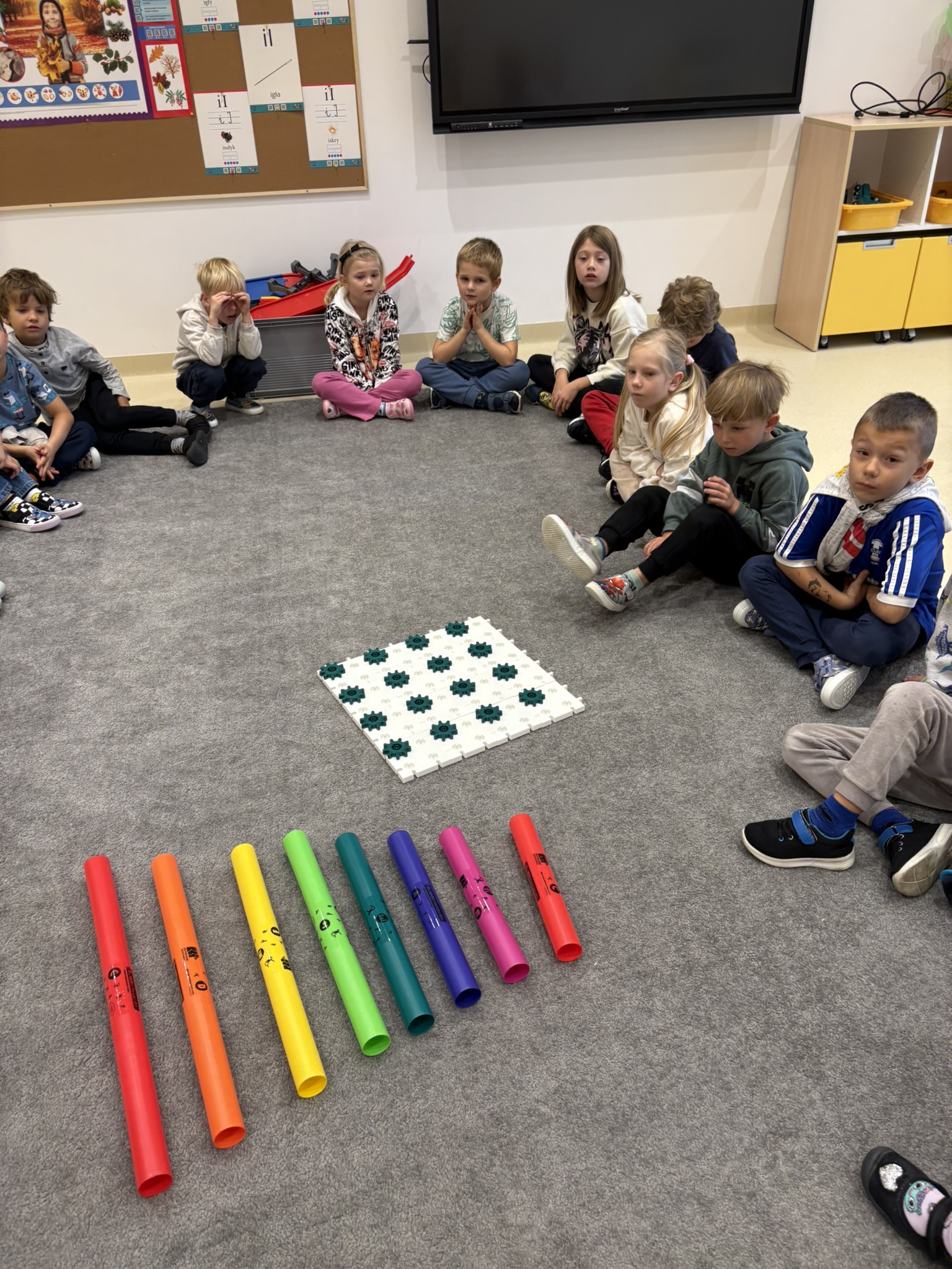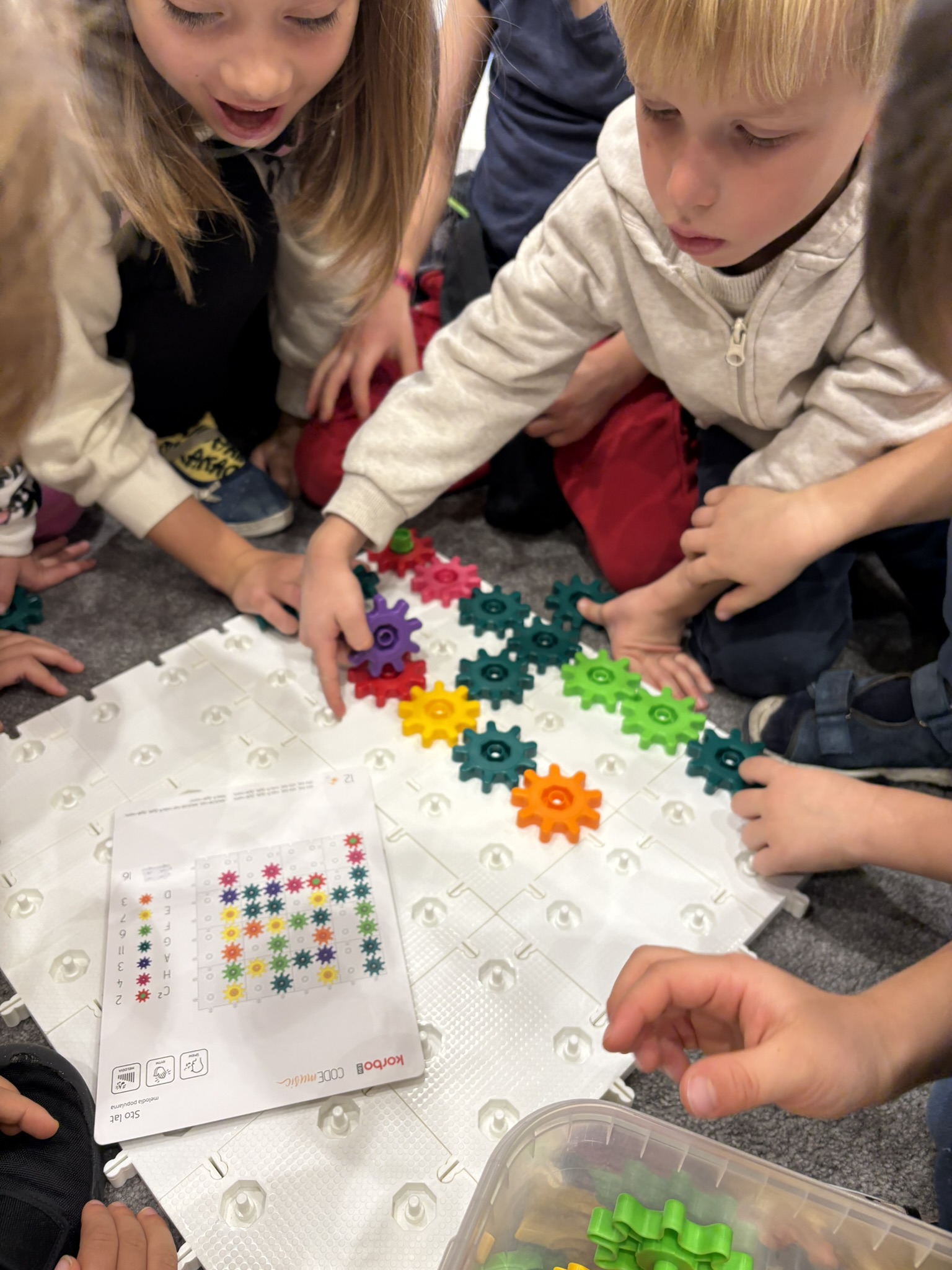 Zestaw edukacyjny Korbo Edu Code Music pozwala na naukę programowania bez użycia ekranu, rozwijając jednocześnie słuch muzyczny, logiczne myślenie i kreatywność. Dzieci uczyły się zapisywać dźwięki i rytmy przy pomocy kolorów, a następnie wspólnie je odgrywali na bum bum rurkach.