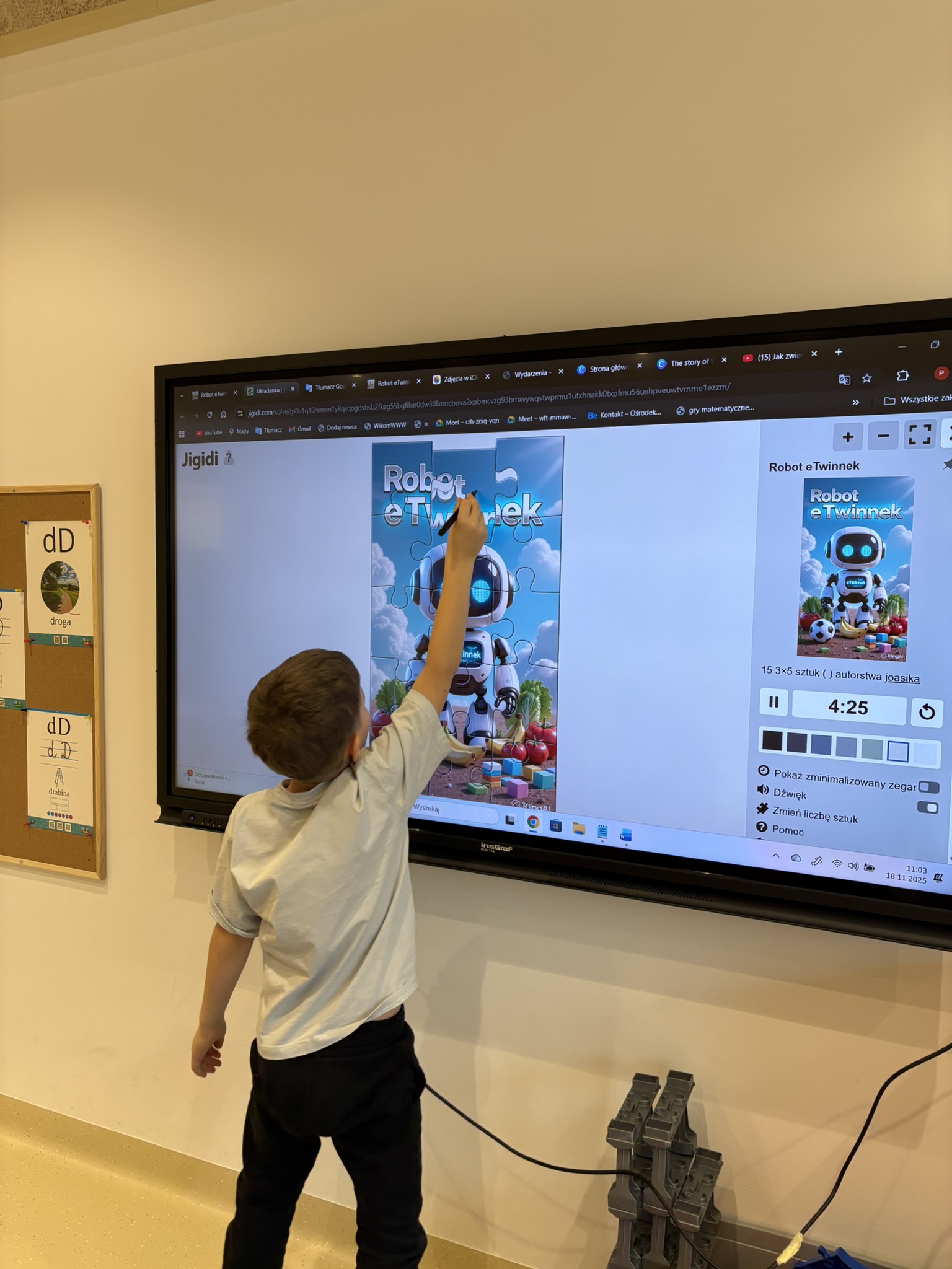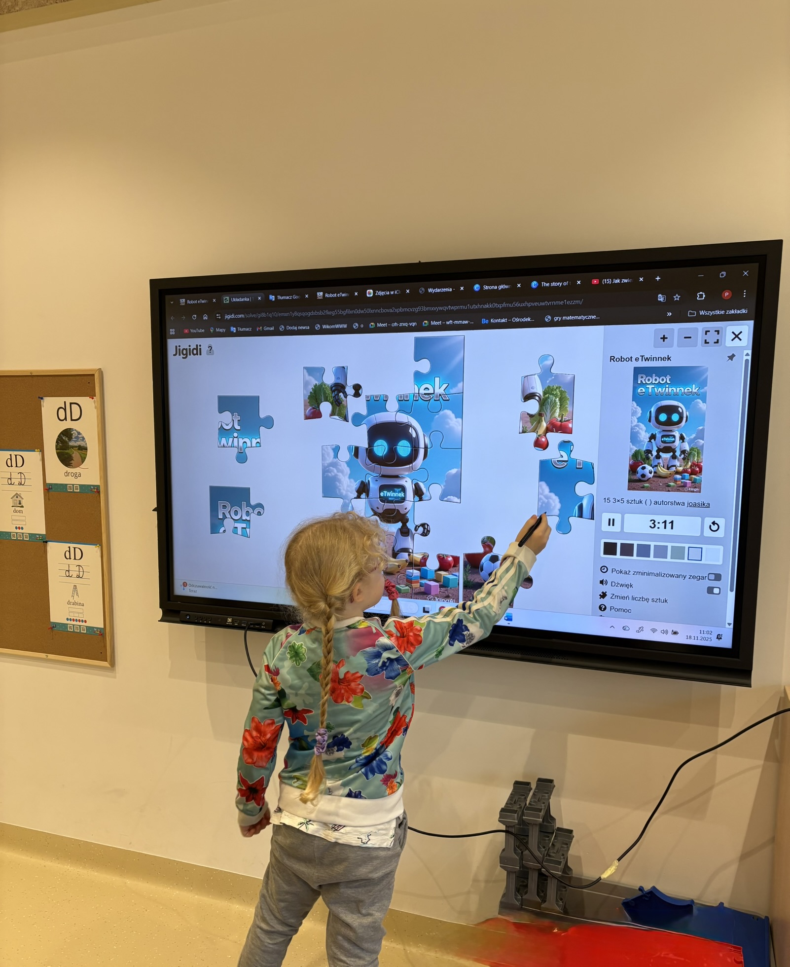 Z radością informujemy, że nasza grupa bierze udział w projekcie eTwinning pod tytułem „Robot eTwinek na tropie zdrowia”. Jest to innowacyjna, atrakcyjna dla dzieci inicjatywa, której celem jest promowanie zdrowego stylu życia oraz wspieranie dobrostanu fizycznego i psychicznego przedszkolaków. Projekt wprowadza dzieci w świat przygód sympatycznego robota eTwinka, którego zadaniem jest odnalezienie sposobów na zdrowe i szczęśliwe życie. Humor, nowoczesna forma wizualna i elementy technologii sprawiają, że edukacja przebiega naturalnie, bez moralizowania i nudy, a dzieci chętnie angażują się w kolejne aktywności.Udział w projekcie „Robot eTwinek na tropie zdrowia” to dla naszych przedszkolaków niezwykła przygoda oraz cenna lekcja samodzielności, odpowiedzialności i troski o siebie.
