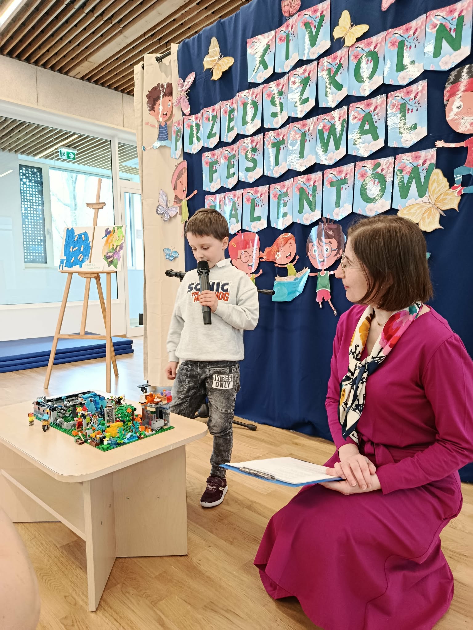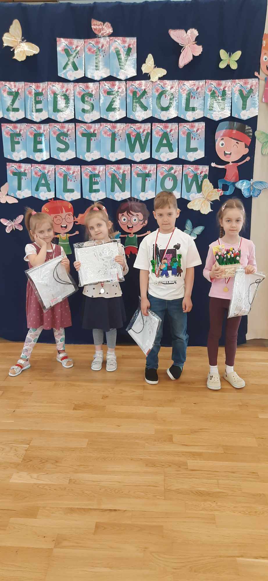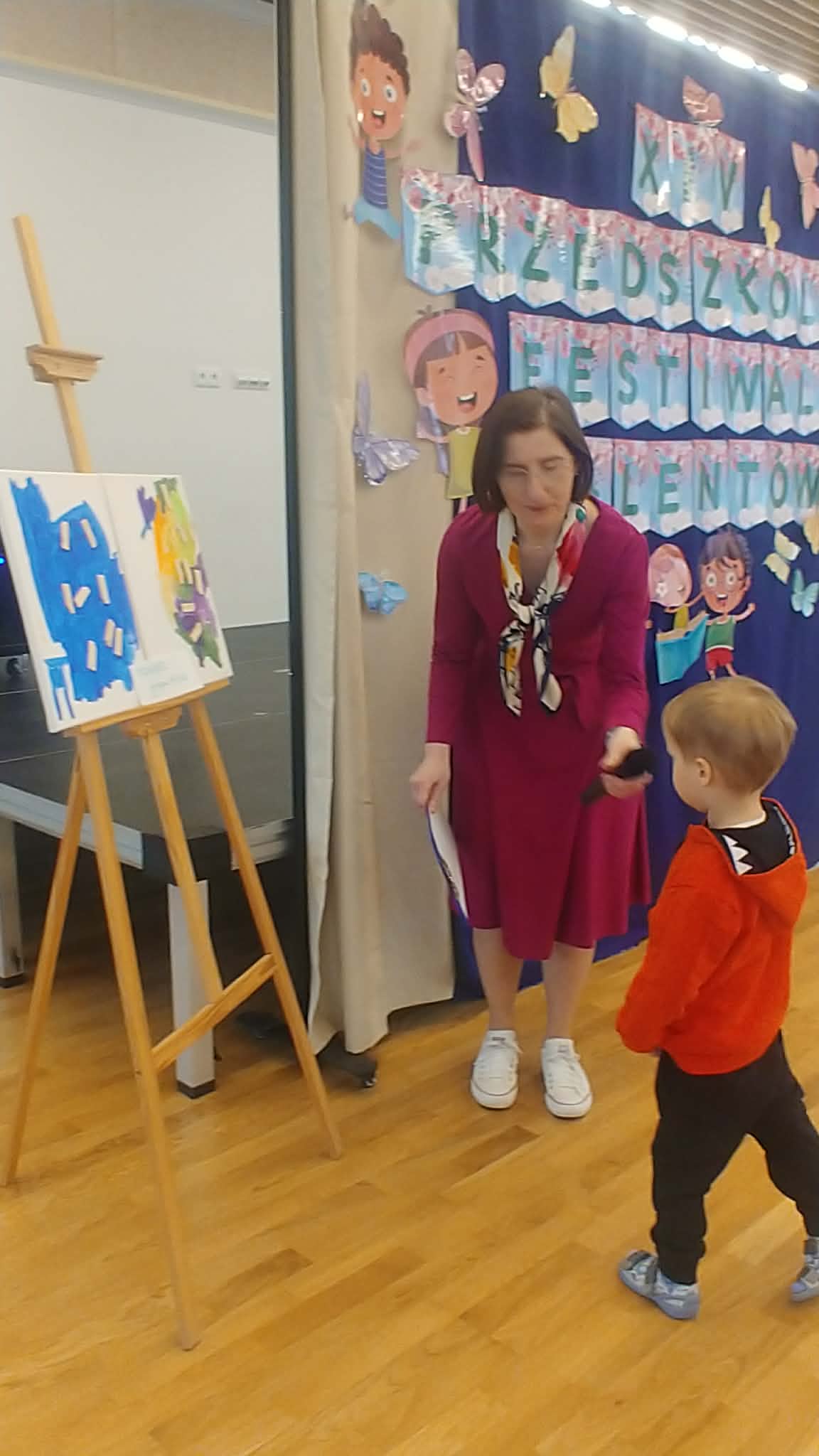 25 marca odbył się w naszym przedszkolu XIV Festiwal Talentów. Do tradycji naszego Przedszkola weszło już powitanie wiosny występami artystycznymi utalentowanych dzieci. Widownia złożona z przedszkolaków, rodziców, nauczycielek i zaproszonych gości gromko oklaskiwała występy. Do udziału w Festiwalu uczestnicy zgłaszali się sami, lub w ich imieniu czynili to rodzice oraz nauczycielki. Impreza daje przestrzeń do artystycznej ekspresji dzieciom, które lubią występować i odnajdują się na scenie. Liczna publiczność zgromadzona w sali widowiskowej przedszkola podziwiała występy wokalne, recytację, taniec, grę na instrumentach. Dzieci z uwagą i zainteresowaniem obserwowały kolegę rozpoznającego flagi dalekich krajów i pokazującego położenie ich na mapie. Ważnym elementem Festiwalu, była jak co roku wystawa prac plastycznych i konstrukcyjnych z wykorzystaniem rozmaitych technik.