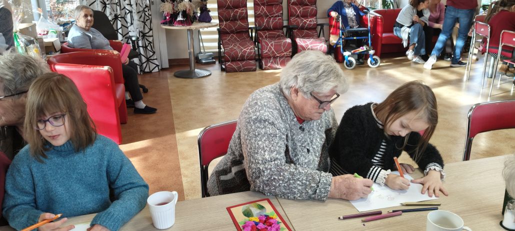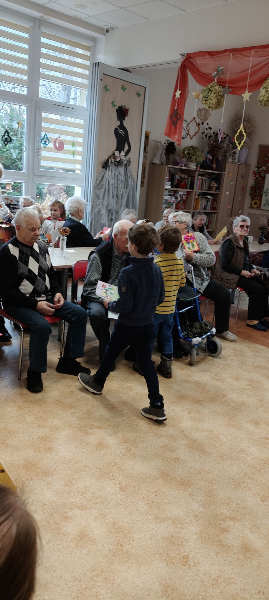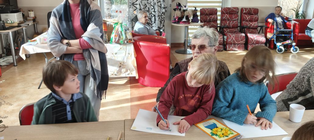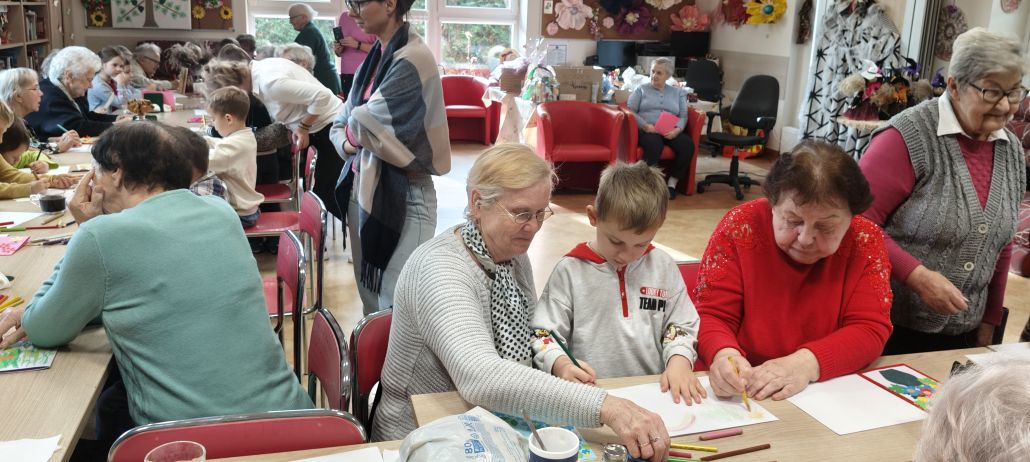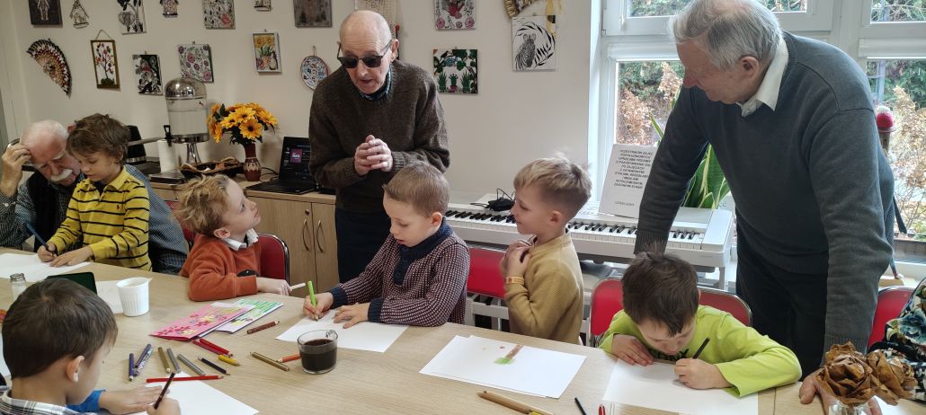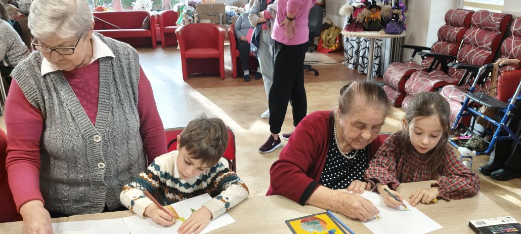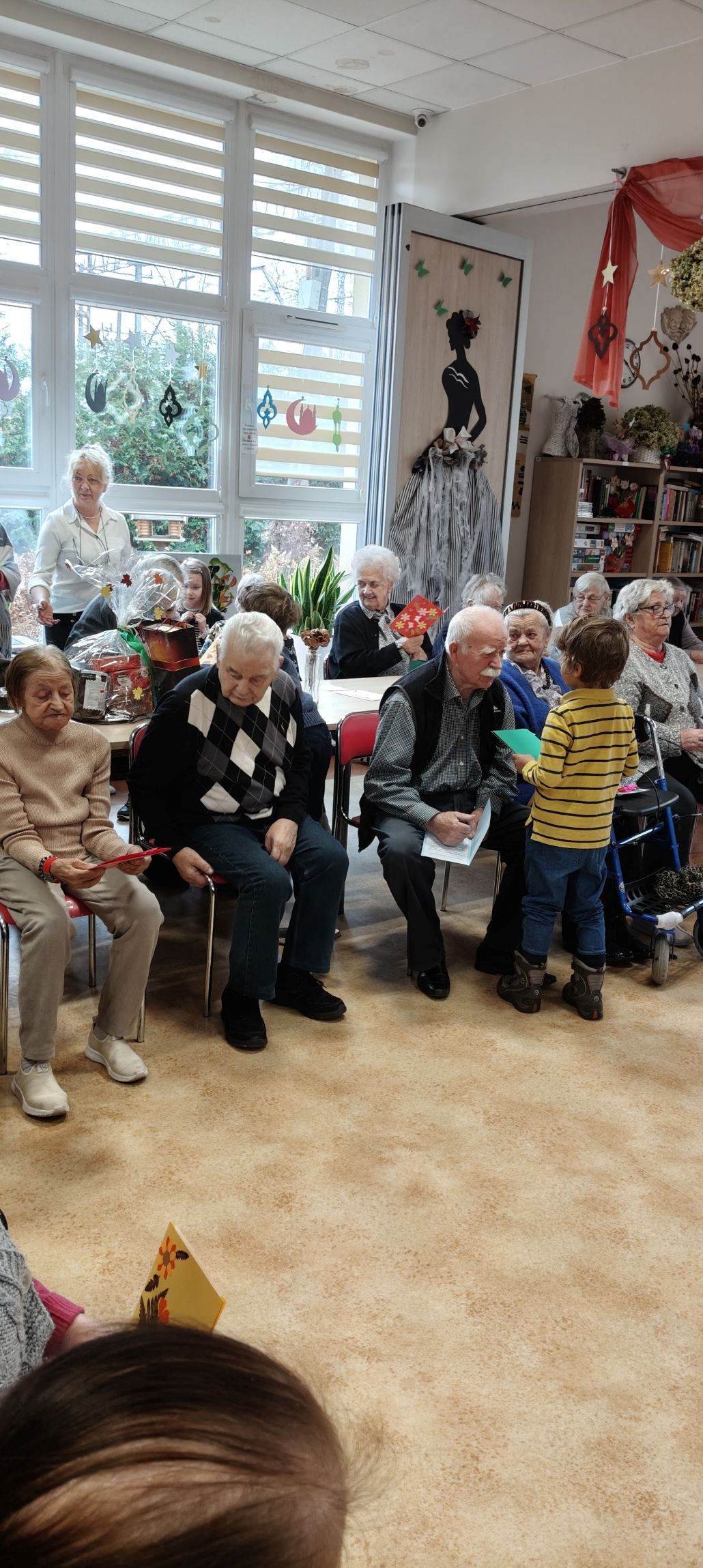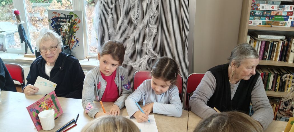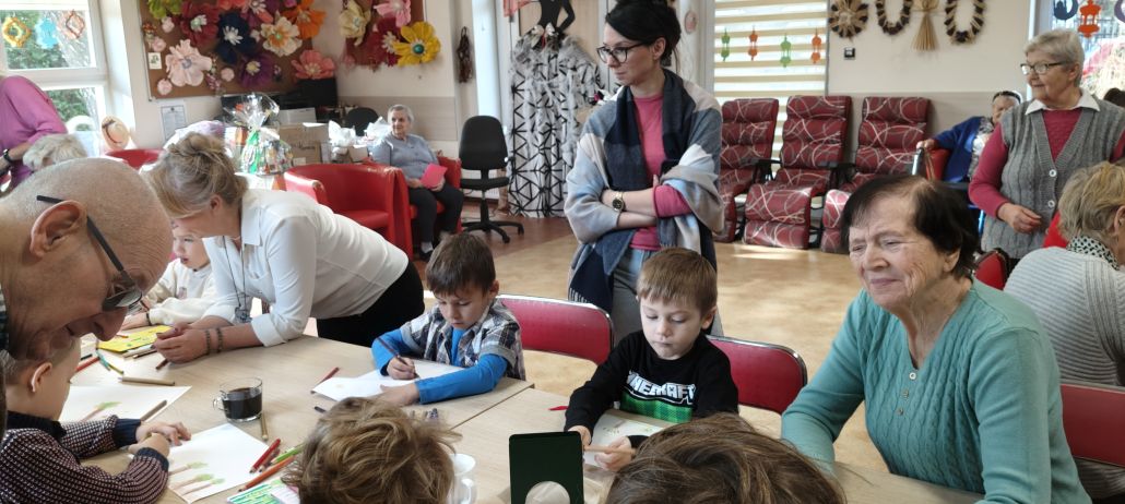 Grupa Tygryski wybrała się na wycieczkę do Dziennego Domu Seniora w Komorowie. Dzieci wspólnie spędziły czas z osobami starszymi, dzięki czemu nawiązały relacje międzypokoleniowe. Przedszkolaki zaprezentowały swoje umiejętności taneczne przedstawiając fragment występu z okazji Dnia Niepodległości. Występ wywołał wzruszenie wśród Seniorów. Wspólnie z Seniorami dzieci rysowały rysunki przedstawiające jesienną porę roku. Prace były barwne i obfitowały w wiele szczegółów, o których chętnie opowiadali Seniorzy dzieląc się swoimi wspomnieniami z przeszłości. To był bardzo mile spędzony czas.