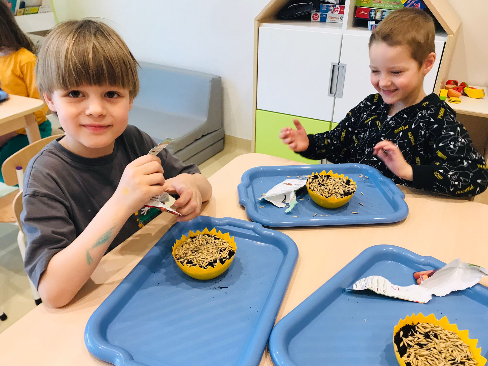 W ostatnim tygodniu przed Świętami Wielkanocnymi grupa „Jeżyki” aktywnie przygotowywała się do ich obchodów. Dzieci nie tylko poznawały tradycje wielkanocne w teorii, ale także miały okazję doświadczyć ich w praktyce. Wspólnie piekły babeczki oraz siały owies, ucząc się poprzez zabawę i działanie.