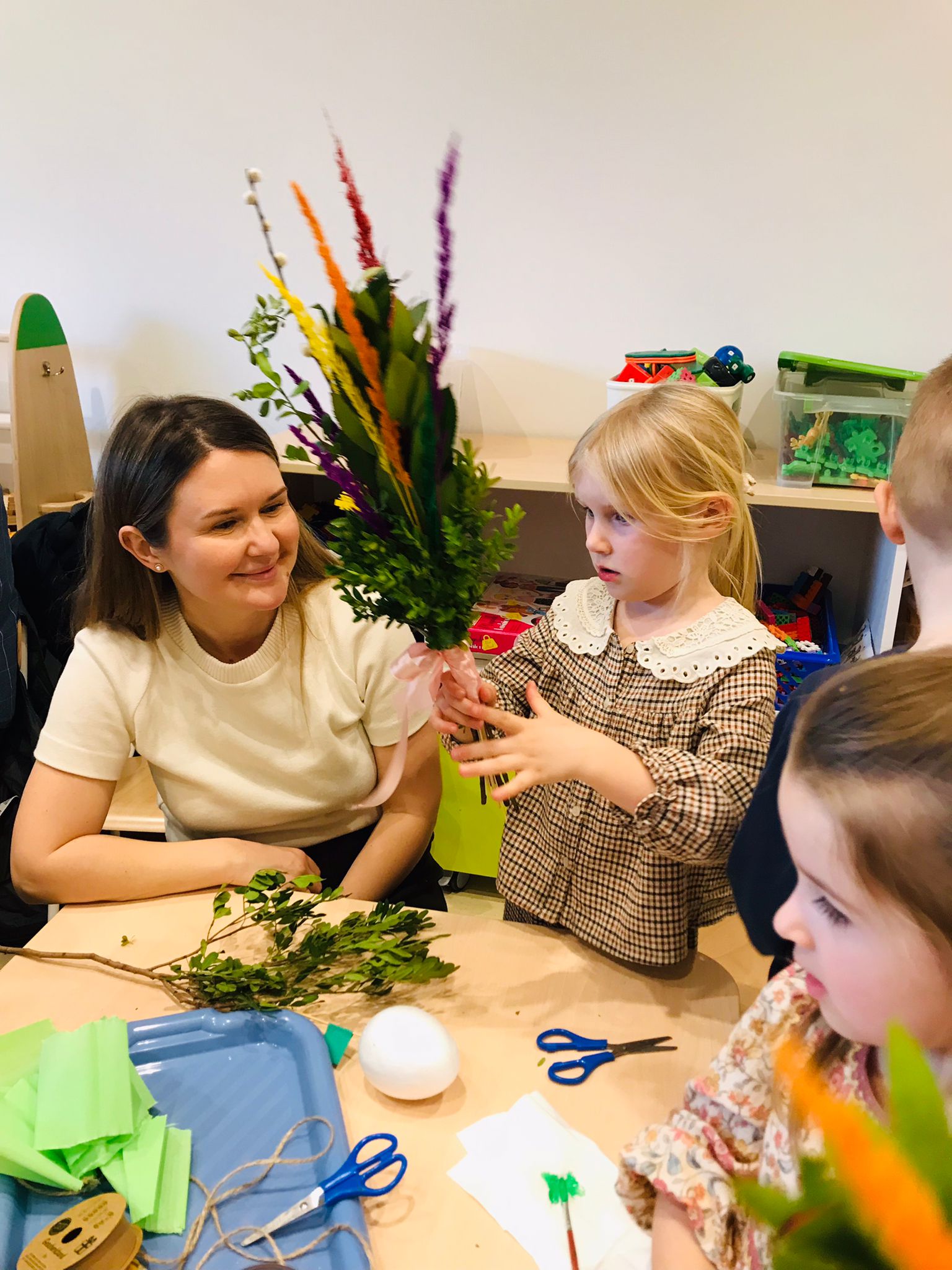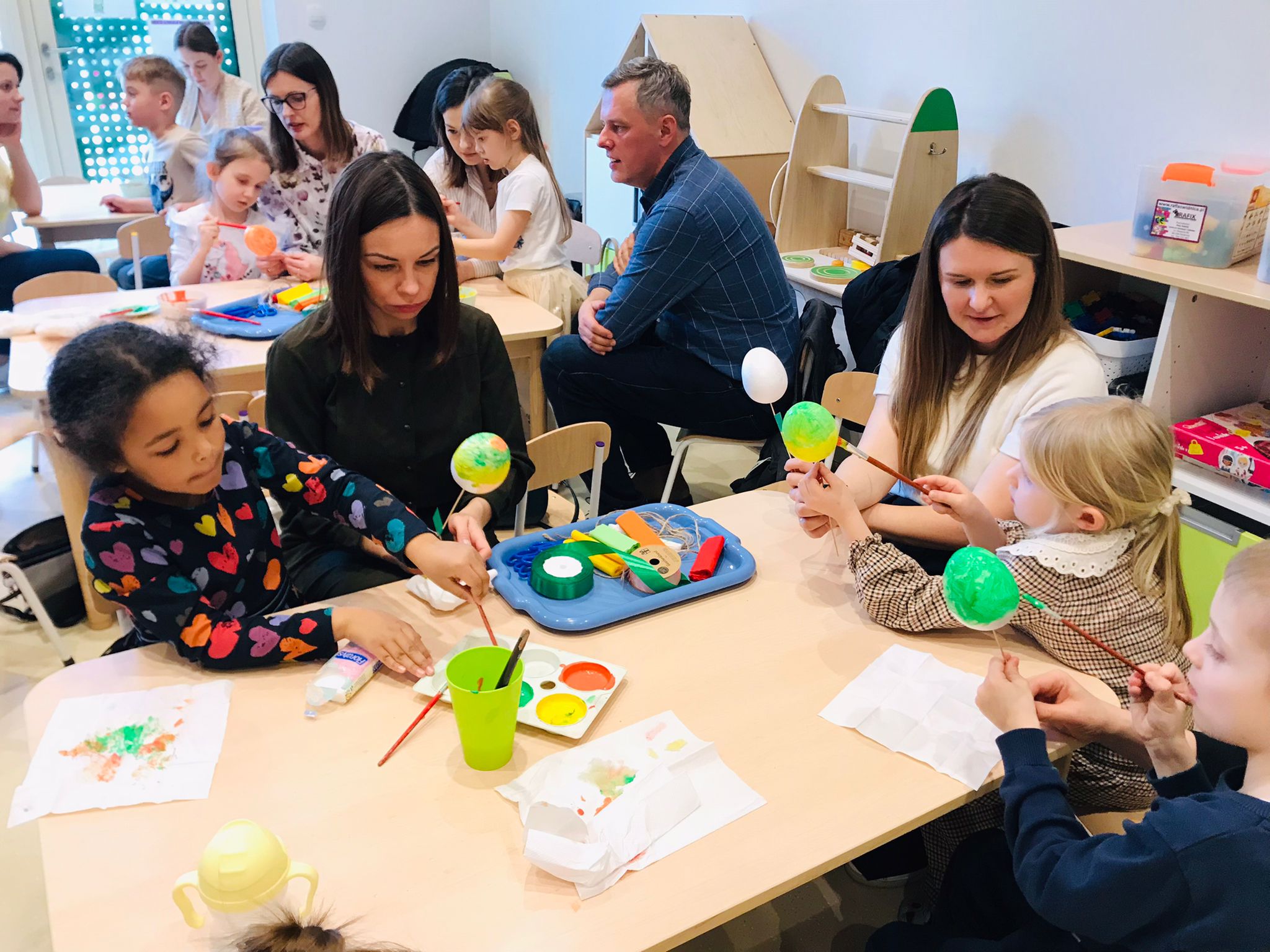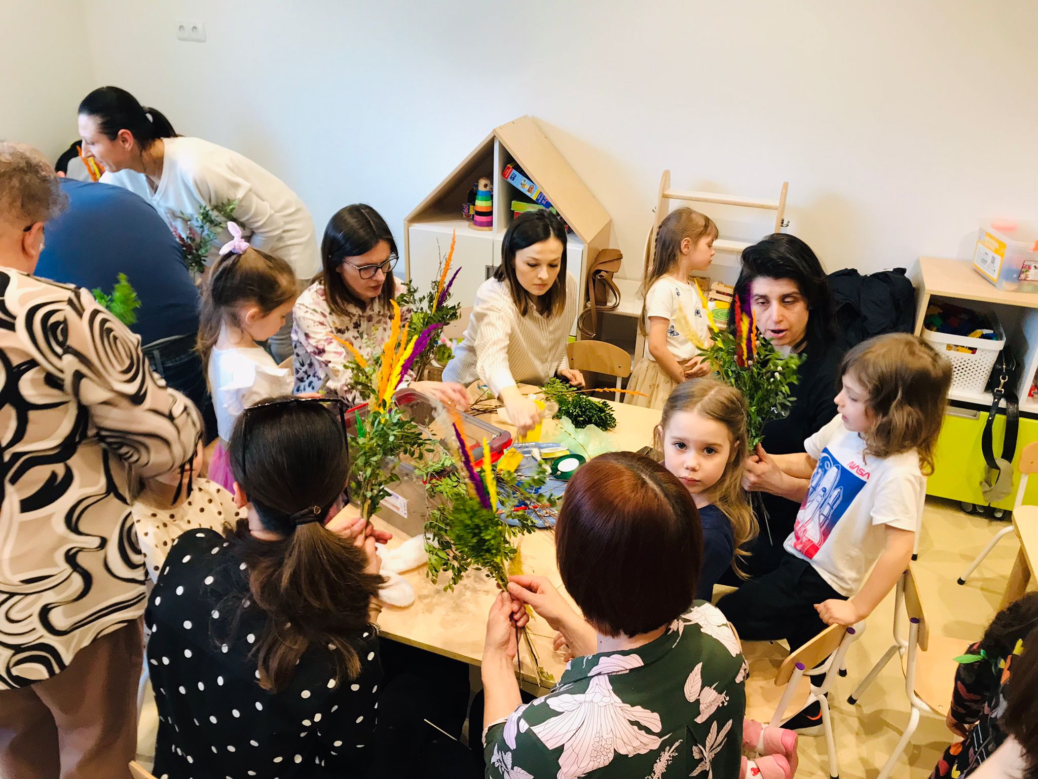 W marcu przygotowania do Świąt Wielkanocnych zapoczątkowaliśmy warsztatami wielkanocnymi z udziałem rodziców. Podczas spotkania dzieci wspólnie z bliskimi wykonywały palmy oraz różnorodne ozdoby świąteczne. Był to wyjątkowy czas integracji, kreatywności i radosnej współpracy.
