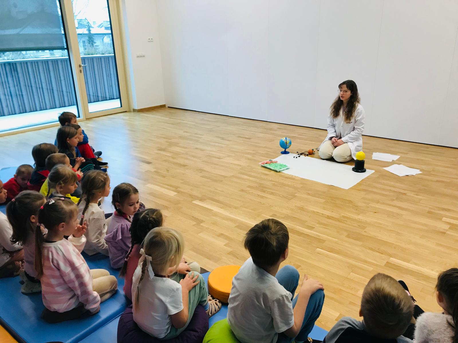Dzieci poznały również pojęcie grawitacji – dowiedziały się, dlaczego wszystko „trzyma się” Ziemi i co sprawia, że planety krążą wokół Słońca. Prowadząca wyjaśnili także, na czym polega obrót Ziemi wokół własnej osi oraz okrążanie Słońca, dzięki czemu dzieci zrozumiały, skąd biorą się dzień i noc oraz jak powstają pory roku.