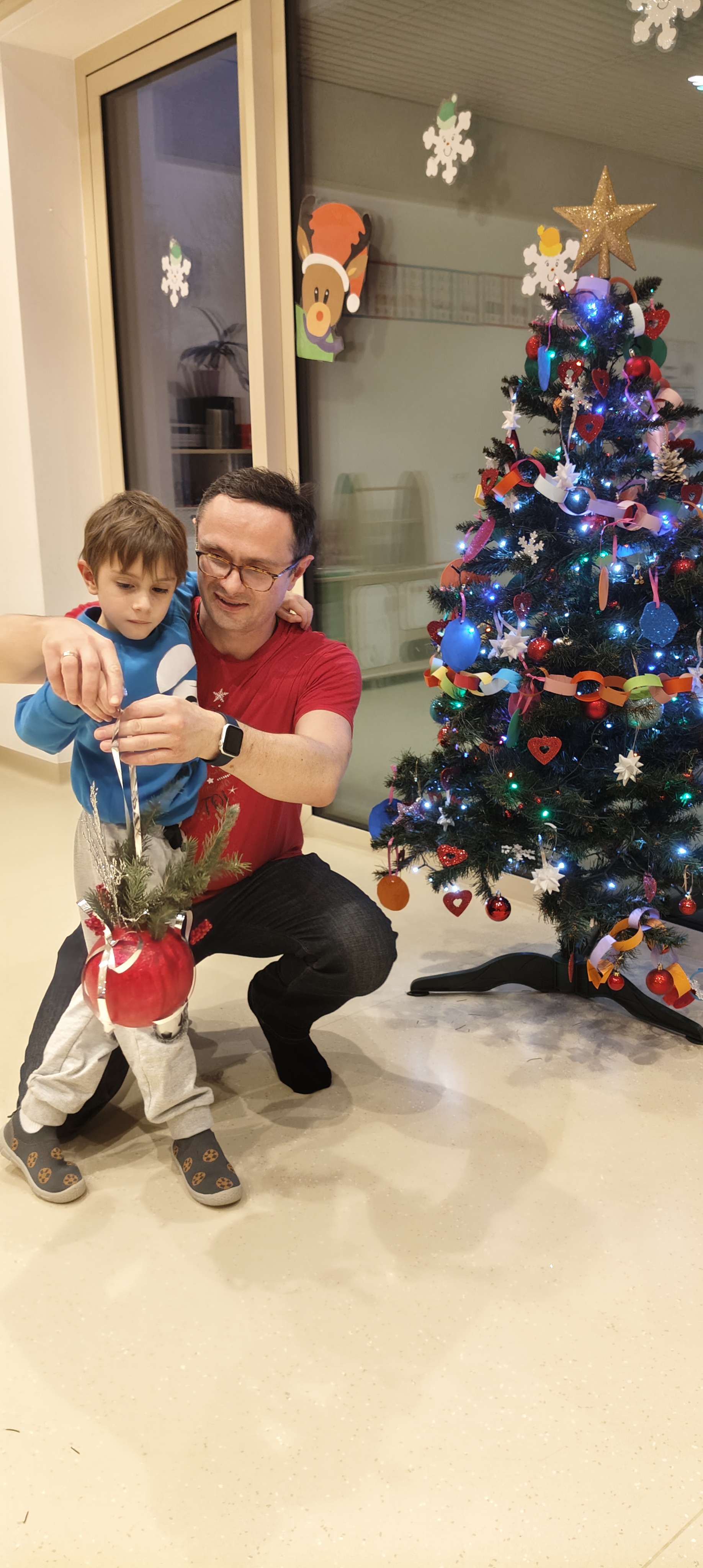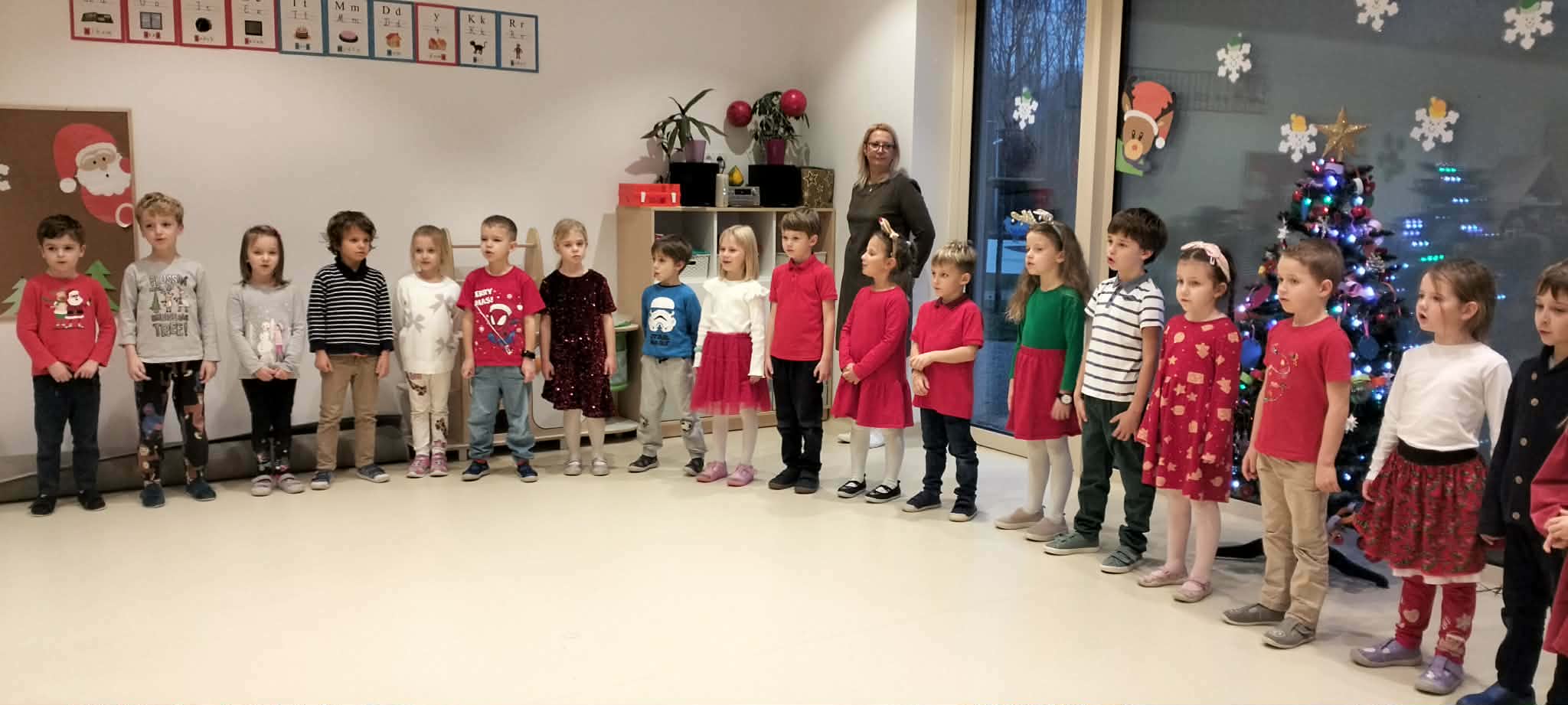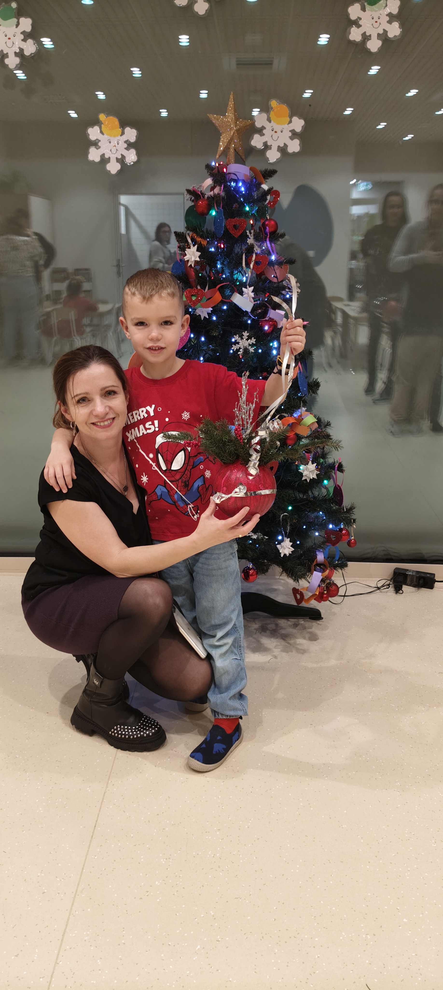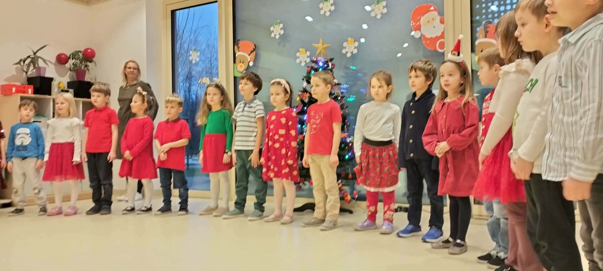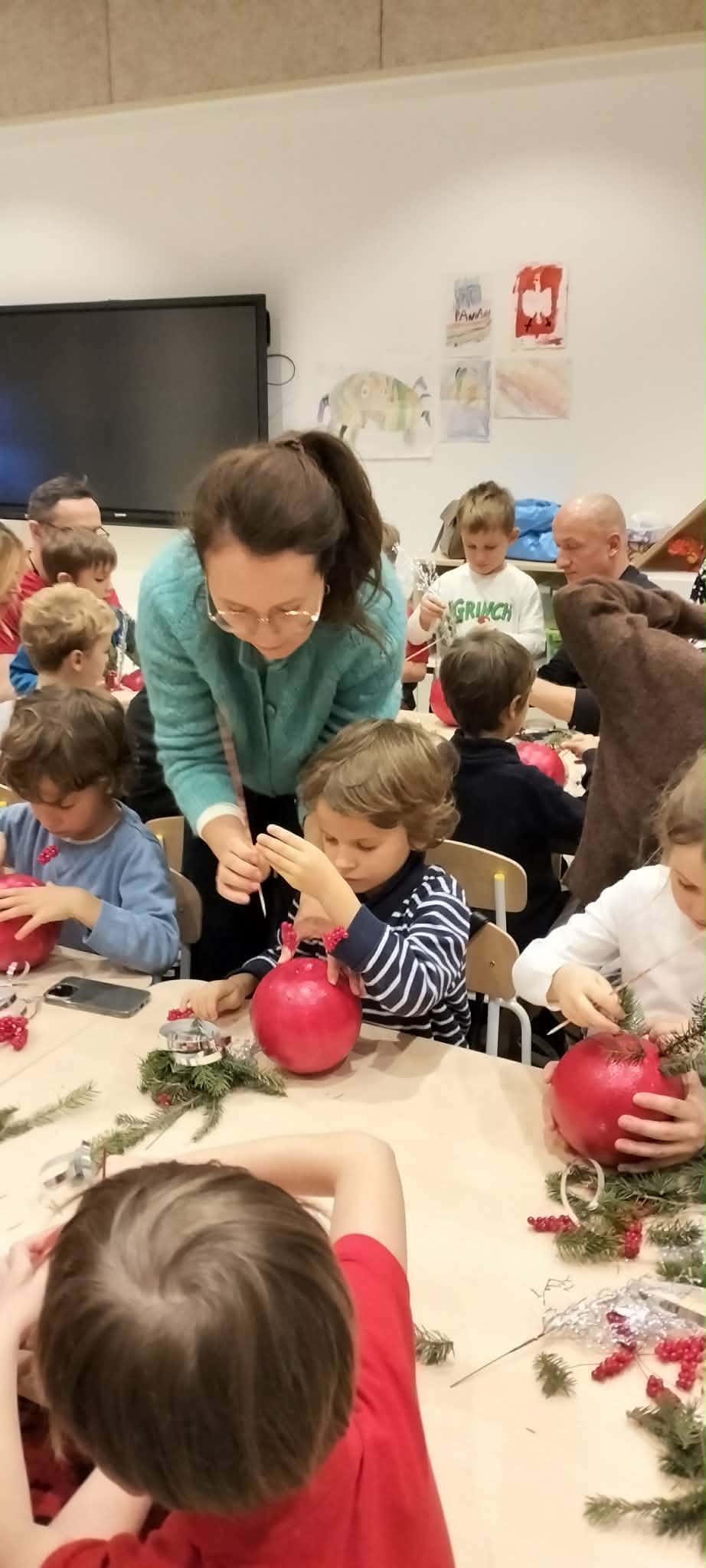 W grudniu spotkaliśmy się wspólnie z rodzicami, aby przygotować stroiki świąteczne. W tym roku przyozdabialiśmy bombkę, którą wcześniej pomalowaliśmy na czerwono. Piękne dodatki, srebrne wstążeczki oraz zielone gałązki wprowadziły do naszej sali nastrój świąt.