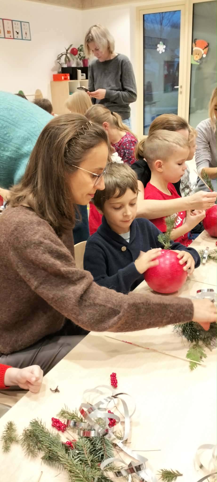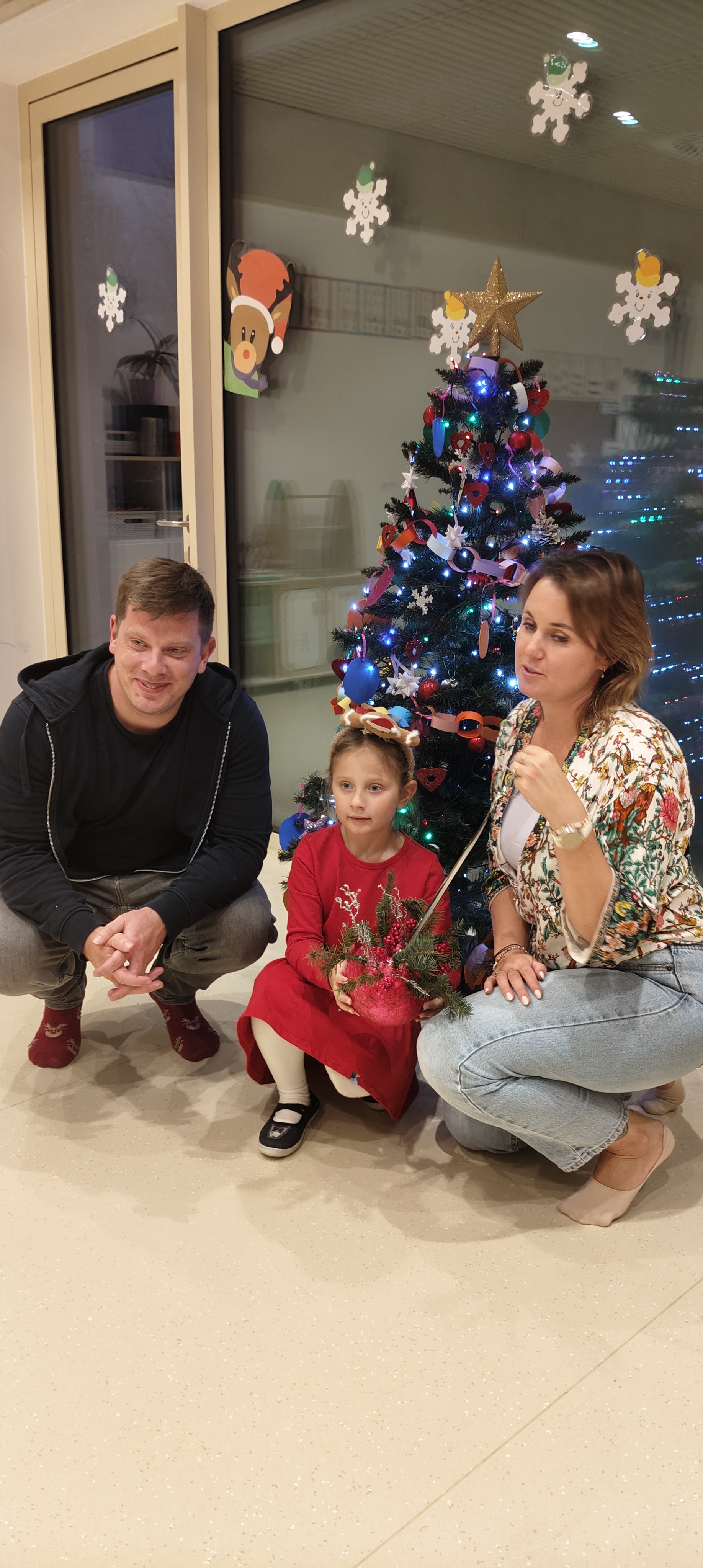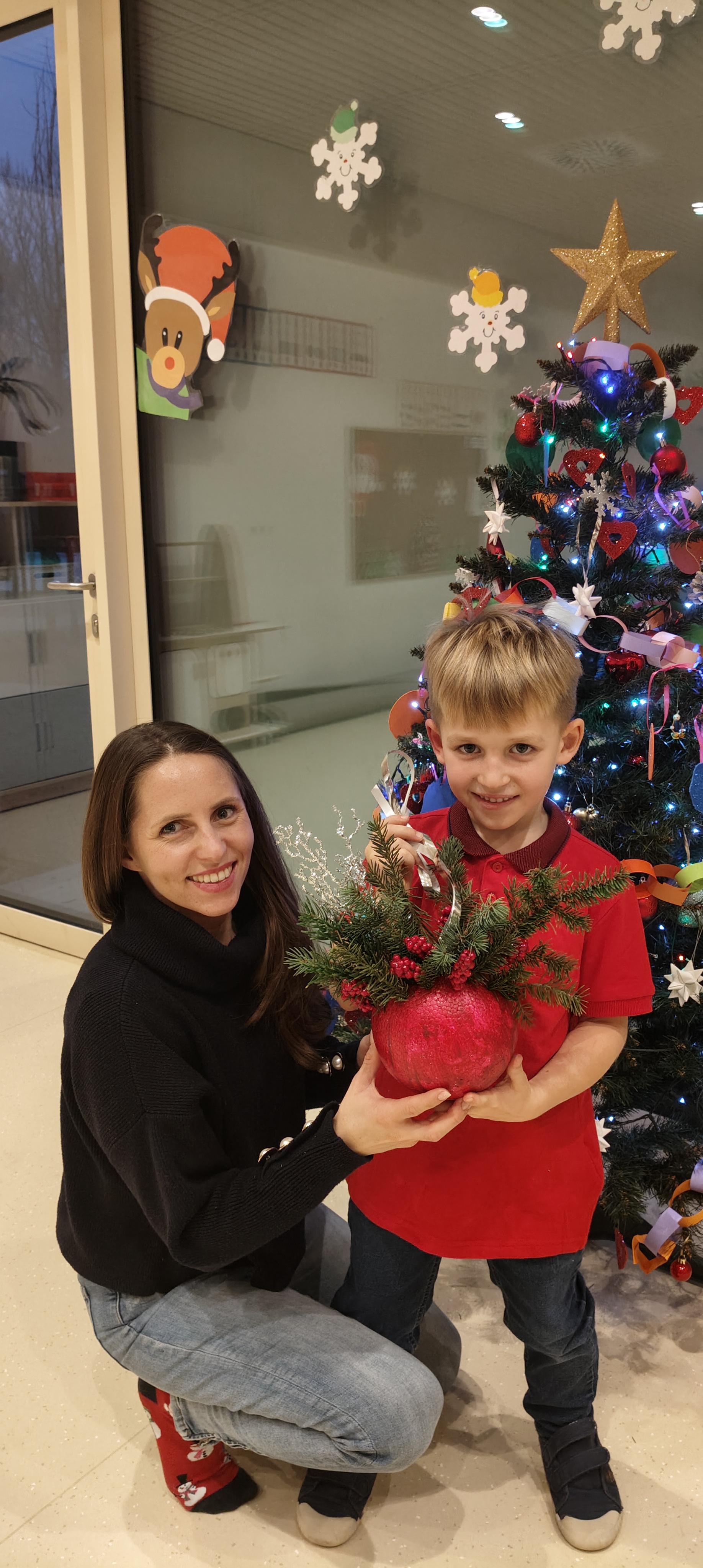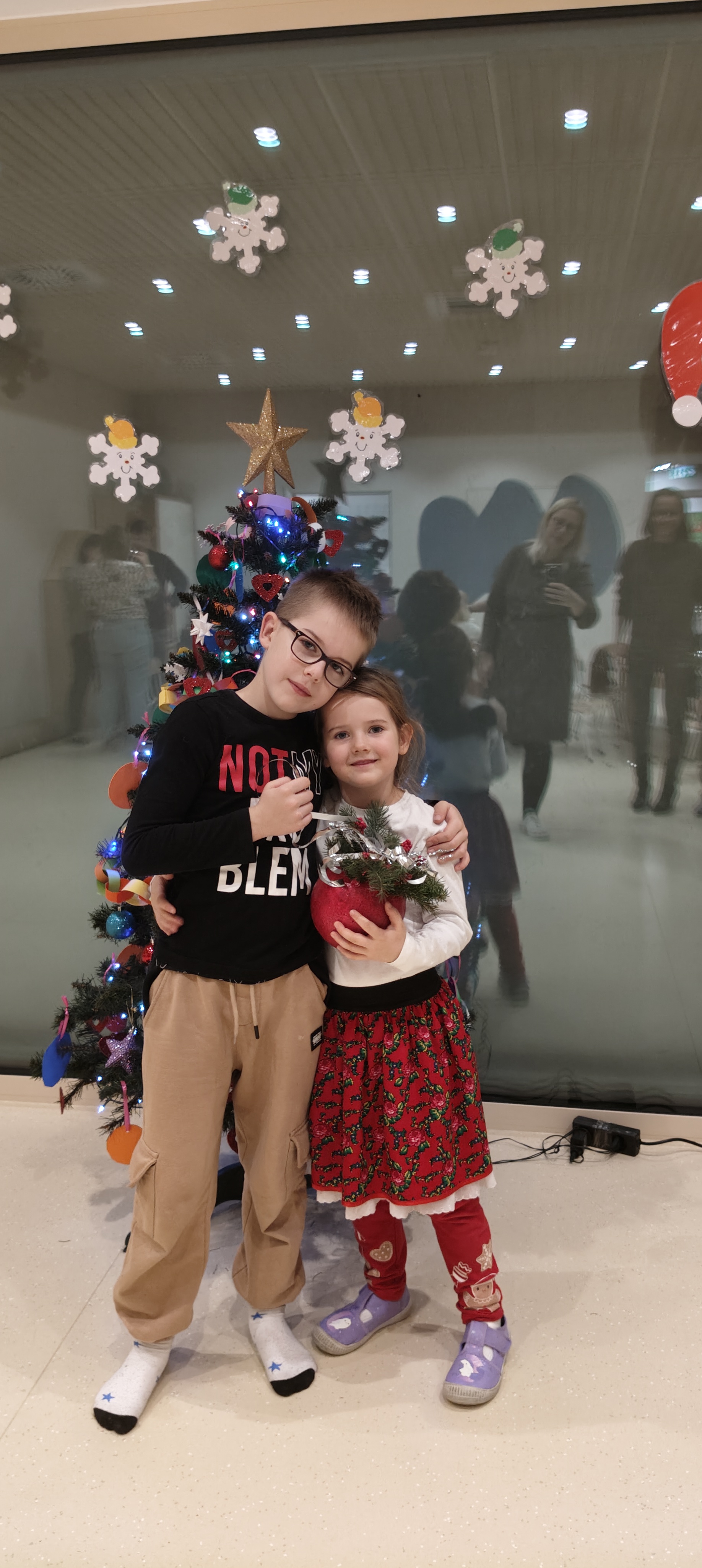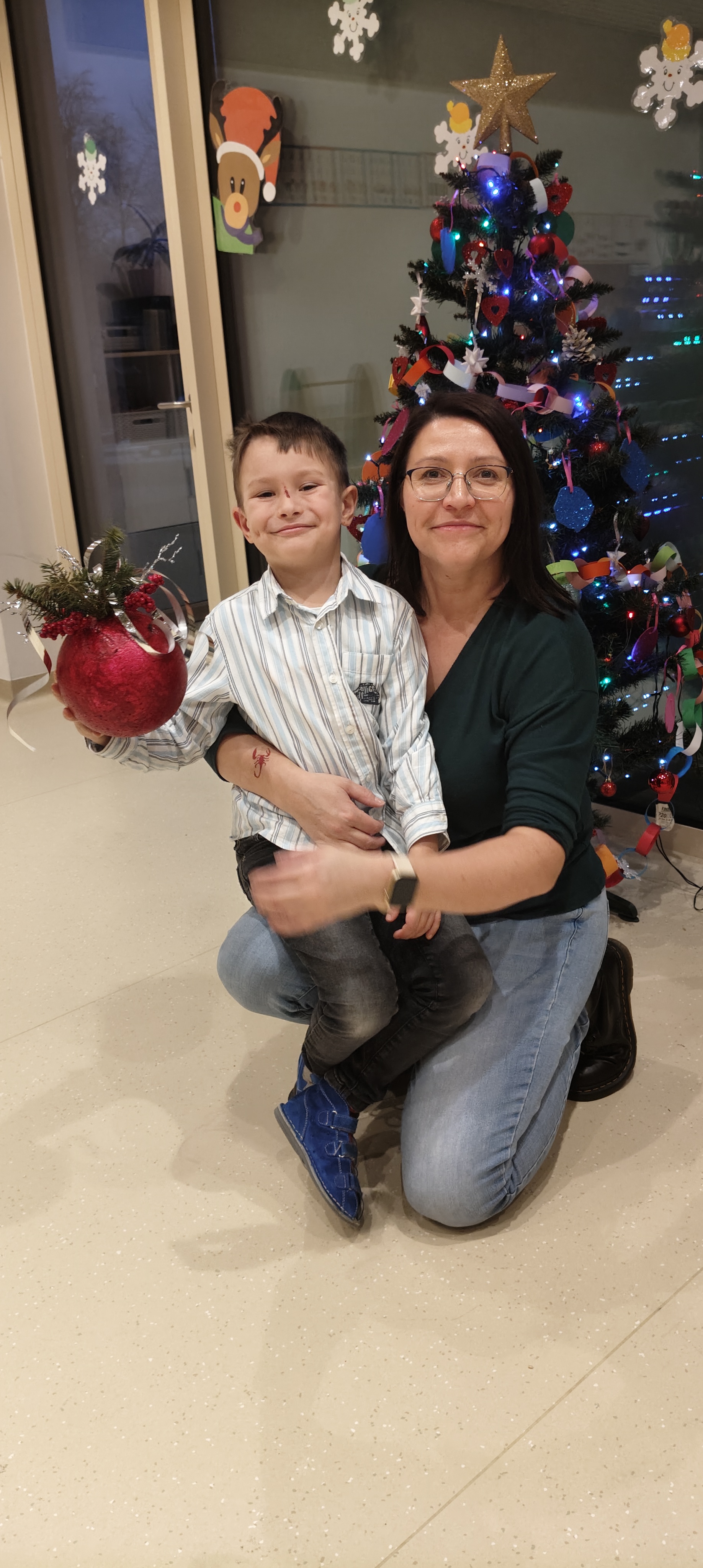 W grudniu spotkaliśmy się wspólnie z rodzicami, aby przygotować stroiki świąteczne. W tym roku przyozdabialiśmy bombkę, którą wcześniej pomalowaliśmy na czerwono. Piękne dodatki, srebrne wstążeczki oraz zielone gałązki wprowadziły do naszej sali nastrój świąt.