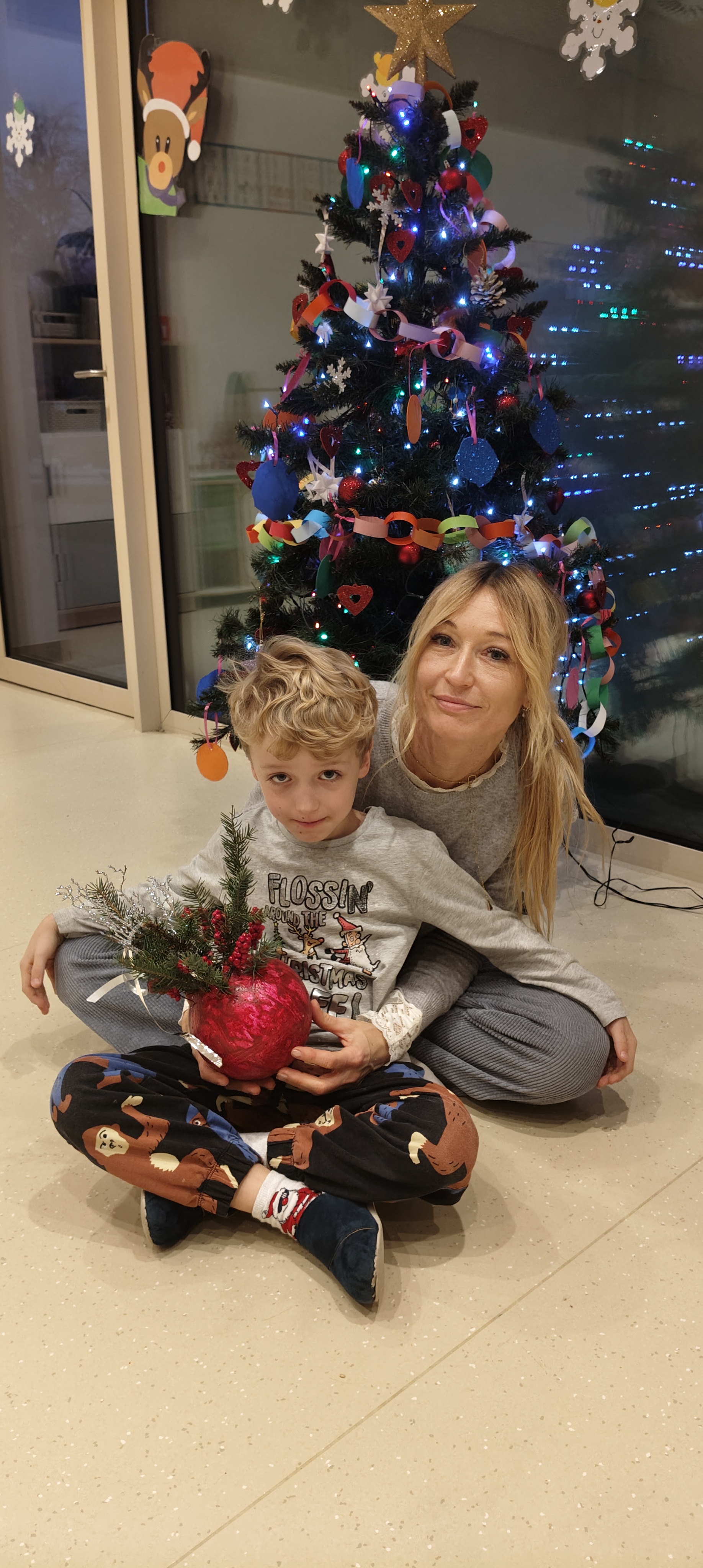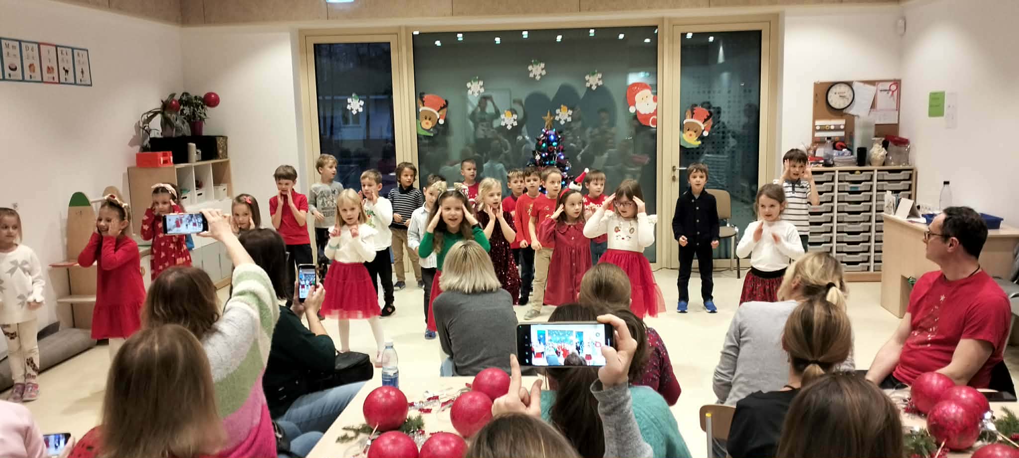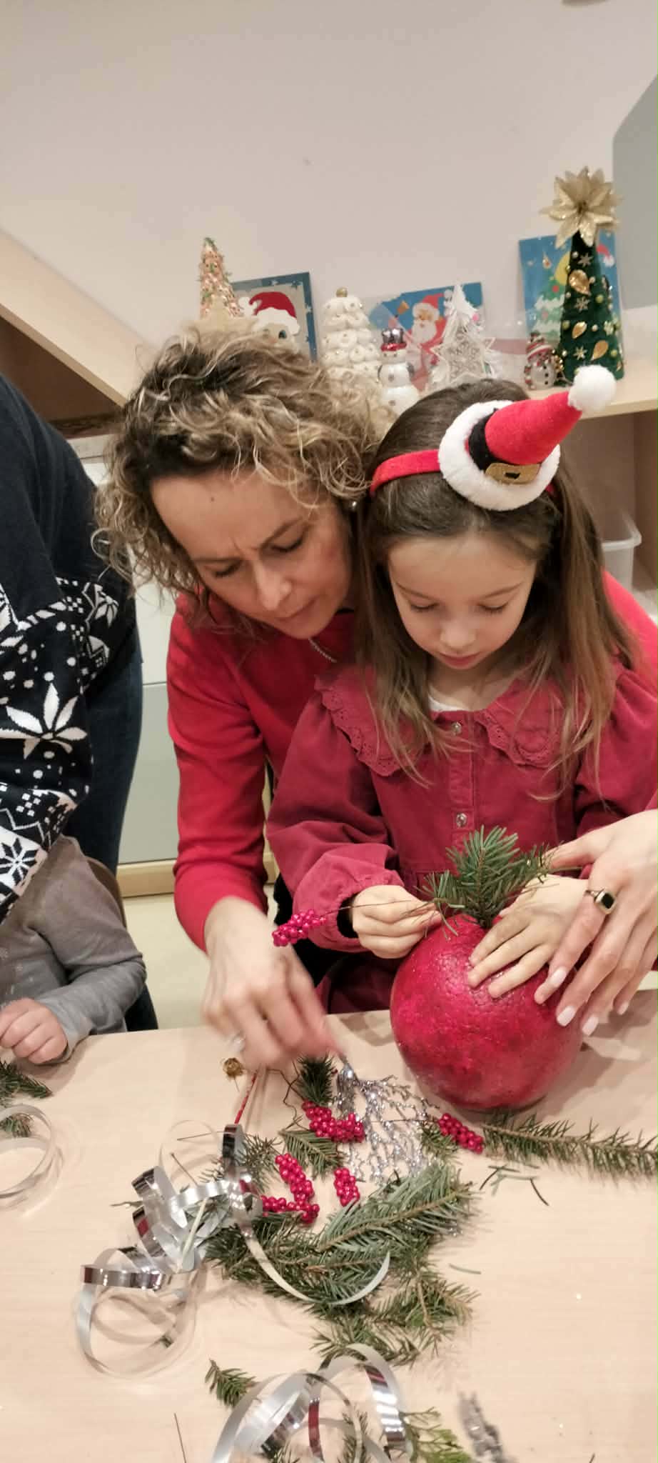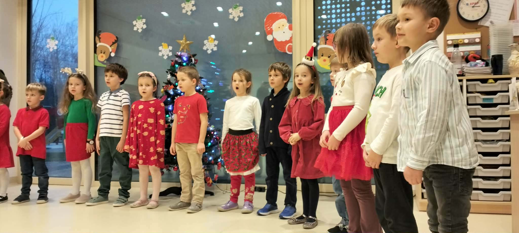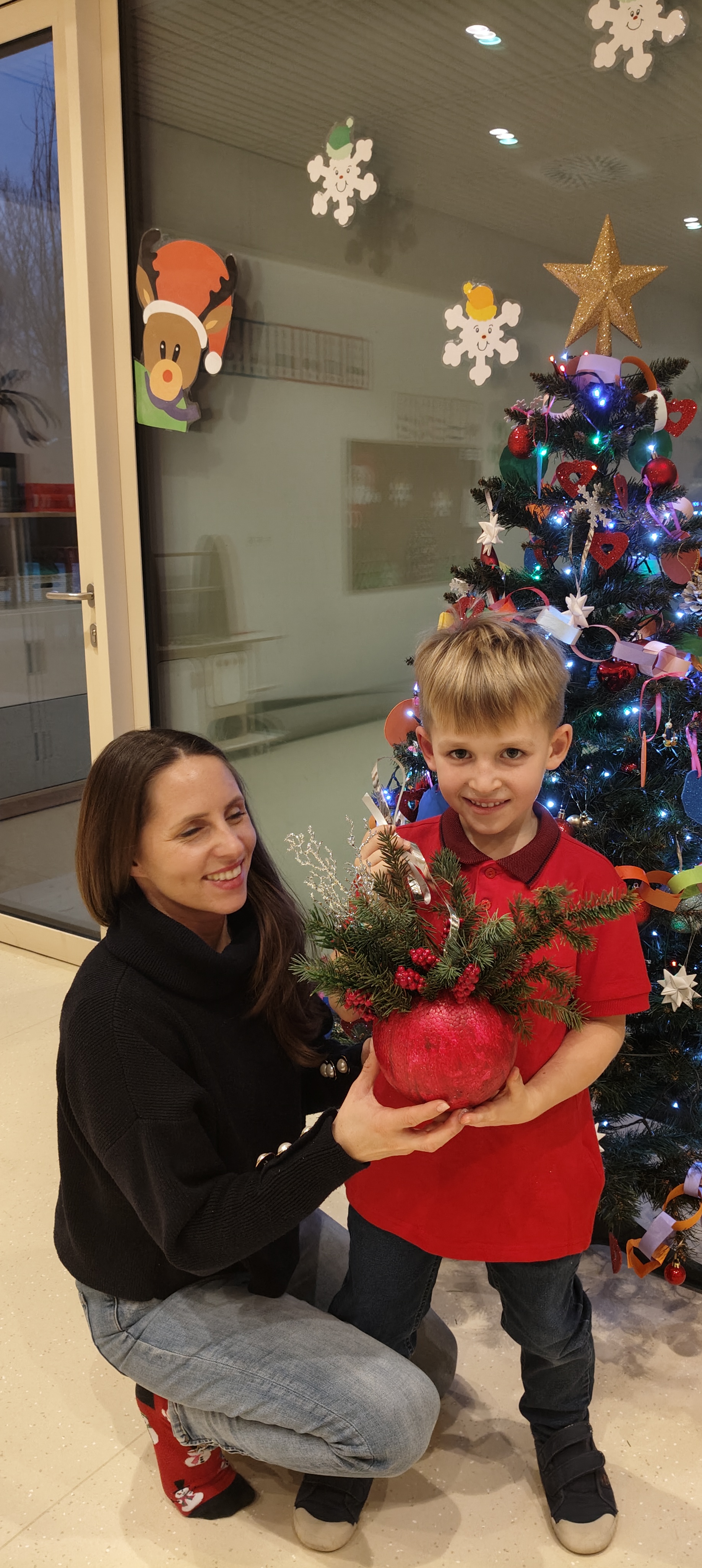 W grudniu spotkaliśmy się wspólnie z rodzicami, aby przygotować stroiki świąteczne. W tym roku przyozdabialiśmy bombkę, którą wcześniej pomalowaliśmy na czerwono. Piękne dodatki, srebrne wstążeczki oraz zielone gałązki wprowadziły do naszej sali nastrój świąt.