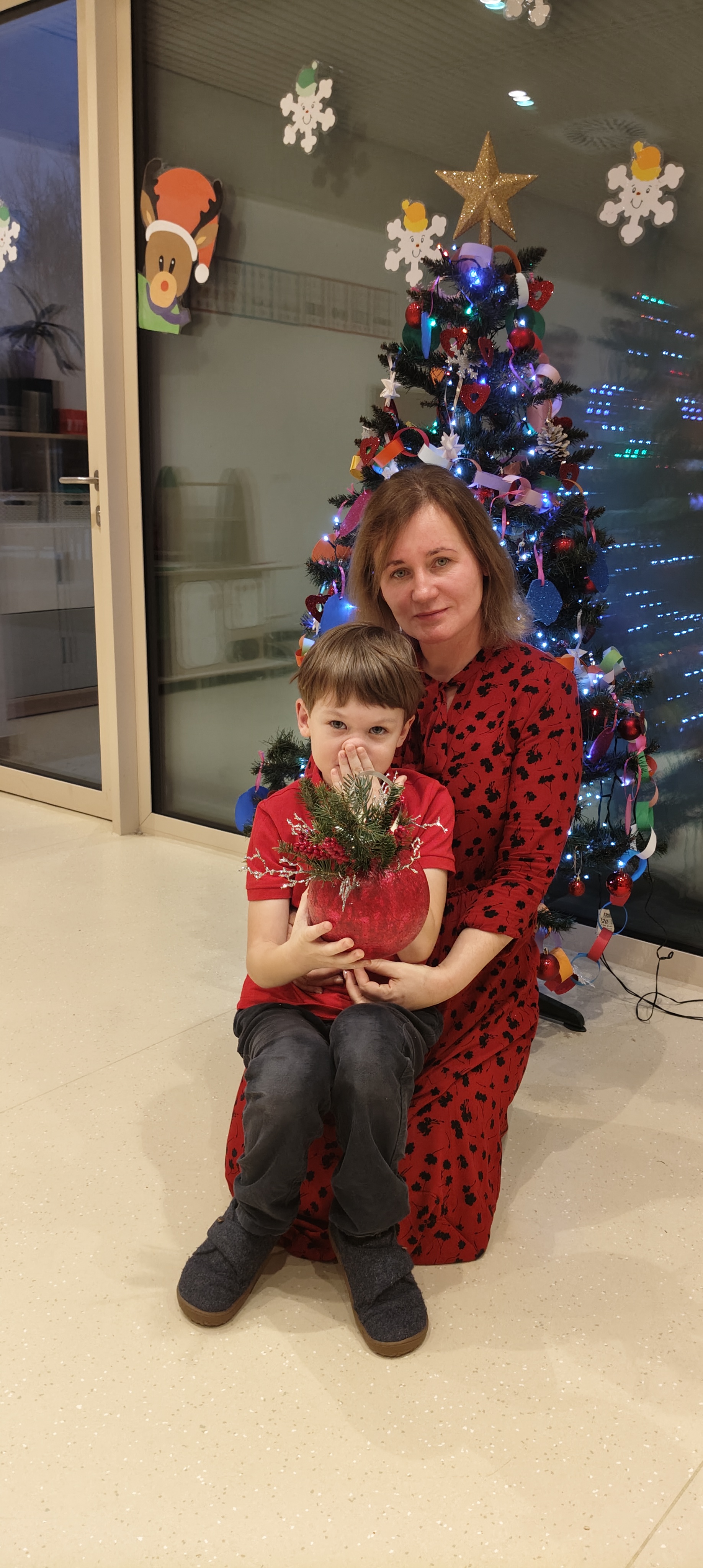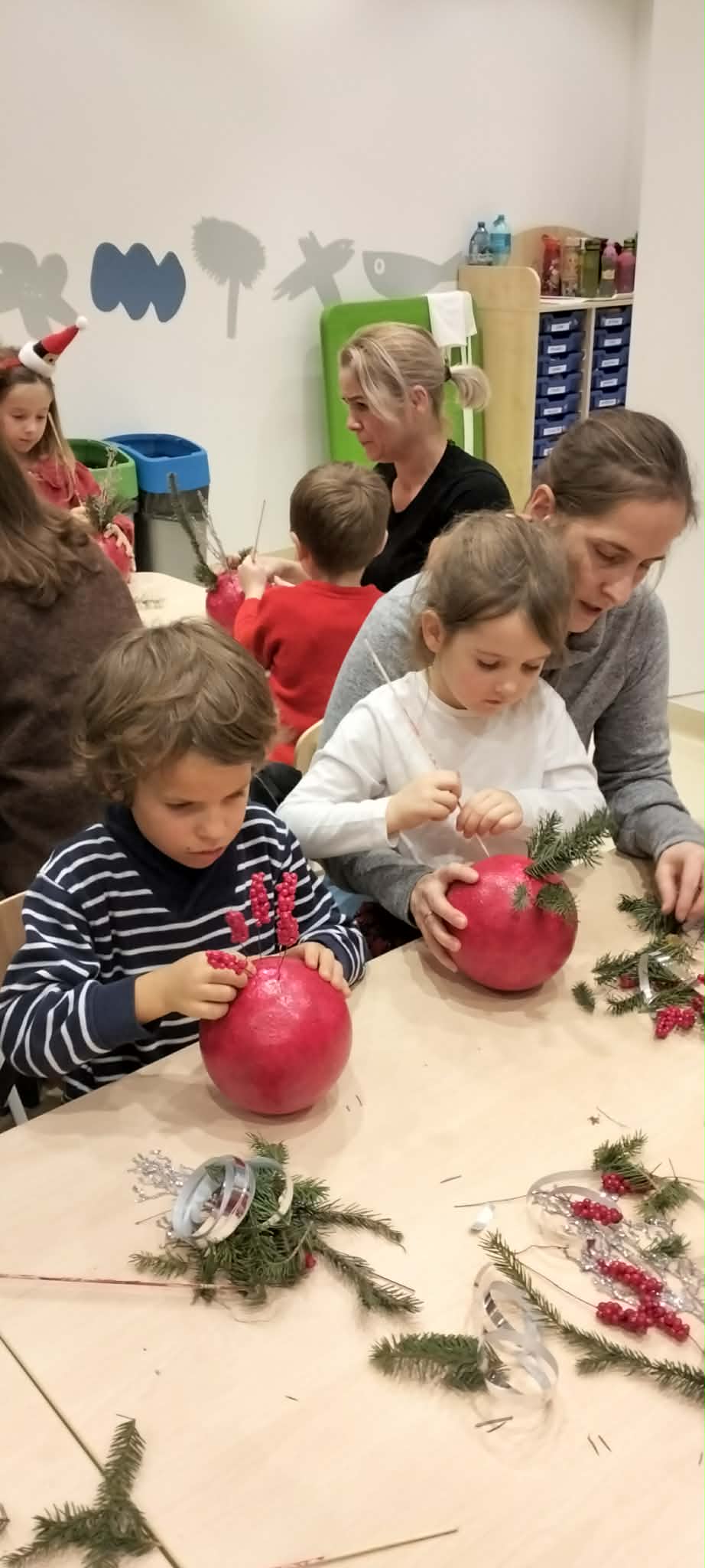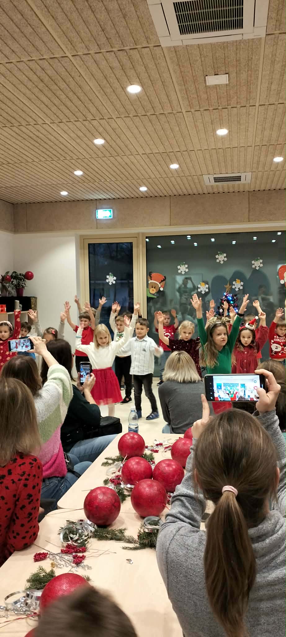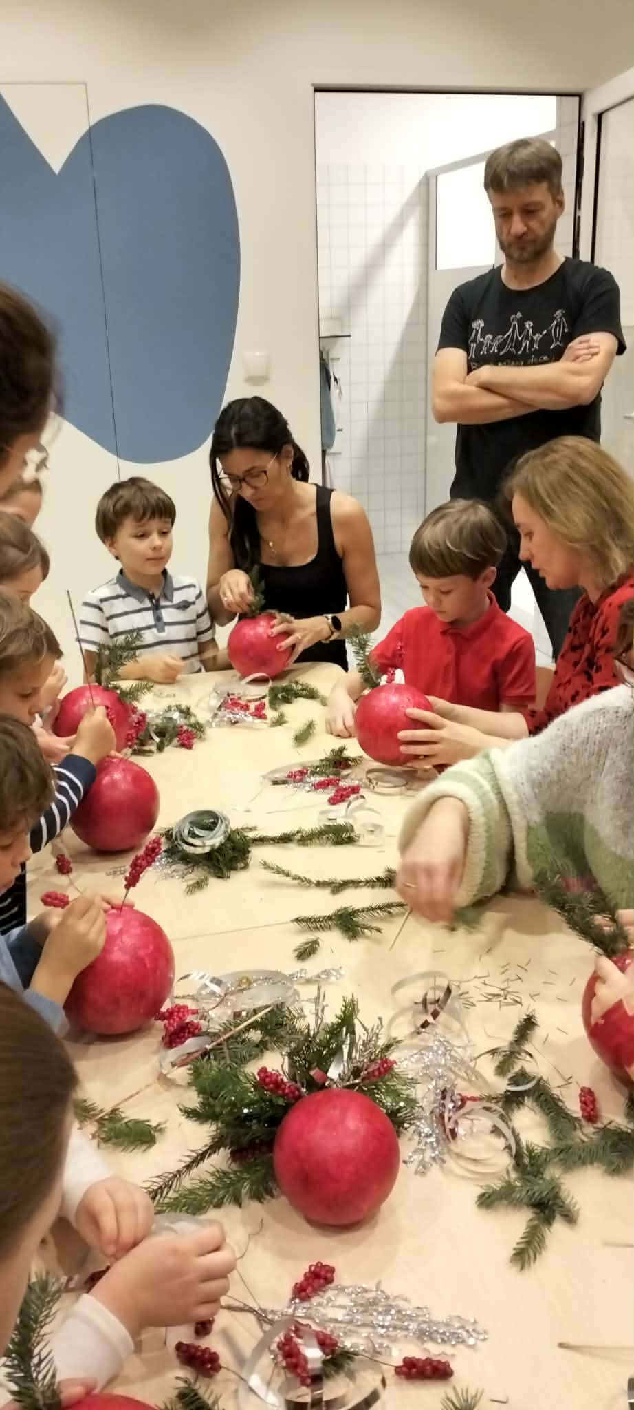 W grudniu spotkaliśmy się wspólnie z rodzicami, aby przygotować stroiki świąteczne. W tym roku przyozdabialiśmy bombkę, którą wcześniej pomalowaliśmy na czerwono. Piękne dodatki, srebrne wstążeczki oraz zielone gałązki wprowadziły do naszej sali nastrój świąt.