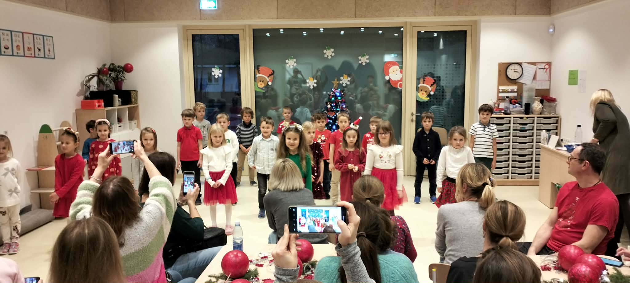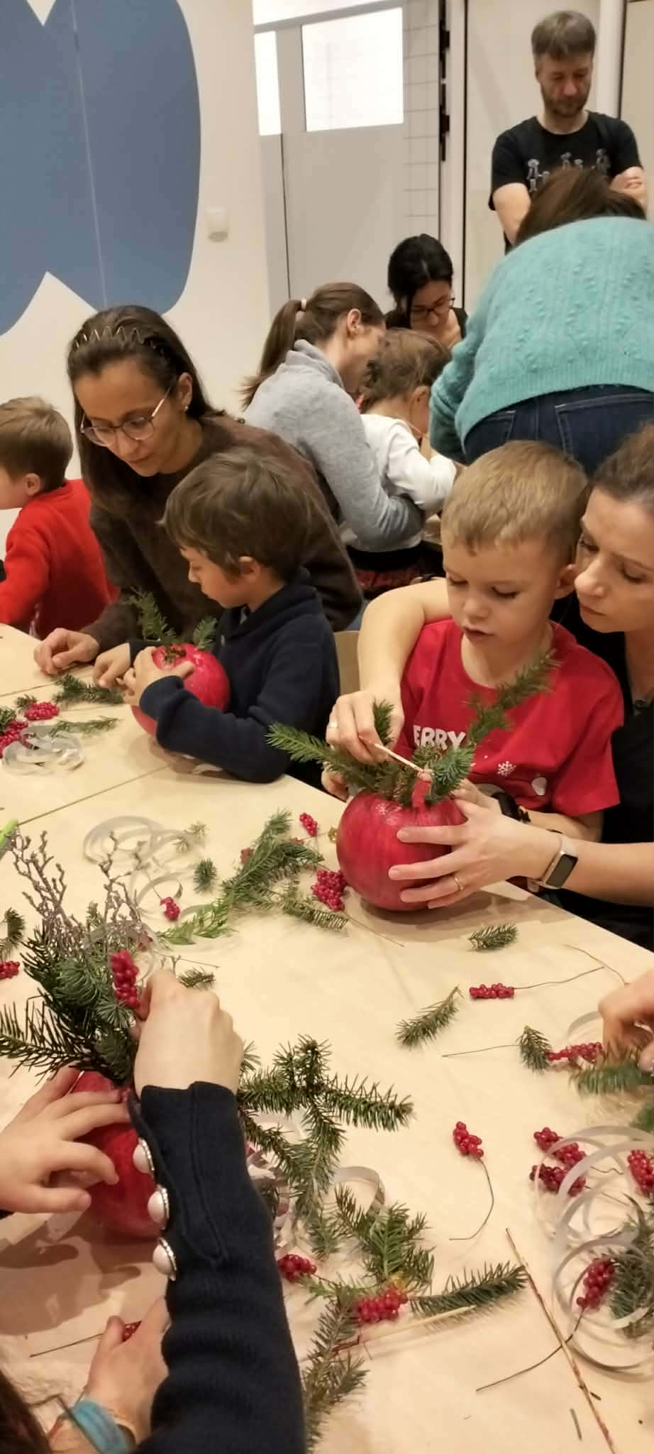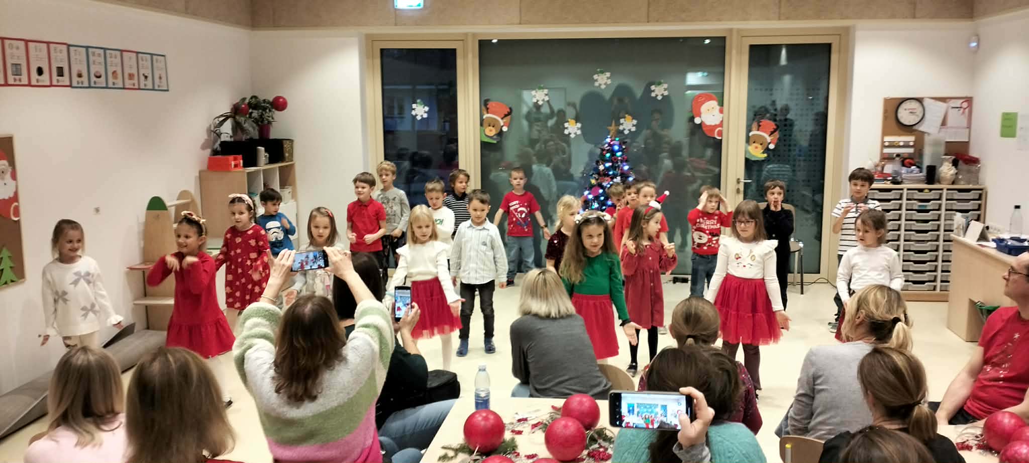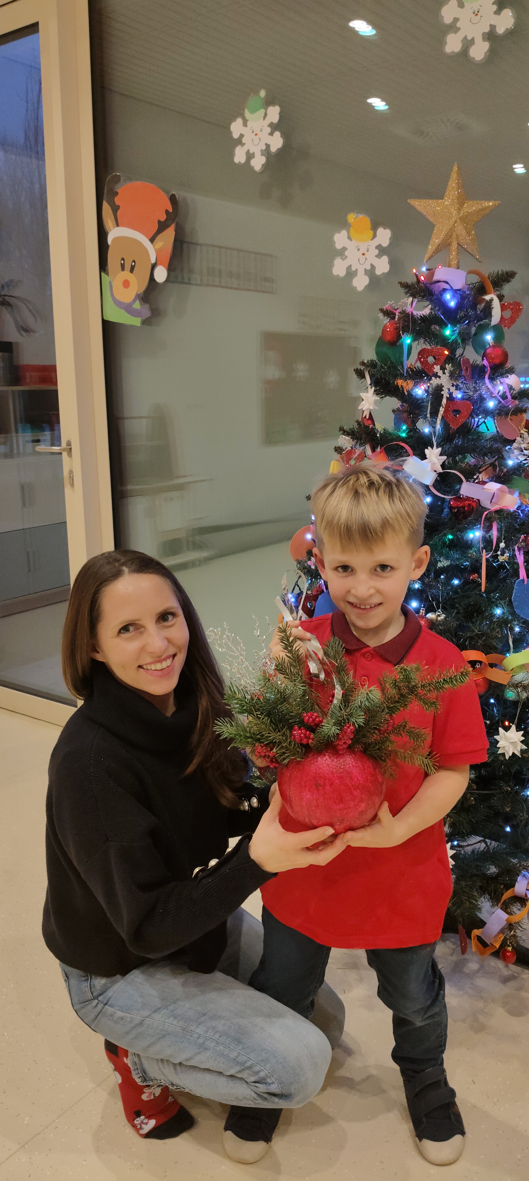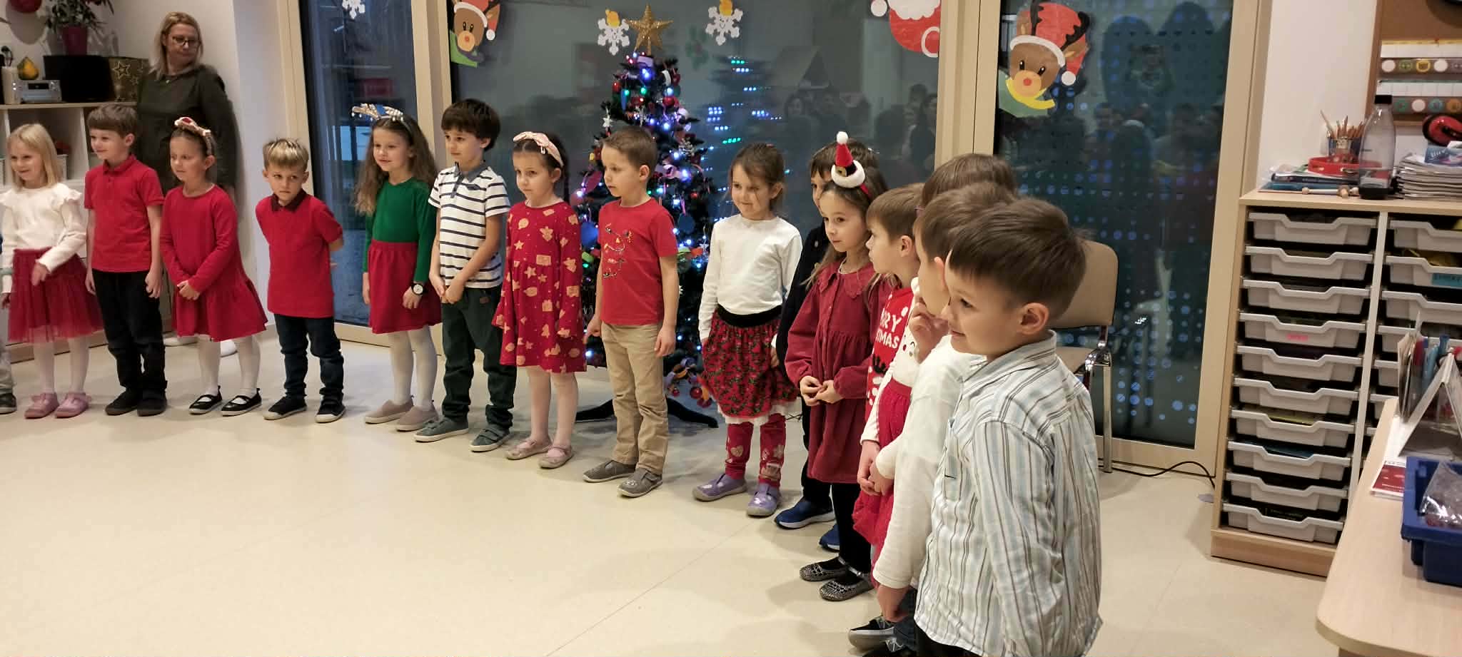 W grudniu spotkaliśmy się wspólnie z rodzicami, aby przygotować stroiki świąteczne. W tym roku przyozdabialiśmy bombkę, którą wcześniej pomalowaliśmy na czerwono. Piękne dodatki, srebrne wstążeczki oraz zielone gałązki wprowadziły do naszej sali nastrój świąt.