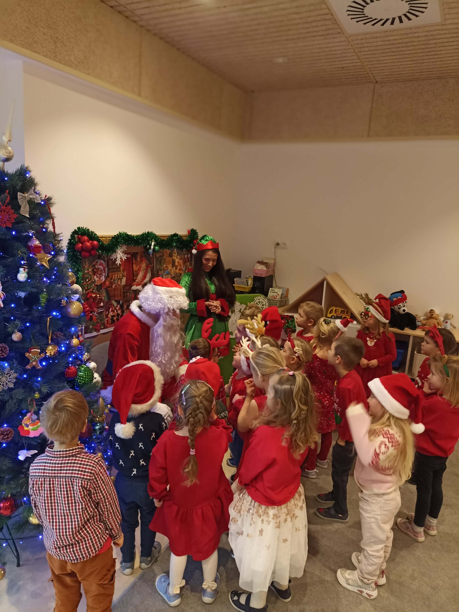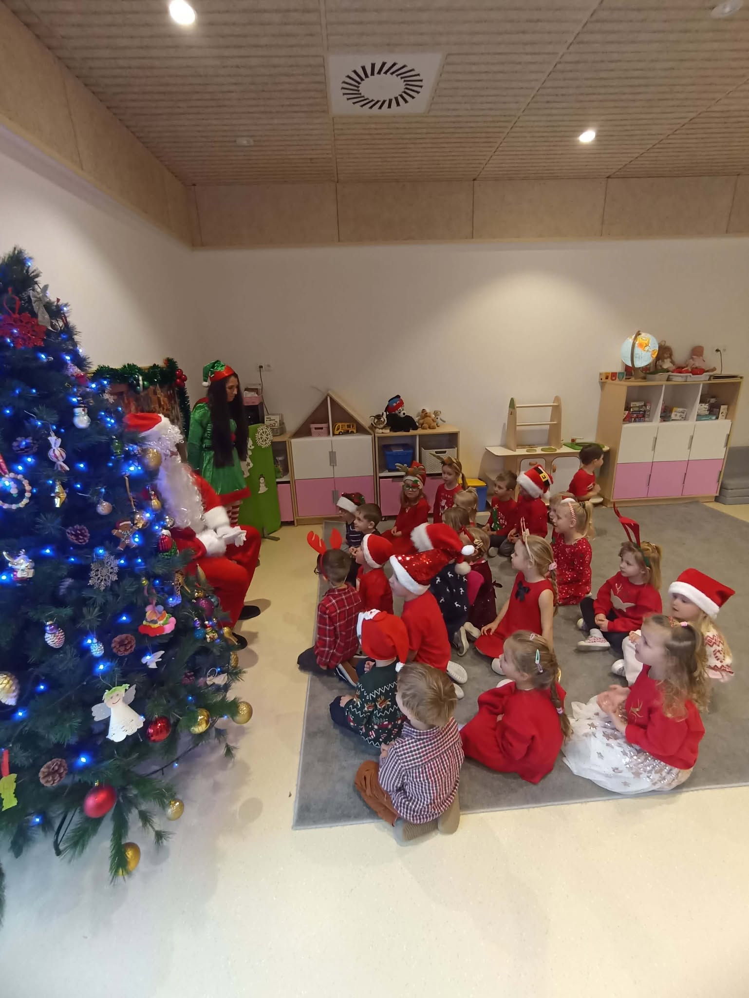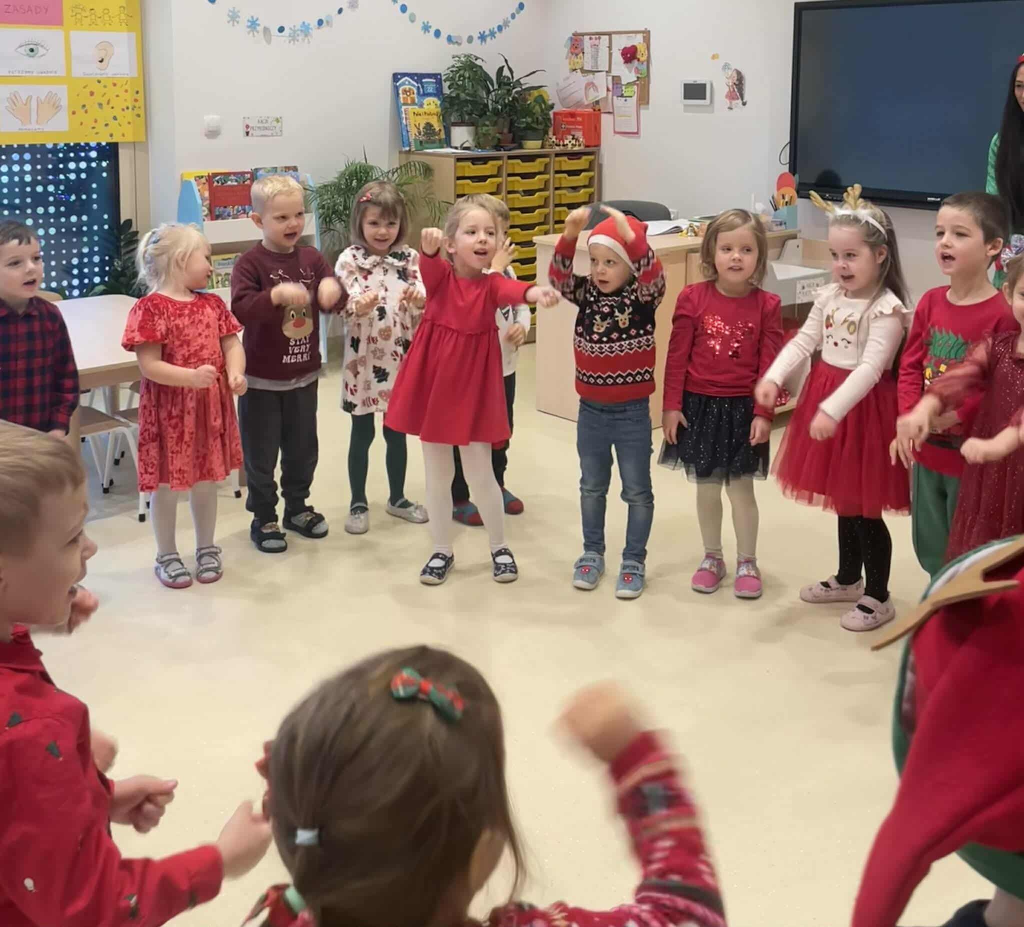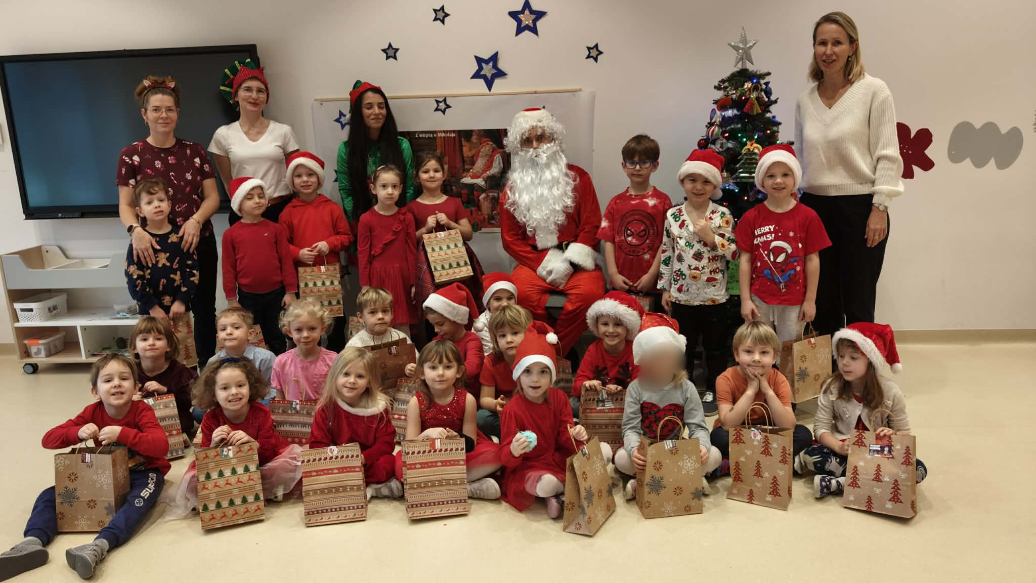 W naszym przedszkolu odbyło się jedno z najbardziej wyczekiwanych wydarzeń roku – Wizyta Świętego Mikołaja! Już od rana w salach panowała wyjątkowa atmosfera: dzieci z niecierpliwością wypatrywały gościa, nasłuchując dzwoneczków i rozmów elfów. Kiedy Mikołaj pojawił się w drzwiach, na twarzach przedszkolaków zagościły szerokie uśmiechy. Dzieci przywitały go piosenkami oraz krótkimi występami przygotowanymi specjalnie na tę okazję. Mikołaj z uwagą wysłuchał wszystkich utworów, a następnie wręczył wszystkim upominki. Spotkanie przebiegło w radosnej, ciepłej atmosferze, pełnej świątecznej magii. Dzieci obiecały Mikołajowi, że będą grzeczne przez cały następny rok, a on zapowiedział, że z przyjemnością odwiedzi nas ponownie. Dziękujemy wszystkim za zaangażowanie w przygotowanie tego wyjątkowego dnia.
