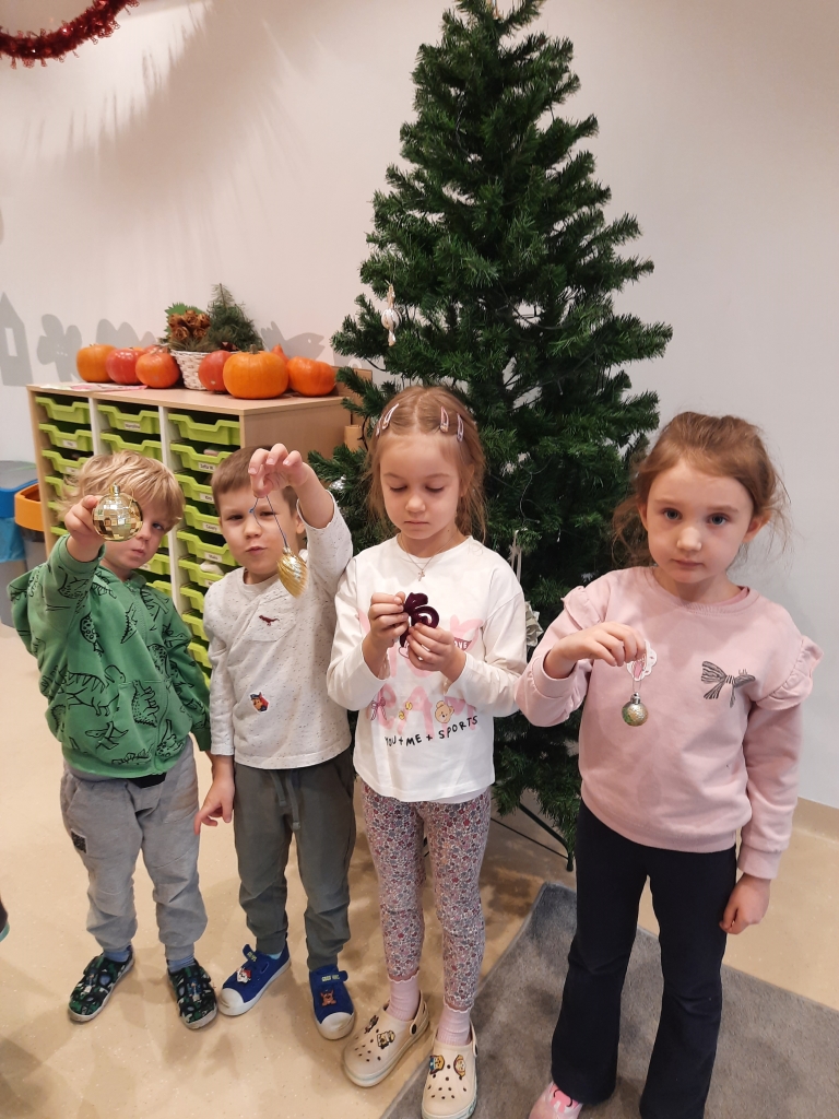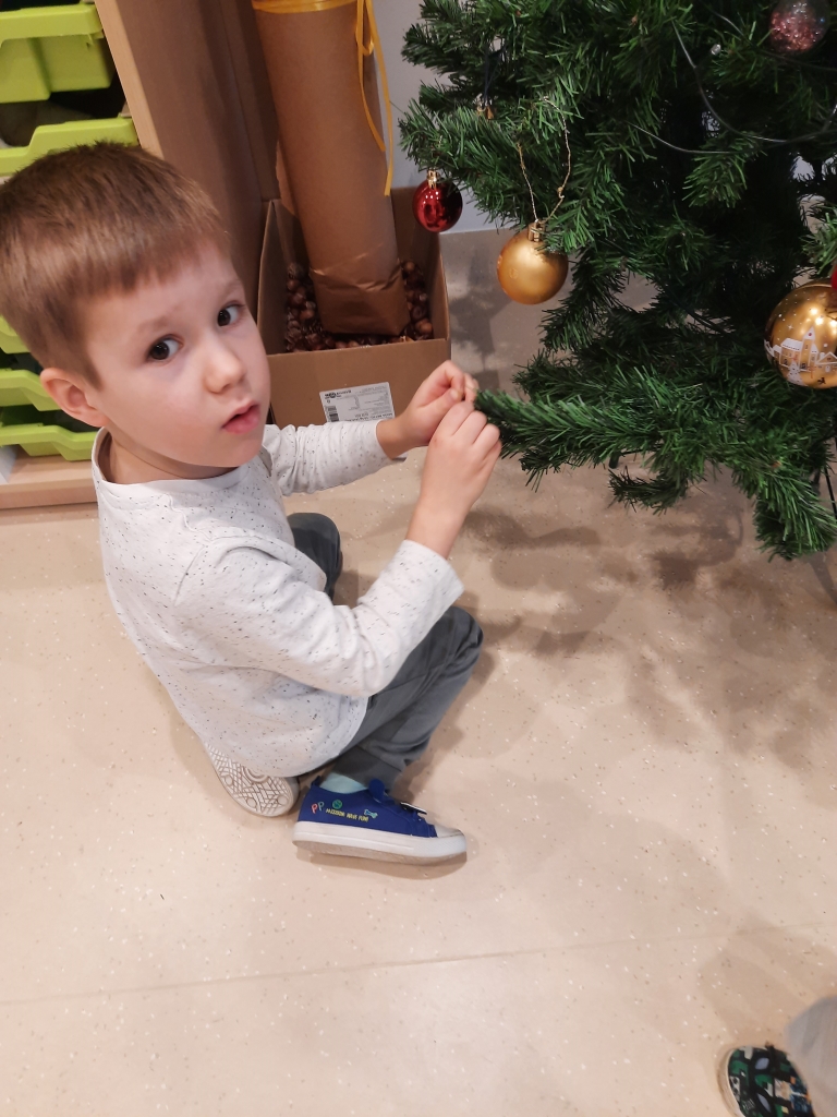 bombki, gwiazdki, szyszki, kokardki. W sali od razu zrobiło się świątecznie. Teraz już