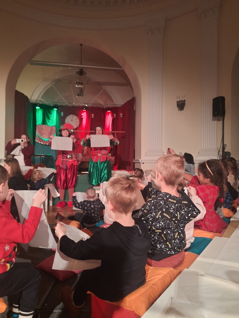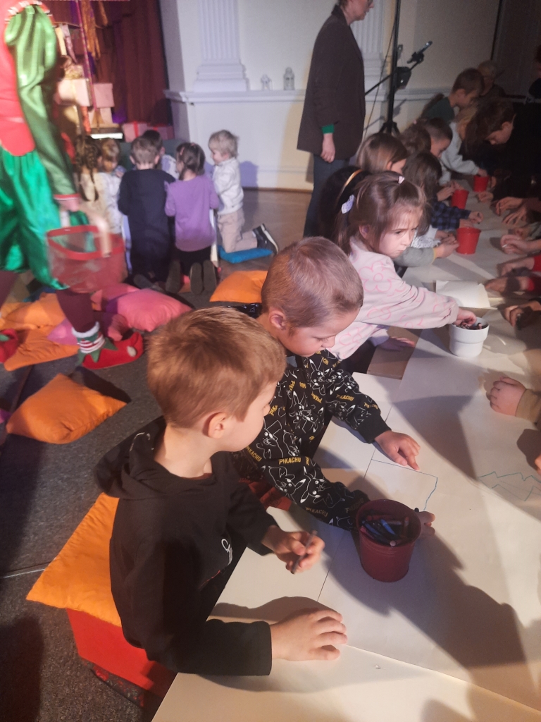 W teatrze dzieci z ogromnym zainteresowaniem oglądały widowisko. Barwna scenografia, muzyka oraz zabawne przygody elfów sprawiły, że mali widzowie byli całkowicie pochłonięci spektaklem. W trakcie przedstawienia nie brakowało emocji, zachwytu i świątecznej atmosfery.