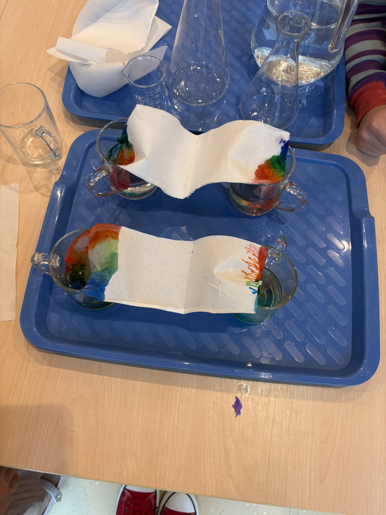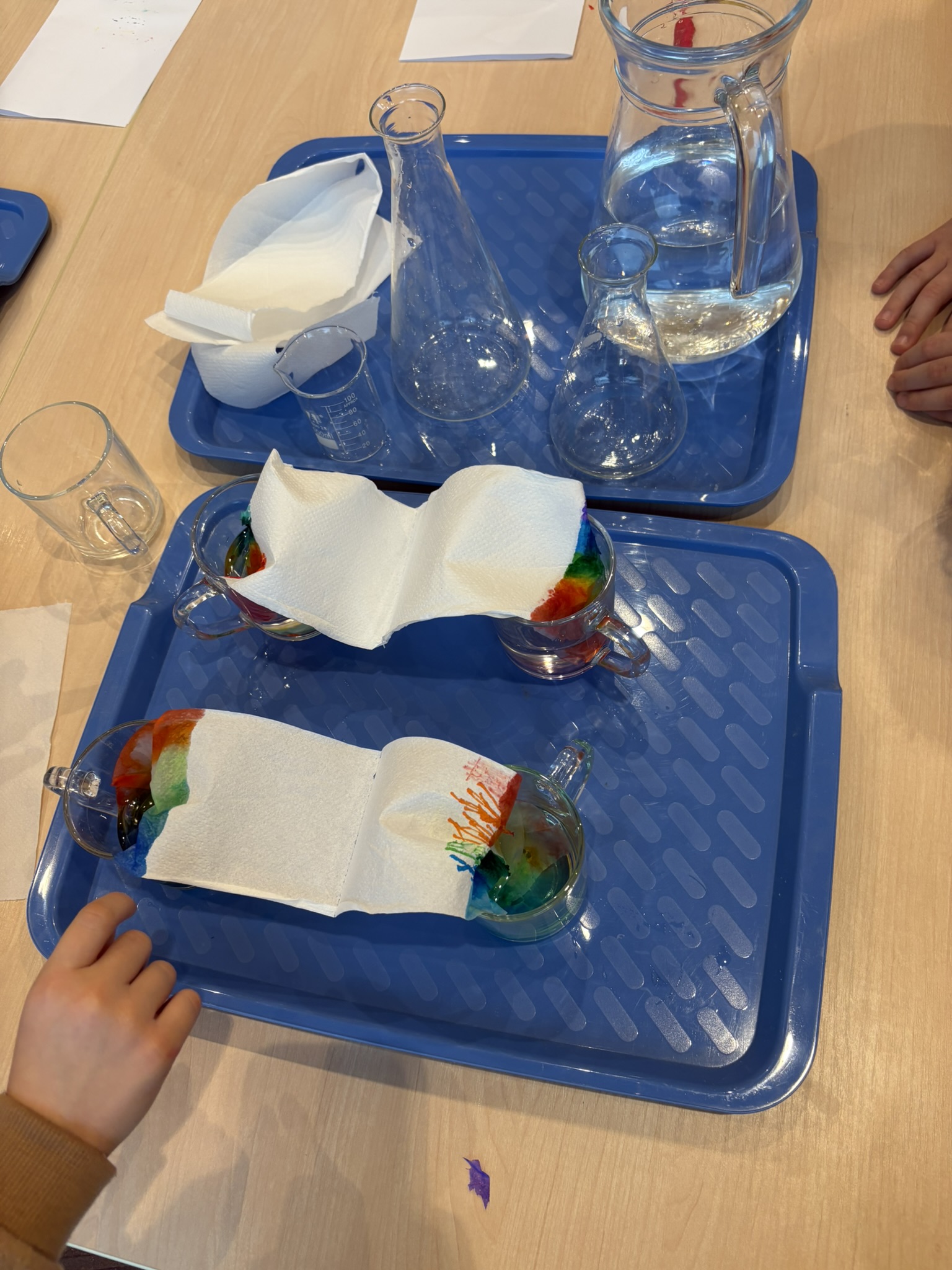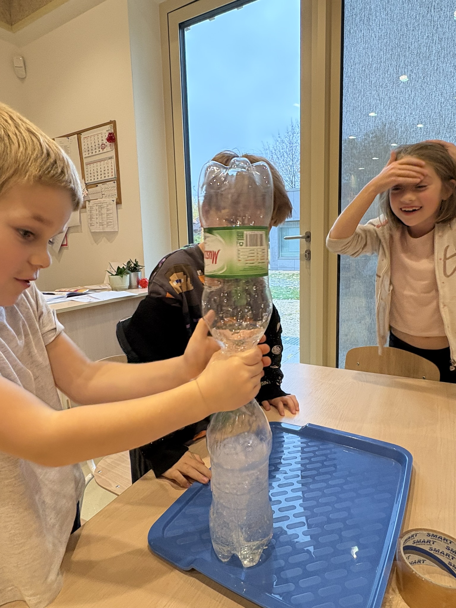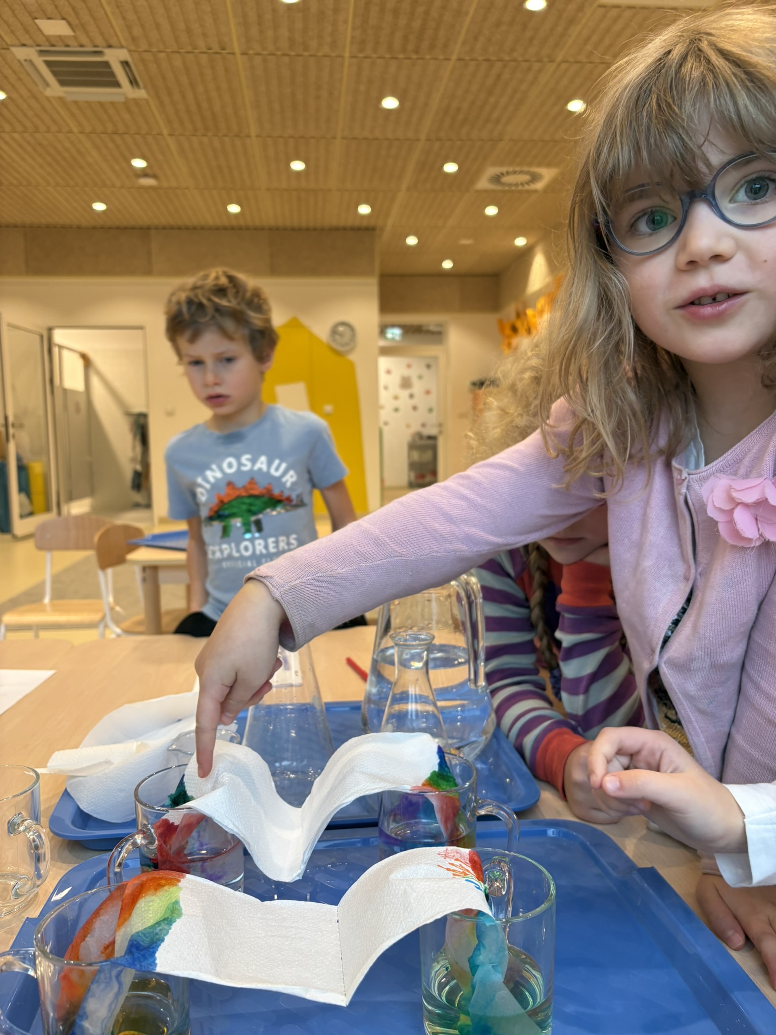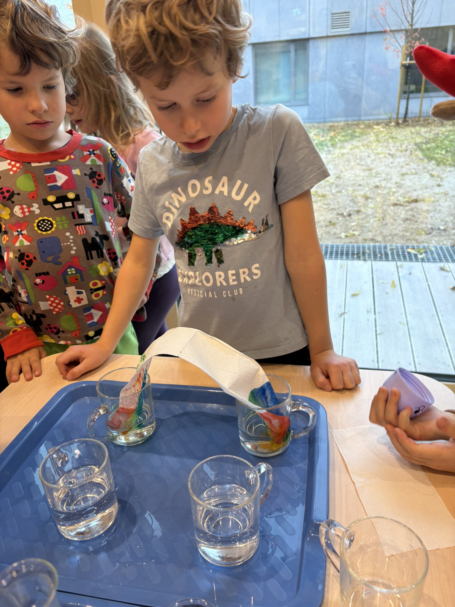 24.10 w naszej grupie odbyły się zajęcia badawcze poświęcone wodzie. Celem warsztatów było rozwijanie ciekawości poznawczej dzieci oraz zachęcanie ich do samodzielnego odkrywania właściwości substancji występujących w przyrodzie. Podczas zajęć dzieci obserwowały różne właściwości wody, tworzyły proste, ale efektowne eksperymenty – między innymi „tornado w butelce” i kolorową tęczę. W trakcie doświadczeń dzieci poznawały także matematyczne pojęcie objętości, porównywały ilości wody w różnych naczyniach, sprawdzały, ile wody mieści się w kubku, a ile w butelce, oraz uczyły się, że mimo zmiany kształtu naczynia – objętość cieczy pozostaje taka sama. Zajęcia stały się również okazją do rozmowy o zjawiskach pogodowych związanych z wodą – takich jak deszcz, śnieg, grad czy mgła. Dzieci dowiedziały się, skąd bierze się deszcz i jak przebiega obieg wody w przyrodzie. Dzięki wspólnej pracy dzieci mogły w praktyczny sposób doświadczyć, jak fascynujący i różnorodny jest świat nauki. Zajęcia dostarczyły wielu pozytywnych emocji, a jednocześnie rozwijały umiejętność obserwacji, wnioskowania, współpracy w grupie oraz myślenia matematycznego i przyrodniczego.