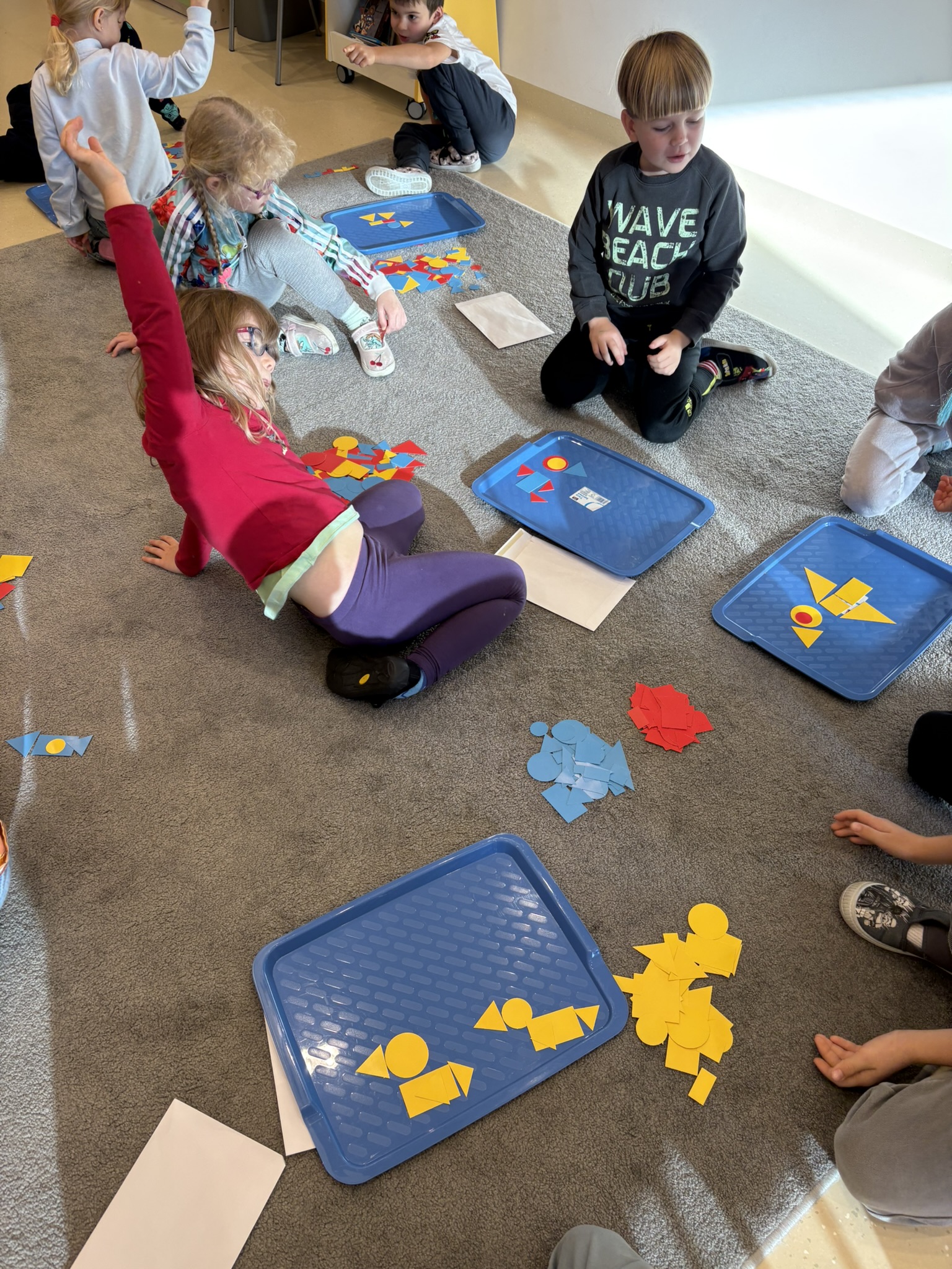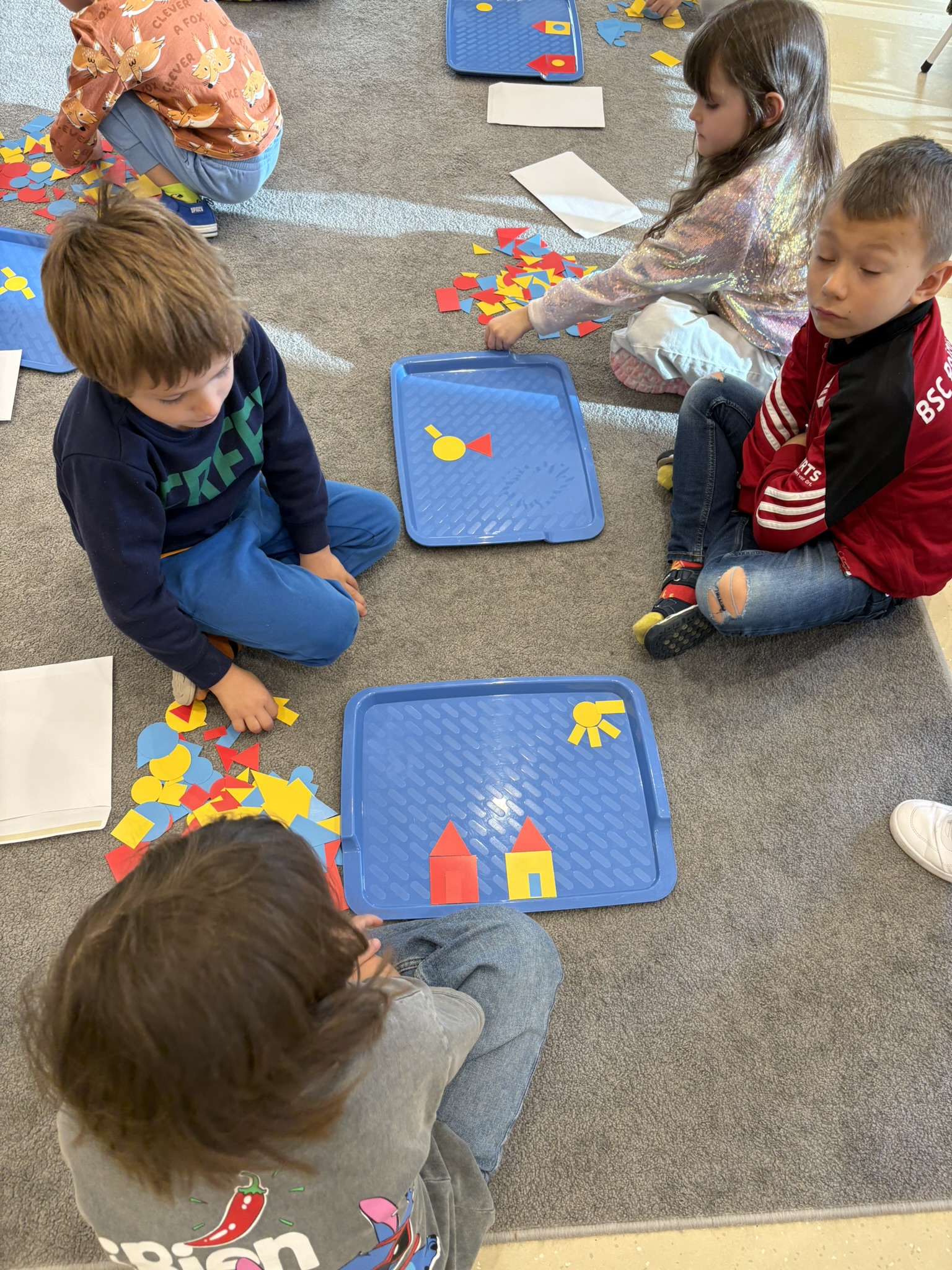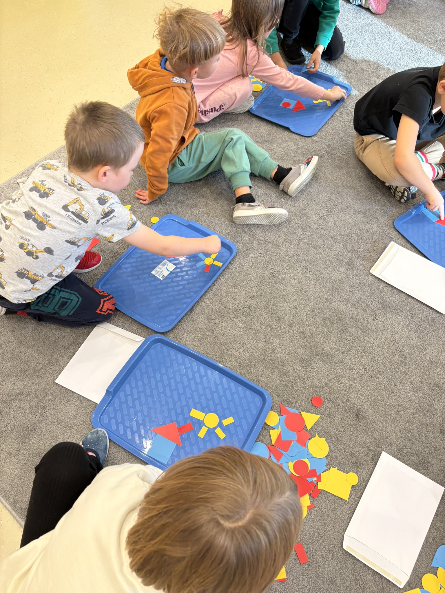 W minionym tygodniu w naszej grupie odbyły się zabawy matematyczne pod hasłem „Figury geometryczne”. Podczas zajęć dzieci wzięły udział w aktywności, której celem było utrwalenie znajomości podstawowych kształtów oraz rozwijanie umiejętności współpracy w grupie.
