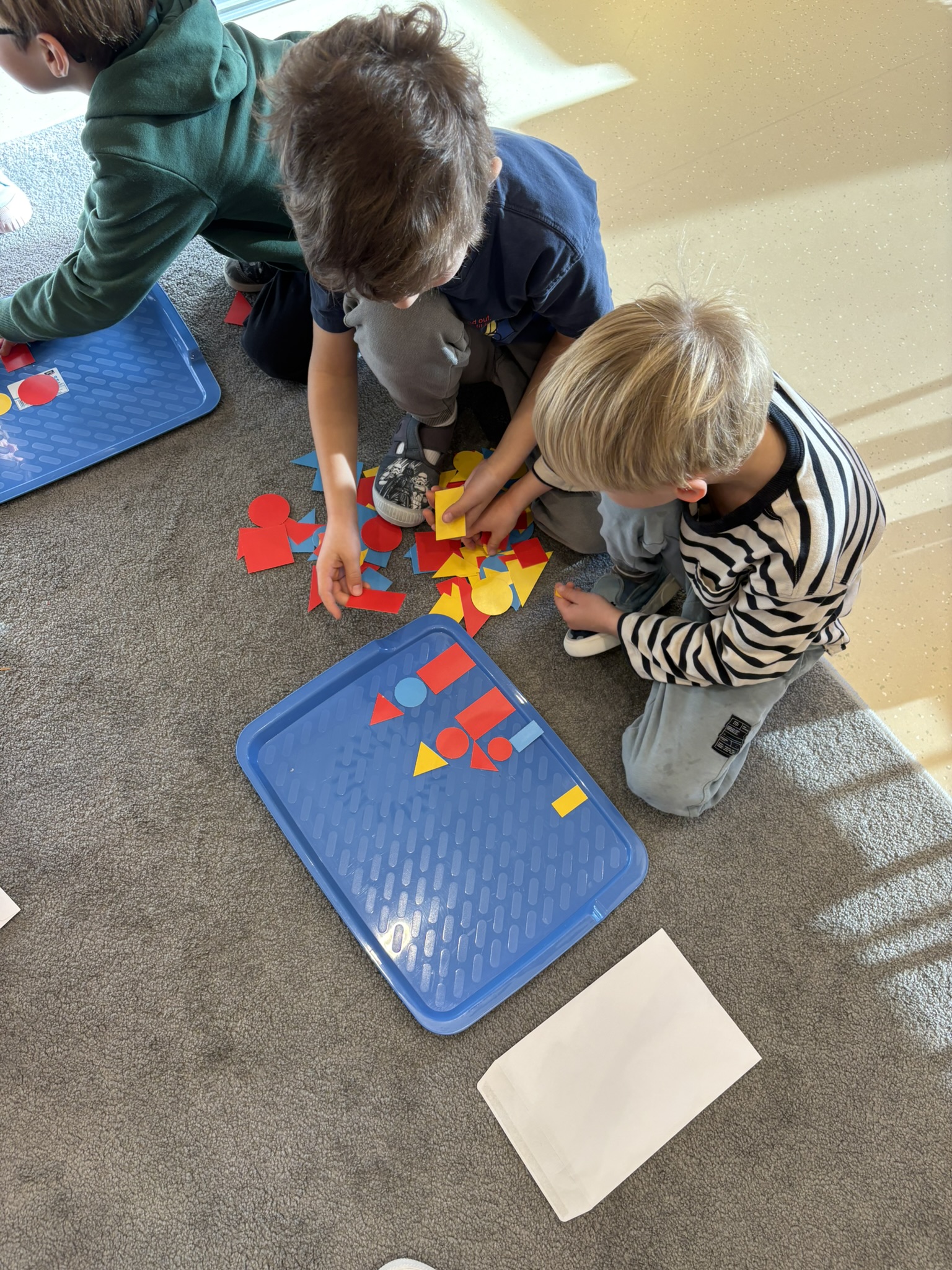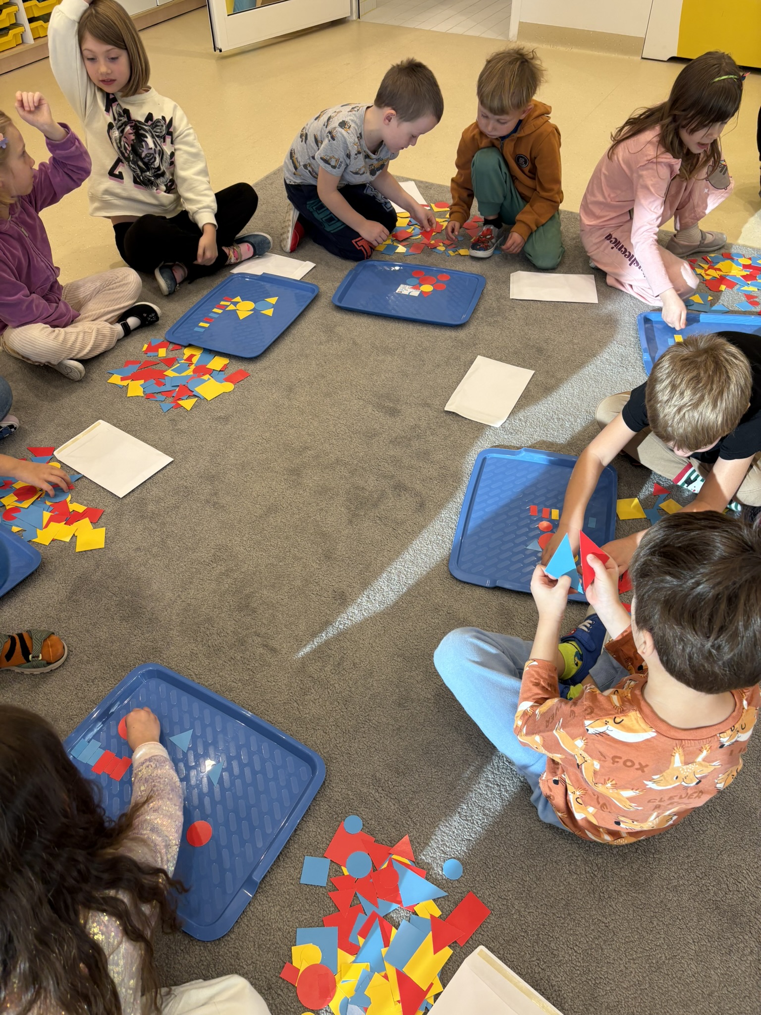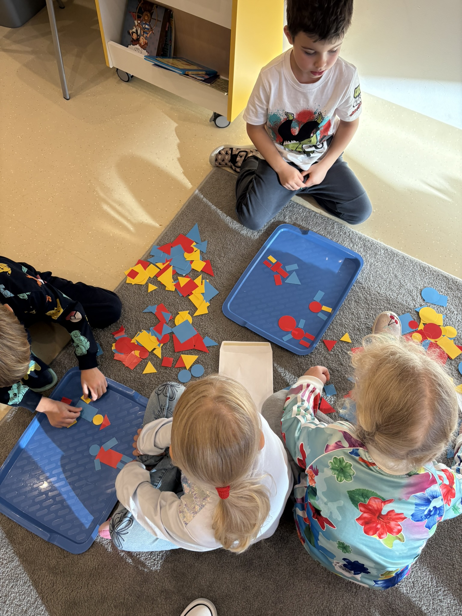 W minionym tygodniu w naszej grupie odbyły się zabawy matematyczne pod hasłem „Figury geometryczne”. Podczas zajęć dzieci wzięły udział w aktywności, której celem było utrwalenie znajomości podstawowych kształtów oraz rozwijanie umiejętności współpracy w grupie.